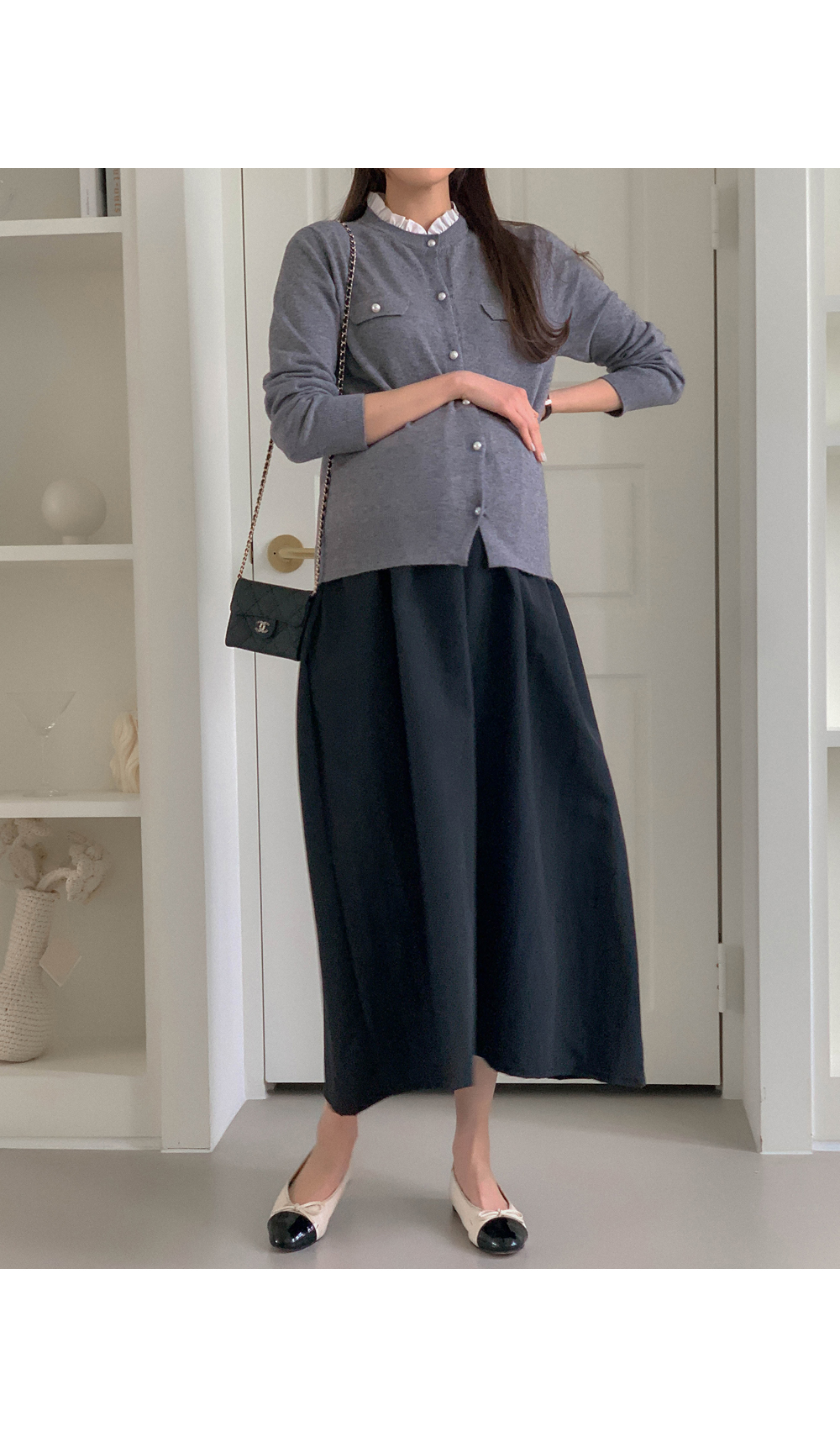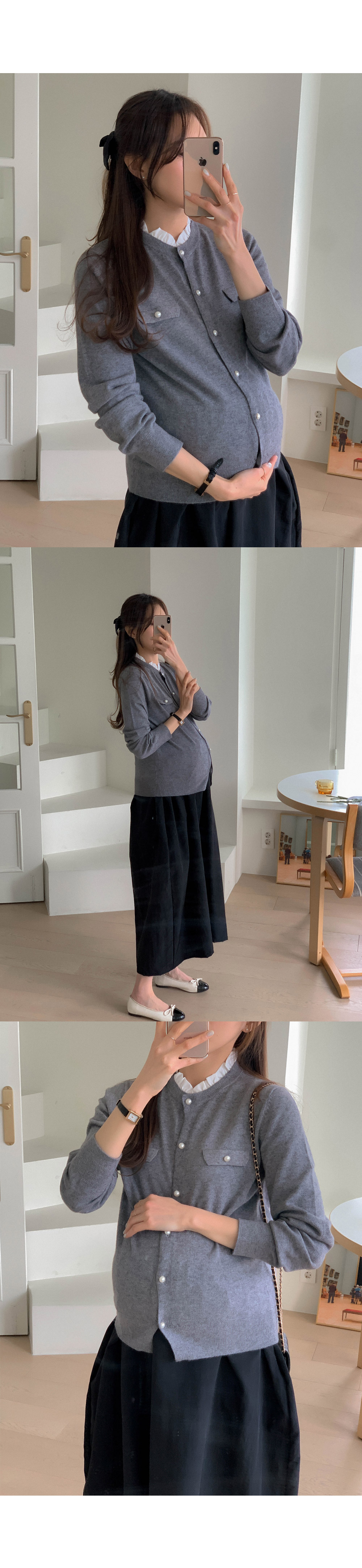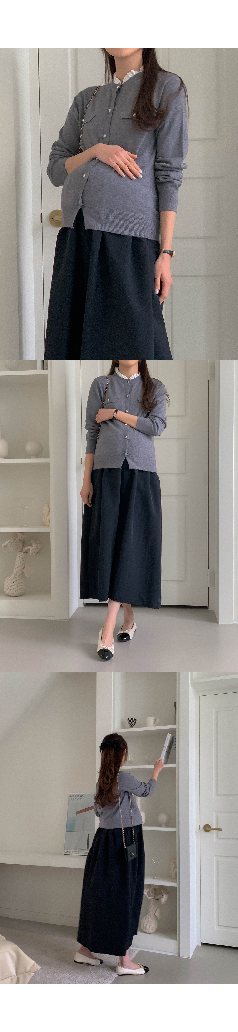 Maternity*Frill Neck Pearl Cock Cardigan)