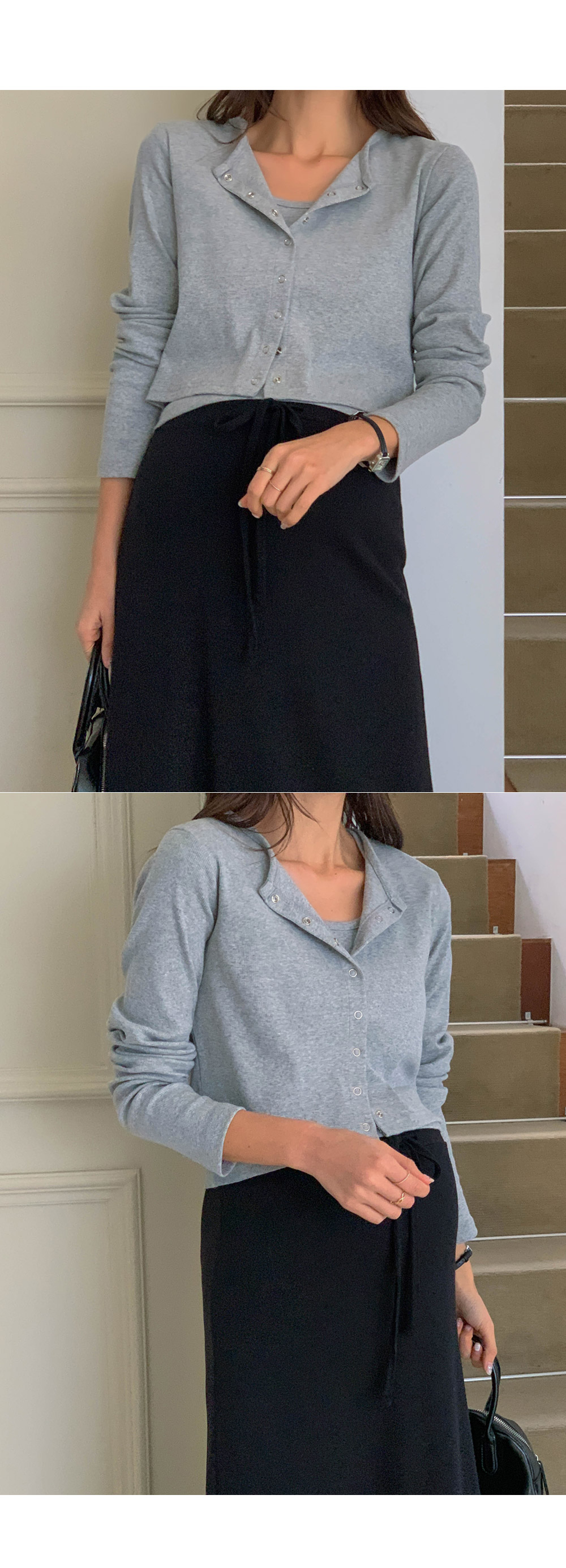 Maternity*Snap Button Sleeveless Shirts Cardiganset)