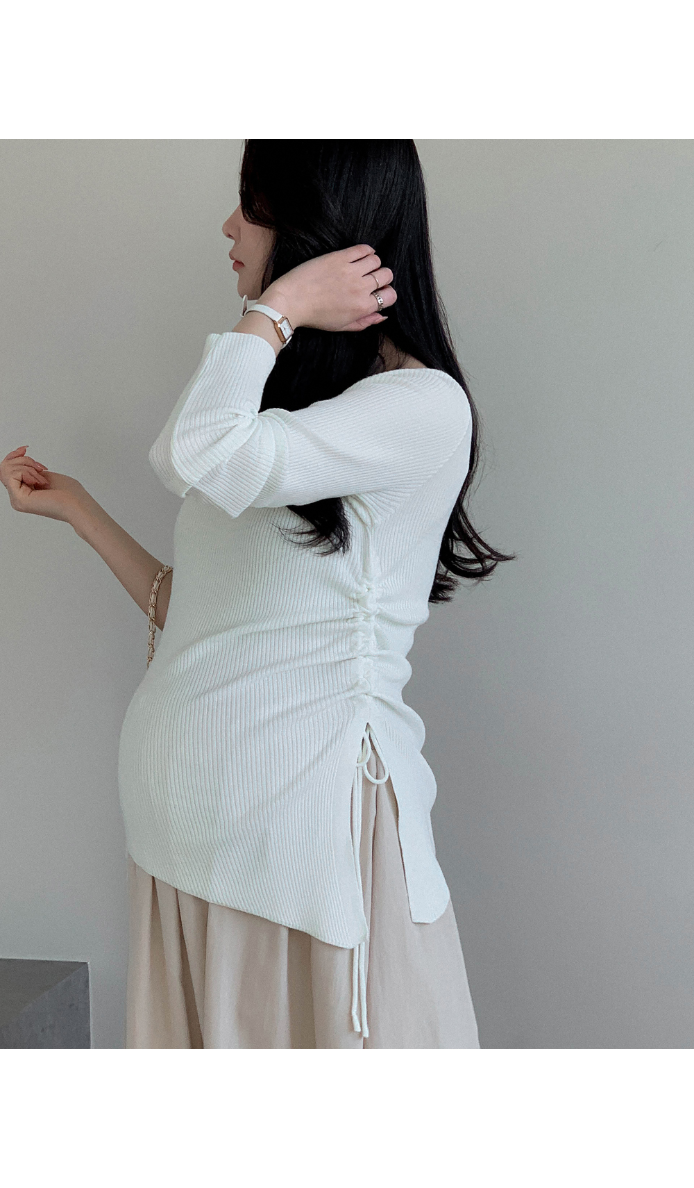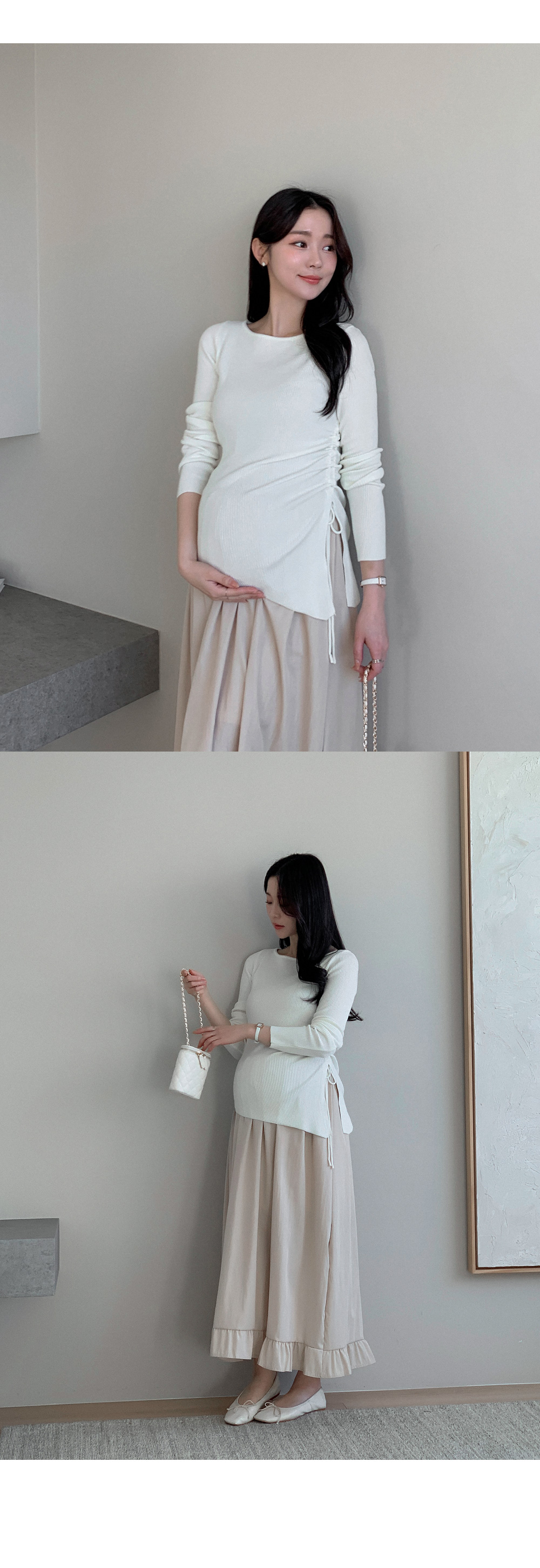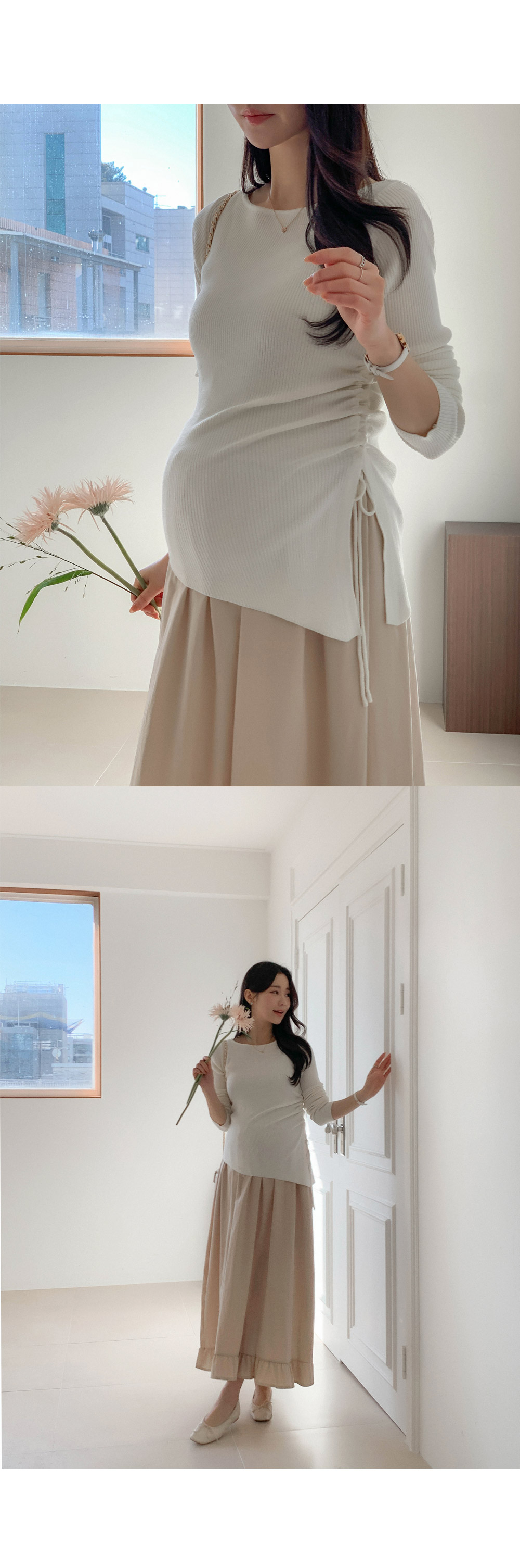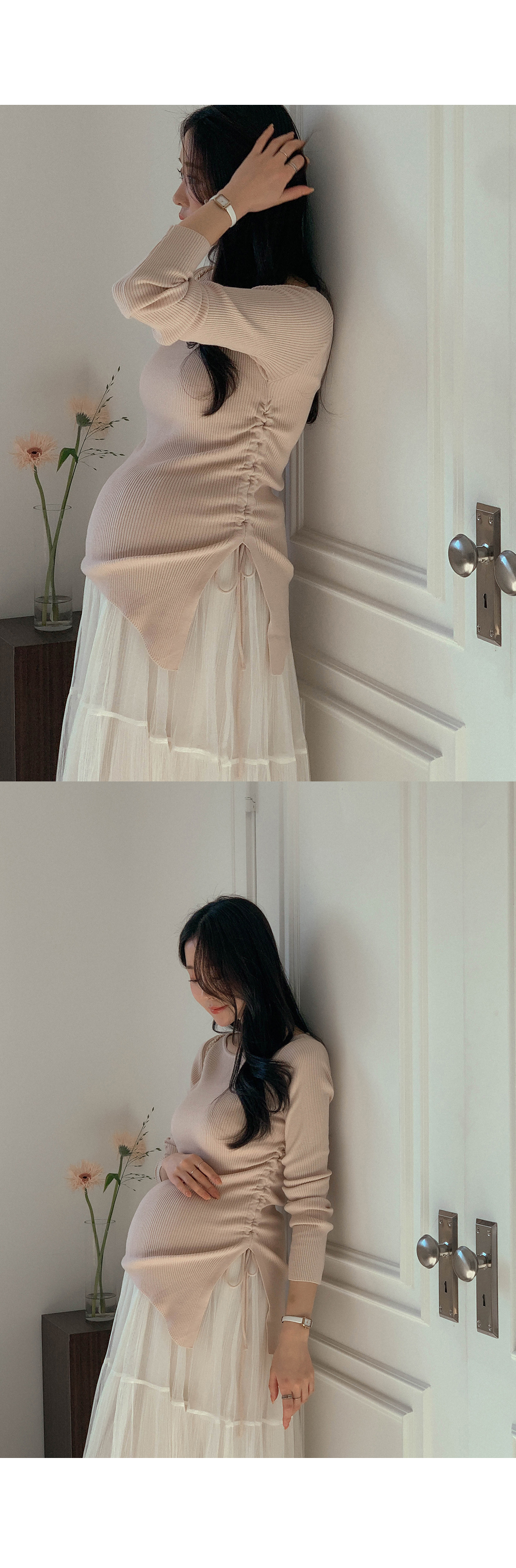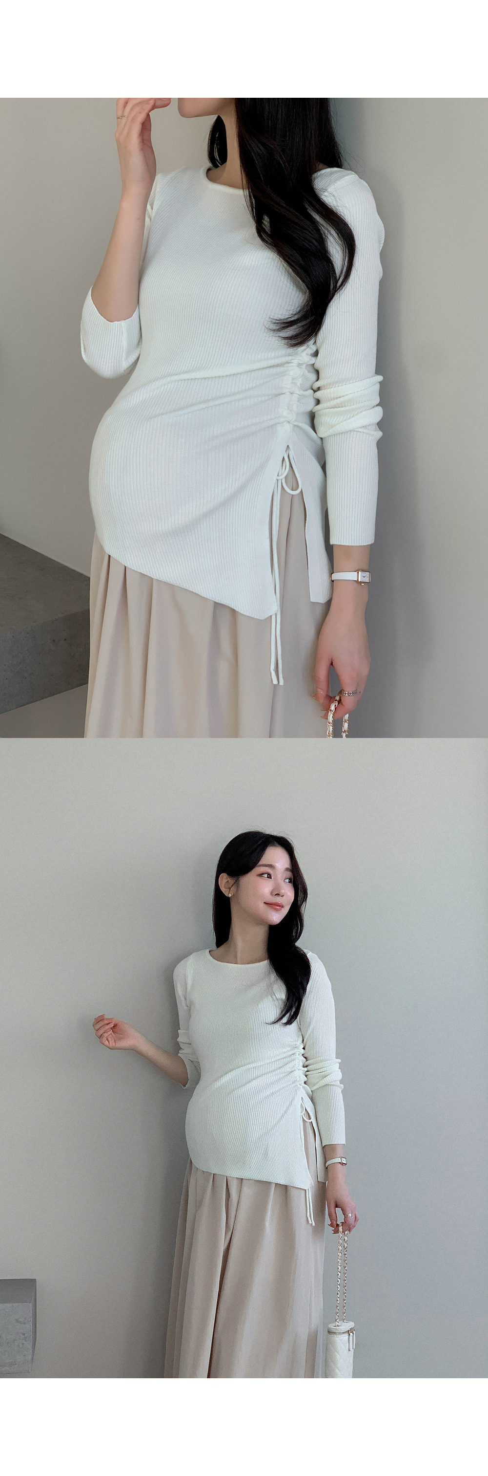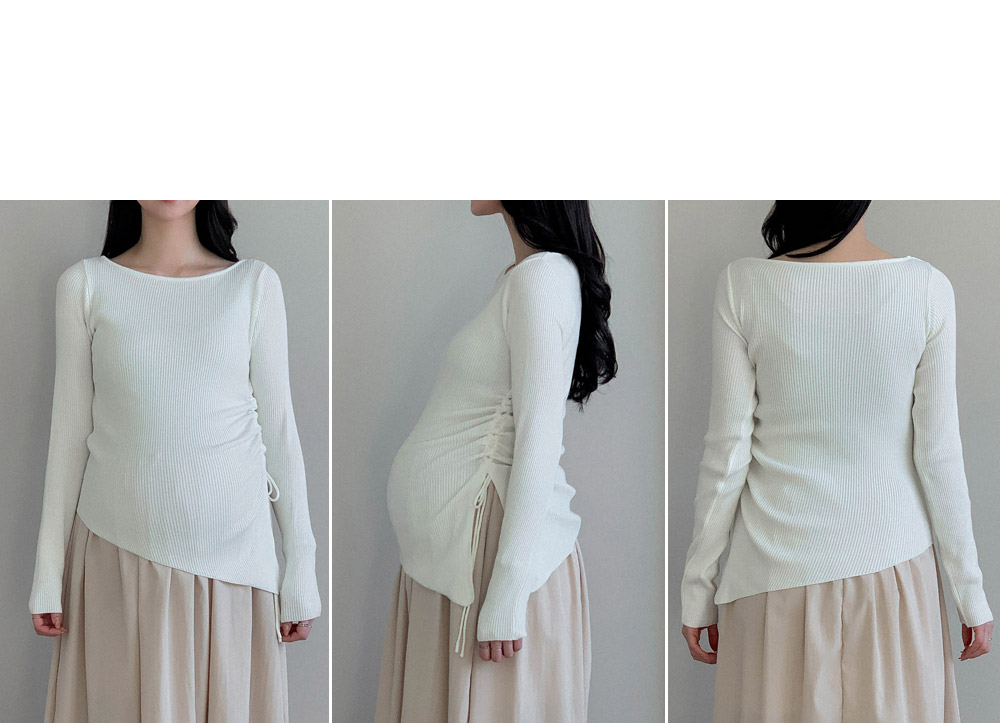 Maternity*Suare side shirring ribbed knit)