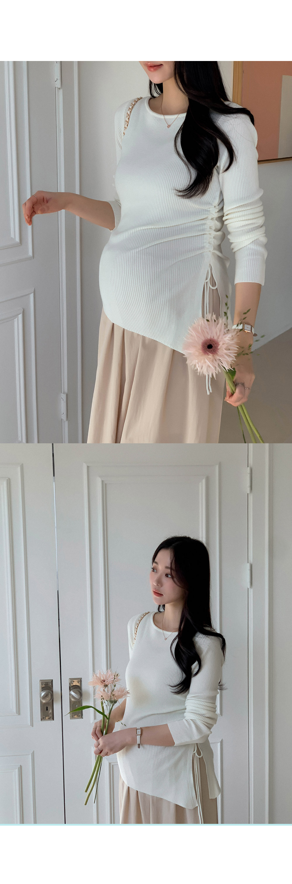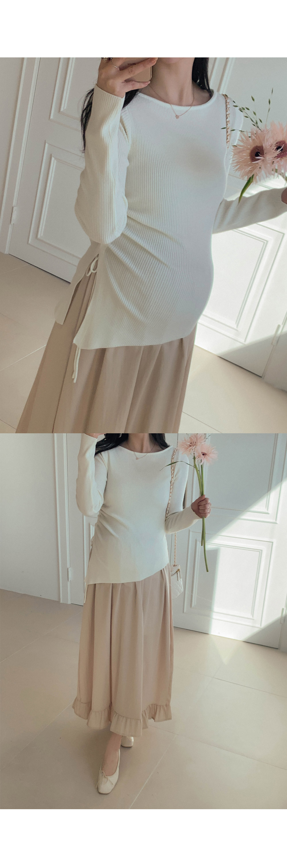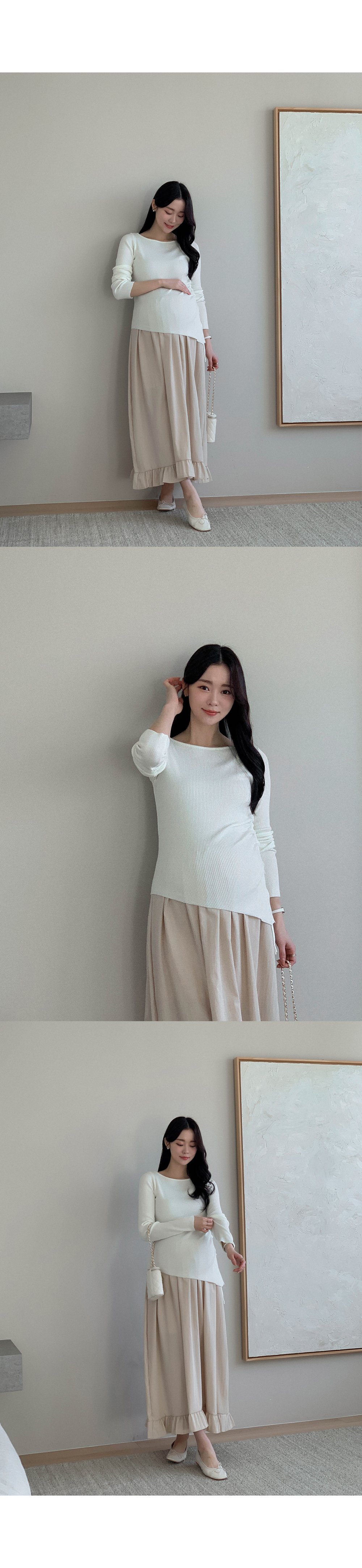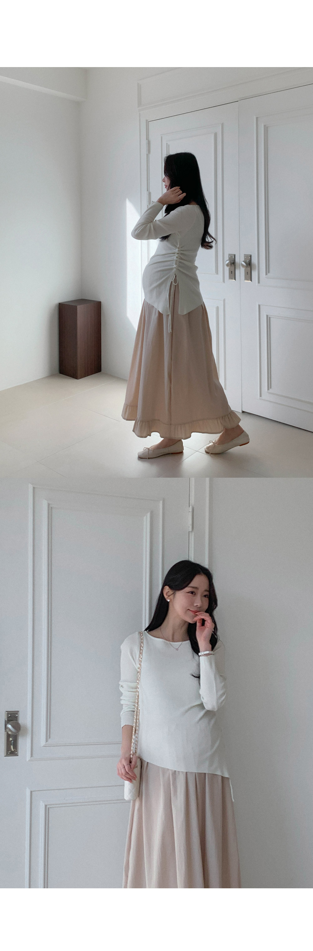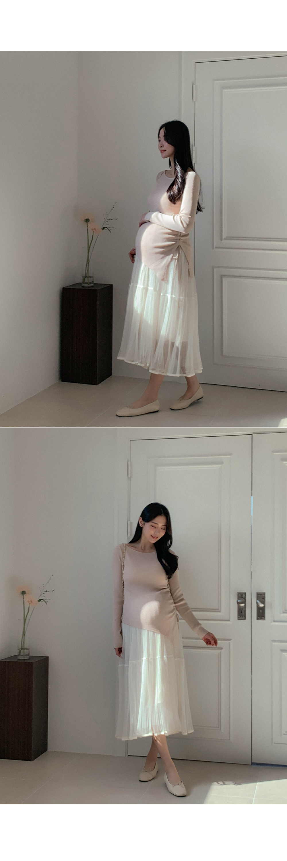 Maternity*Suare side shirring ribbed knit)