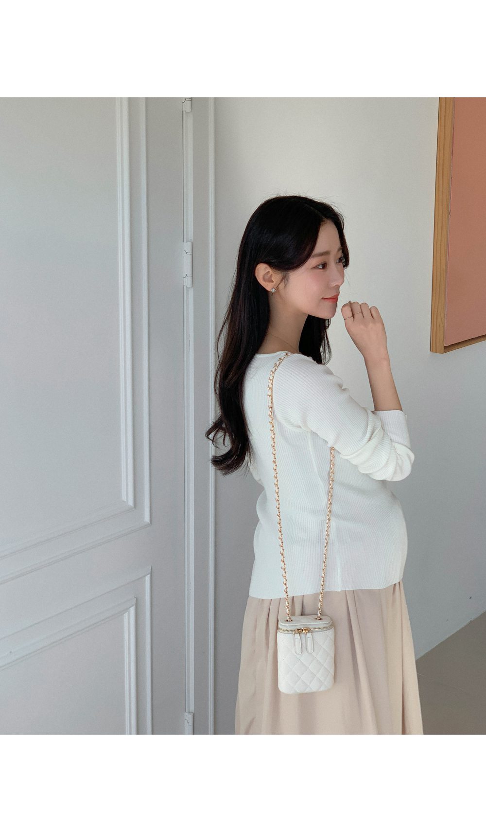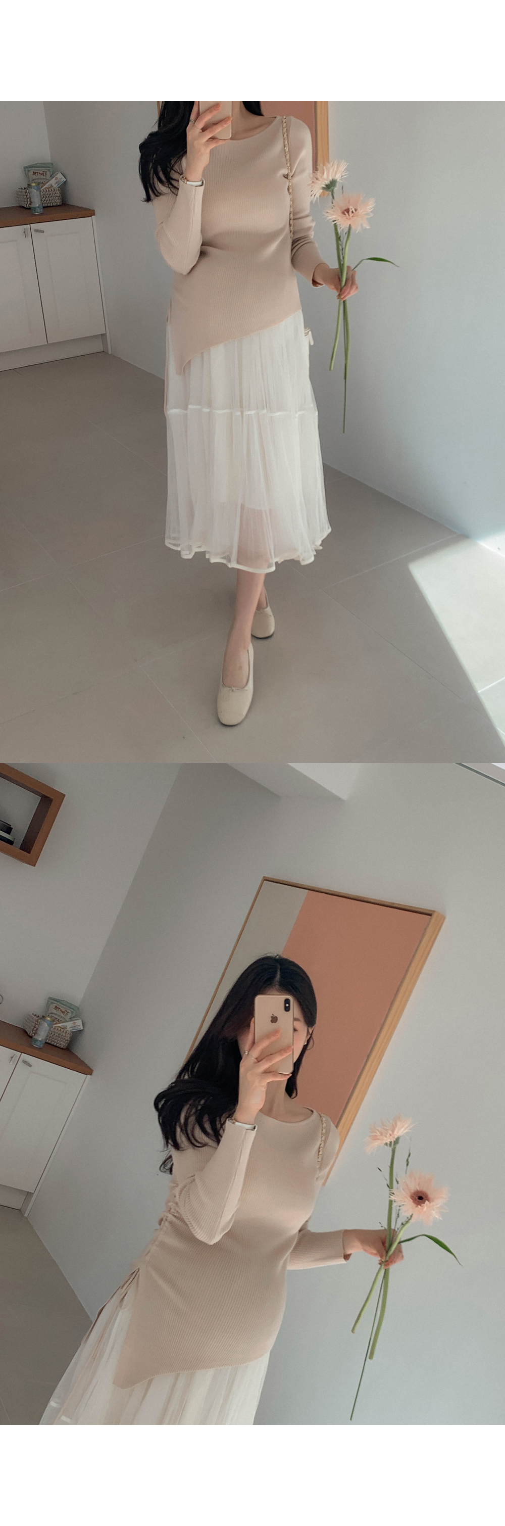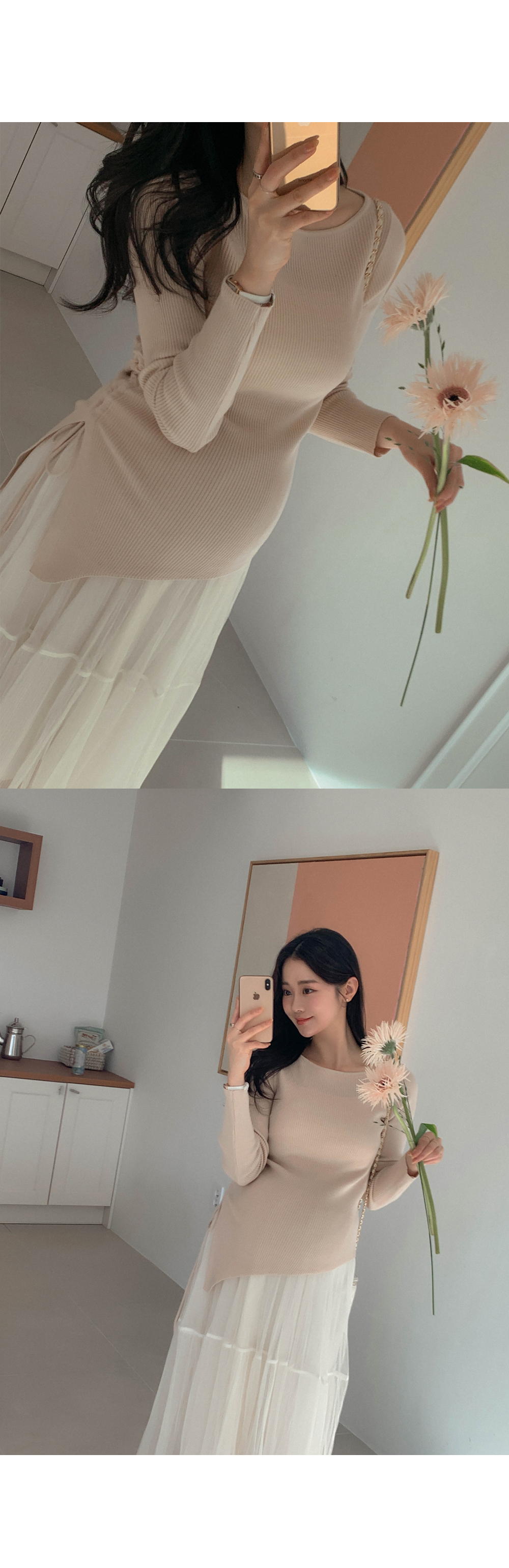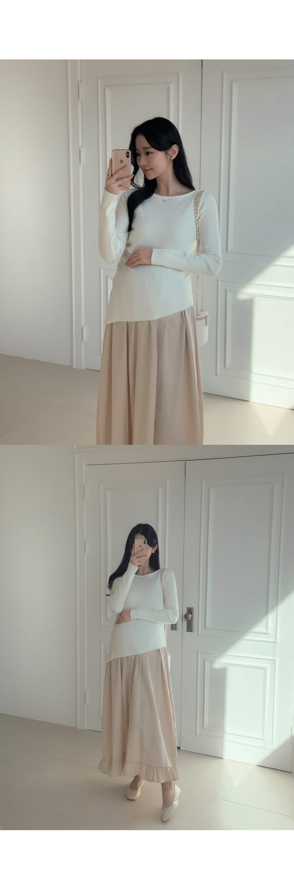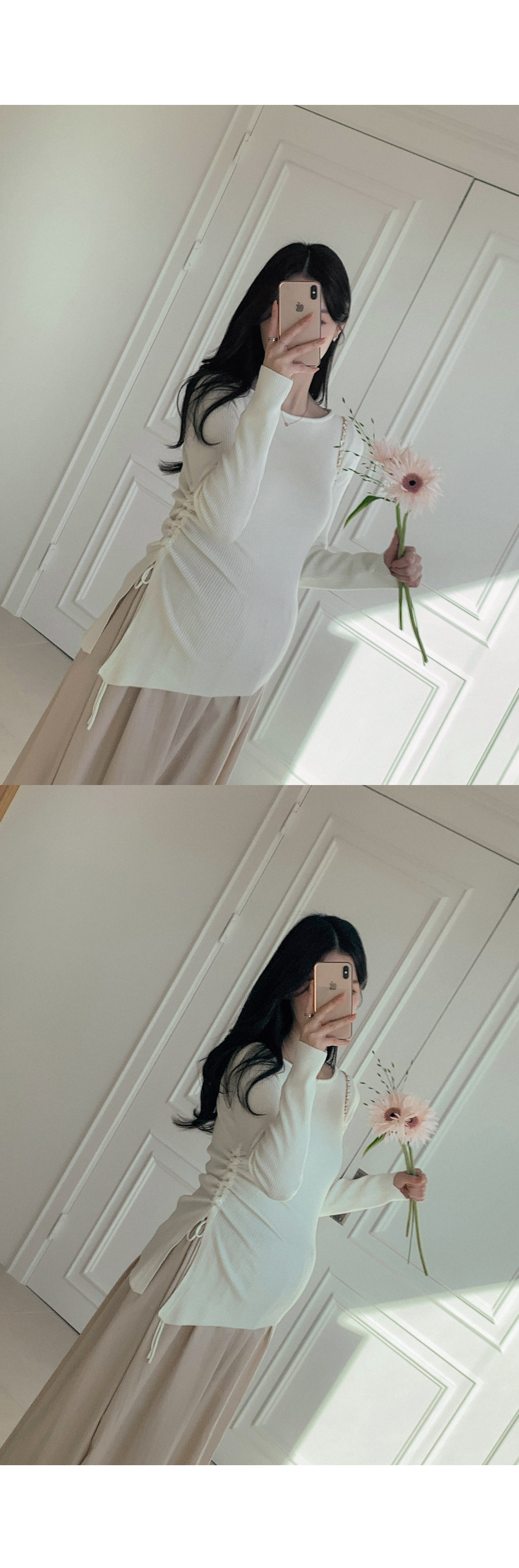 Maternity*Suare side shirring ribbed knit)