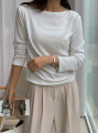 Side shirring boat neck long sleeve T-shirt