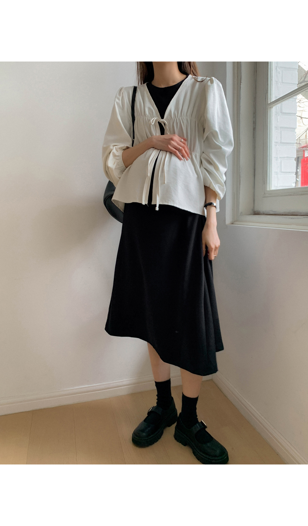 Maternity*Popo Banding Shirring Cardigan)