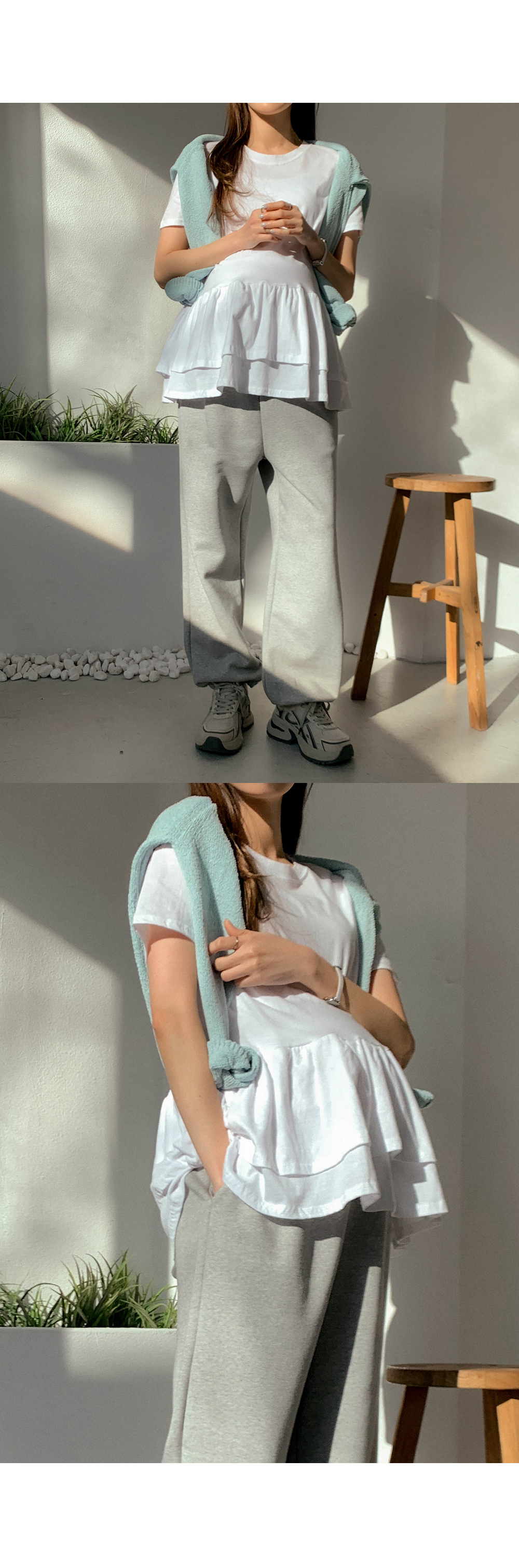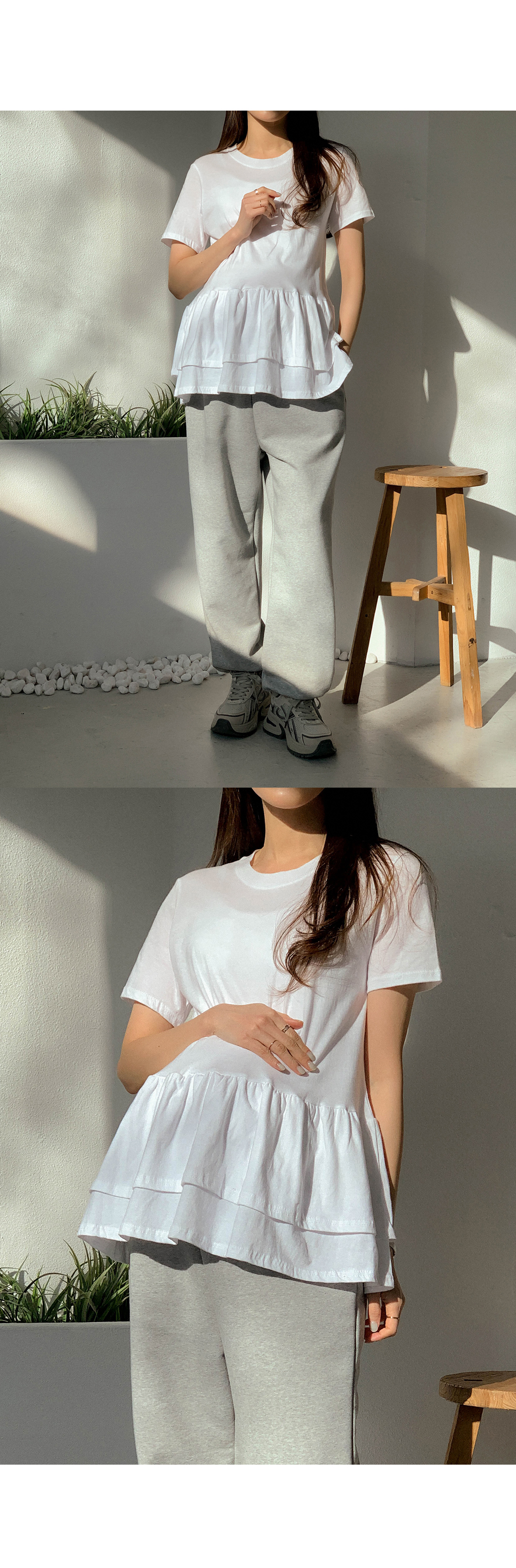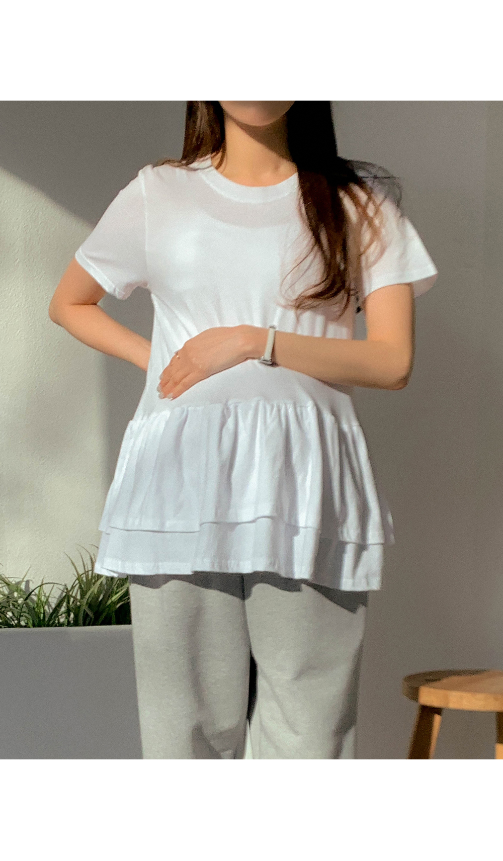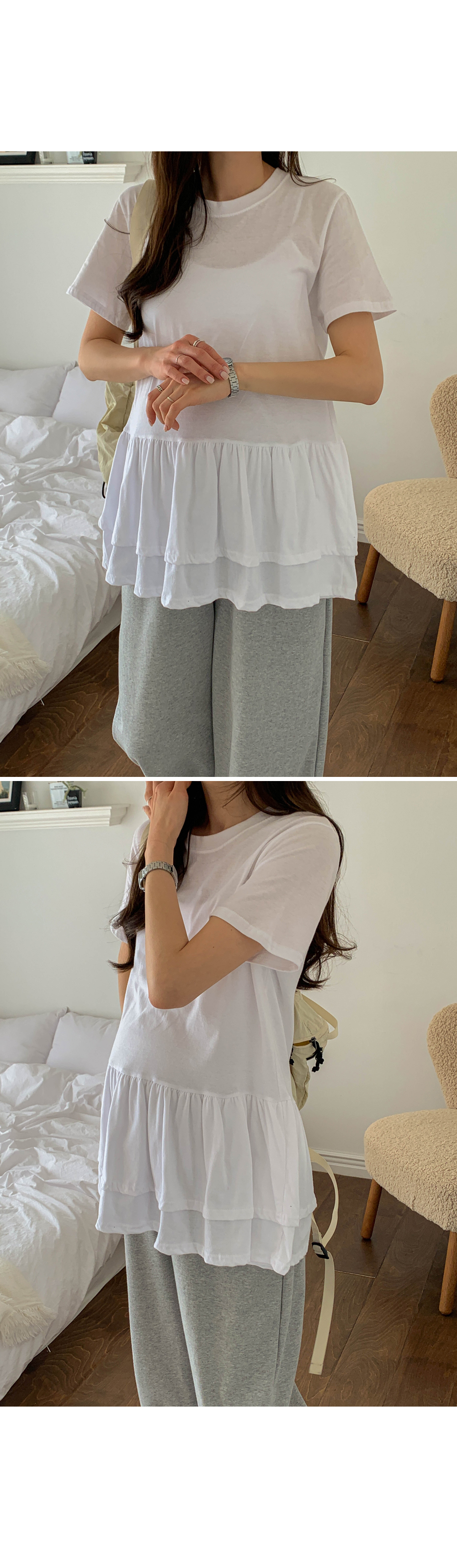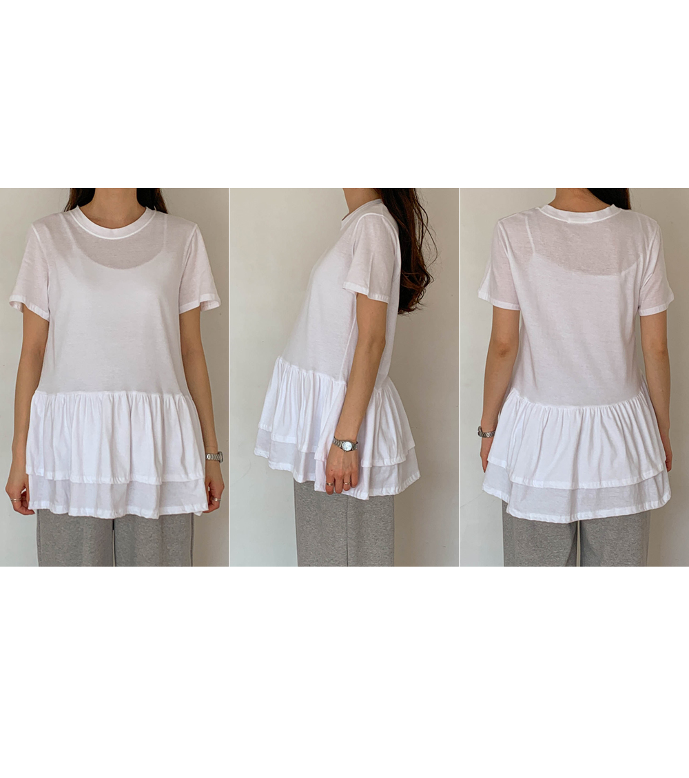 Maternity*Ruffle Hem Short T-shirts)