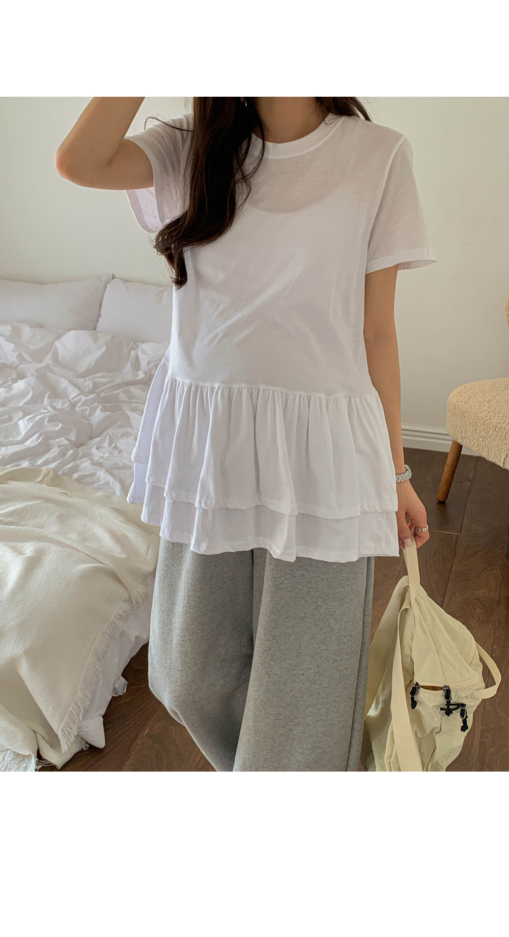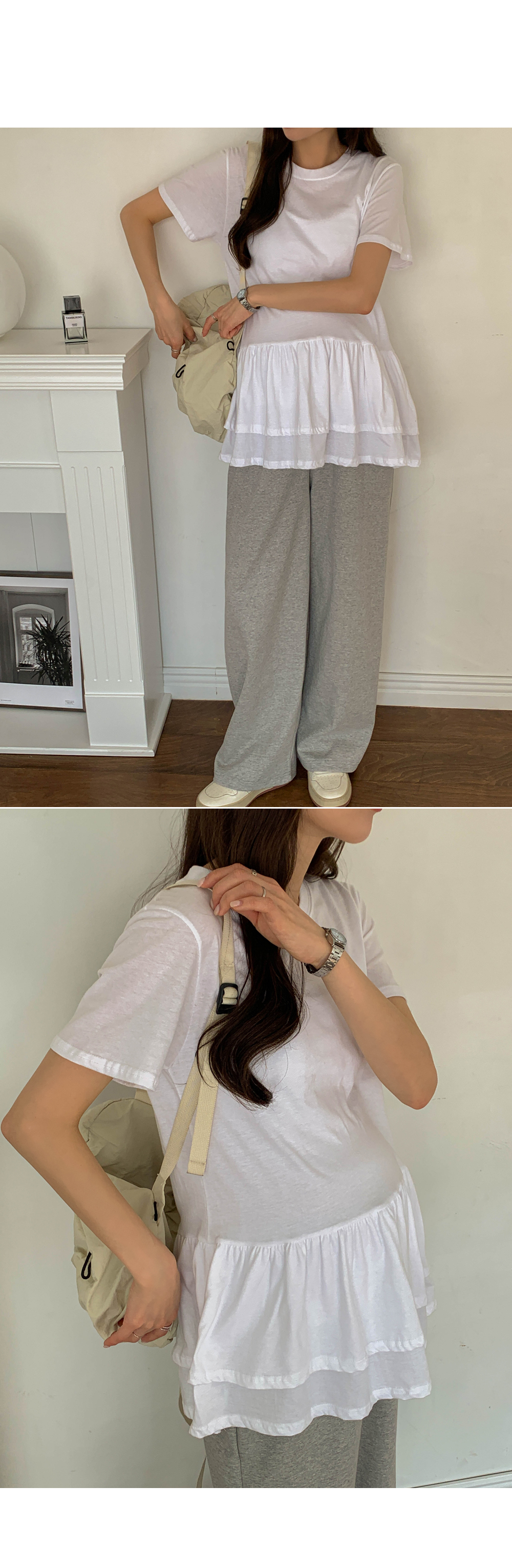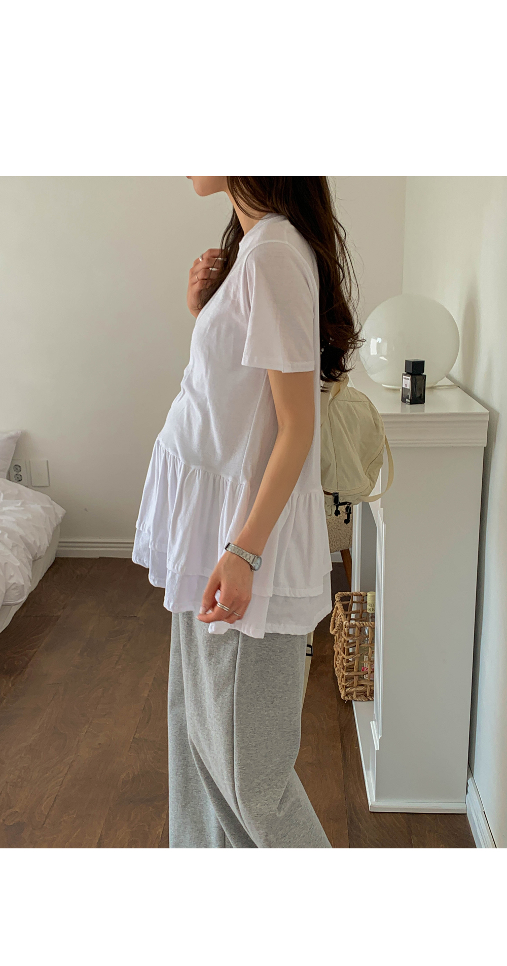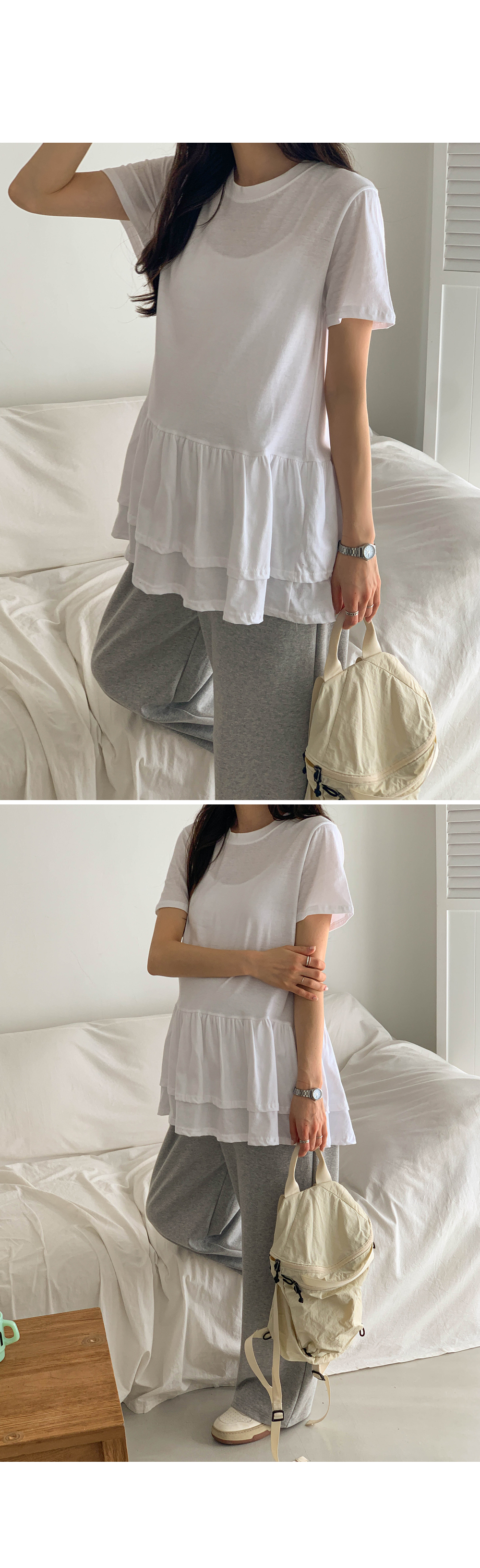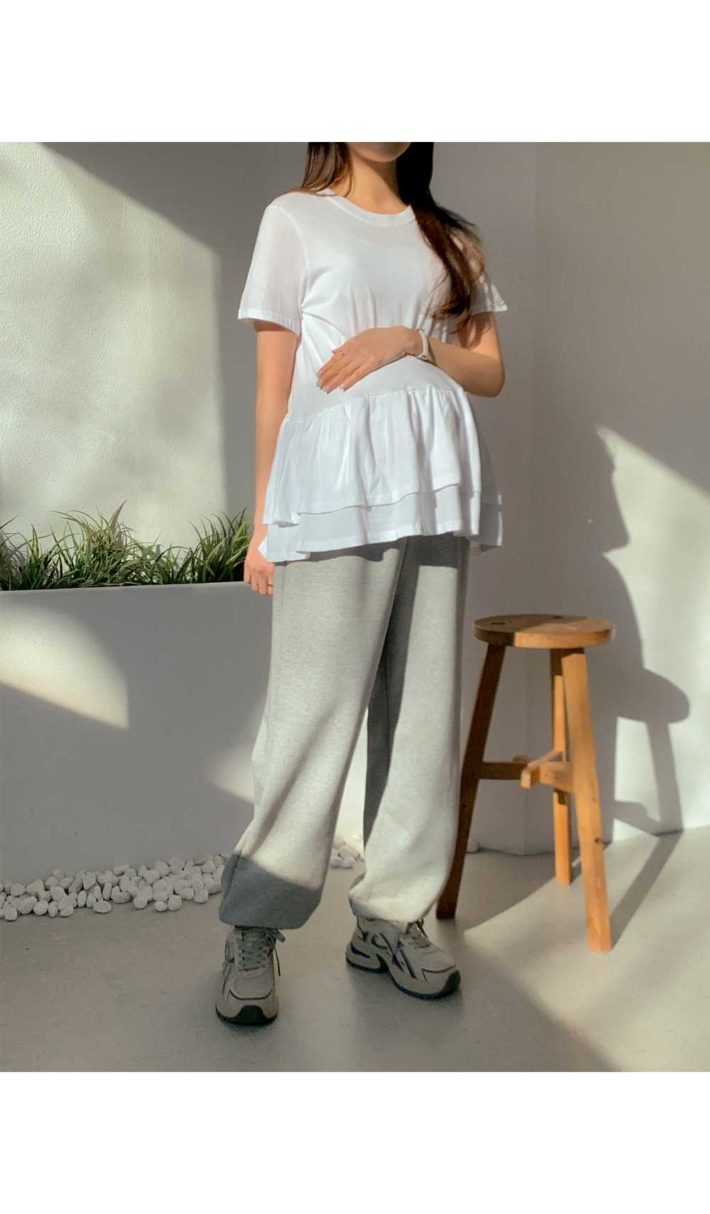 Maternity*Ruffle Hem Short T-shirts)
