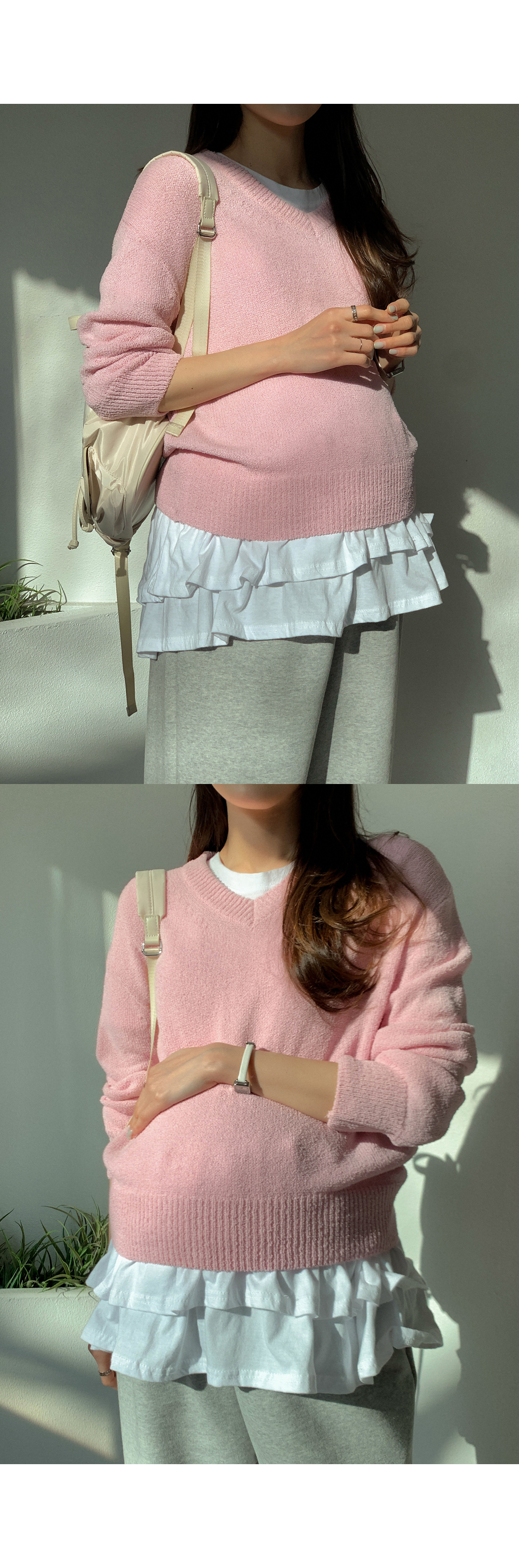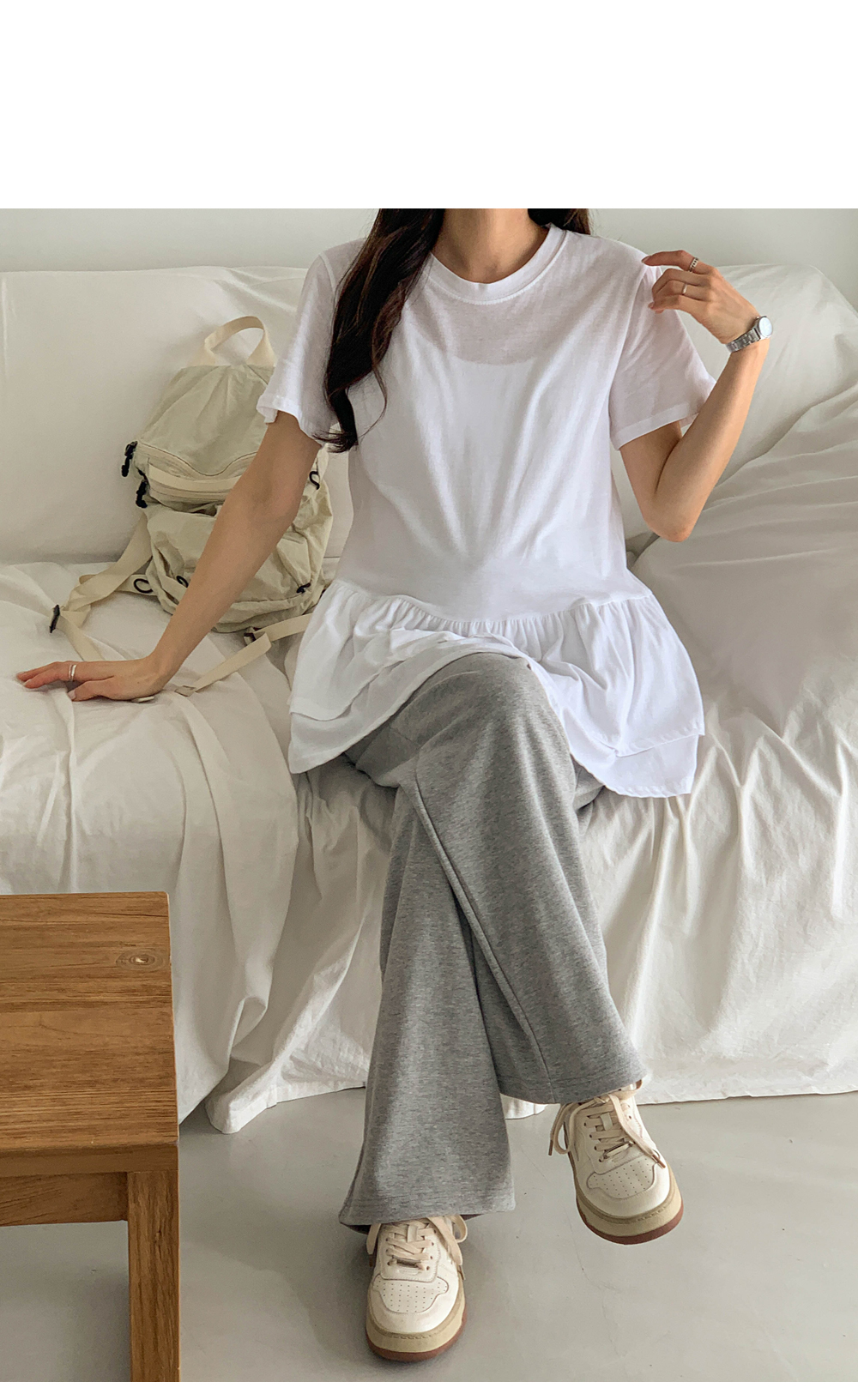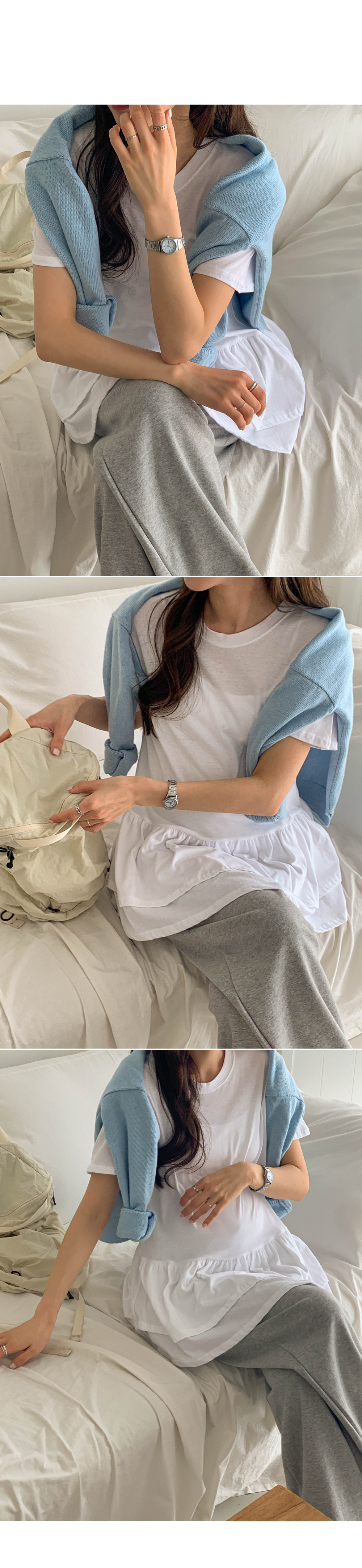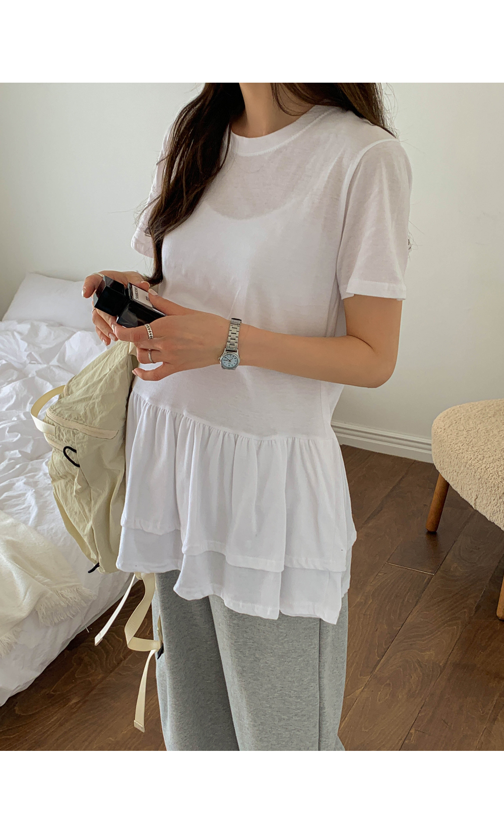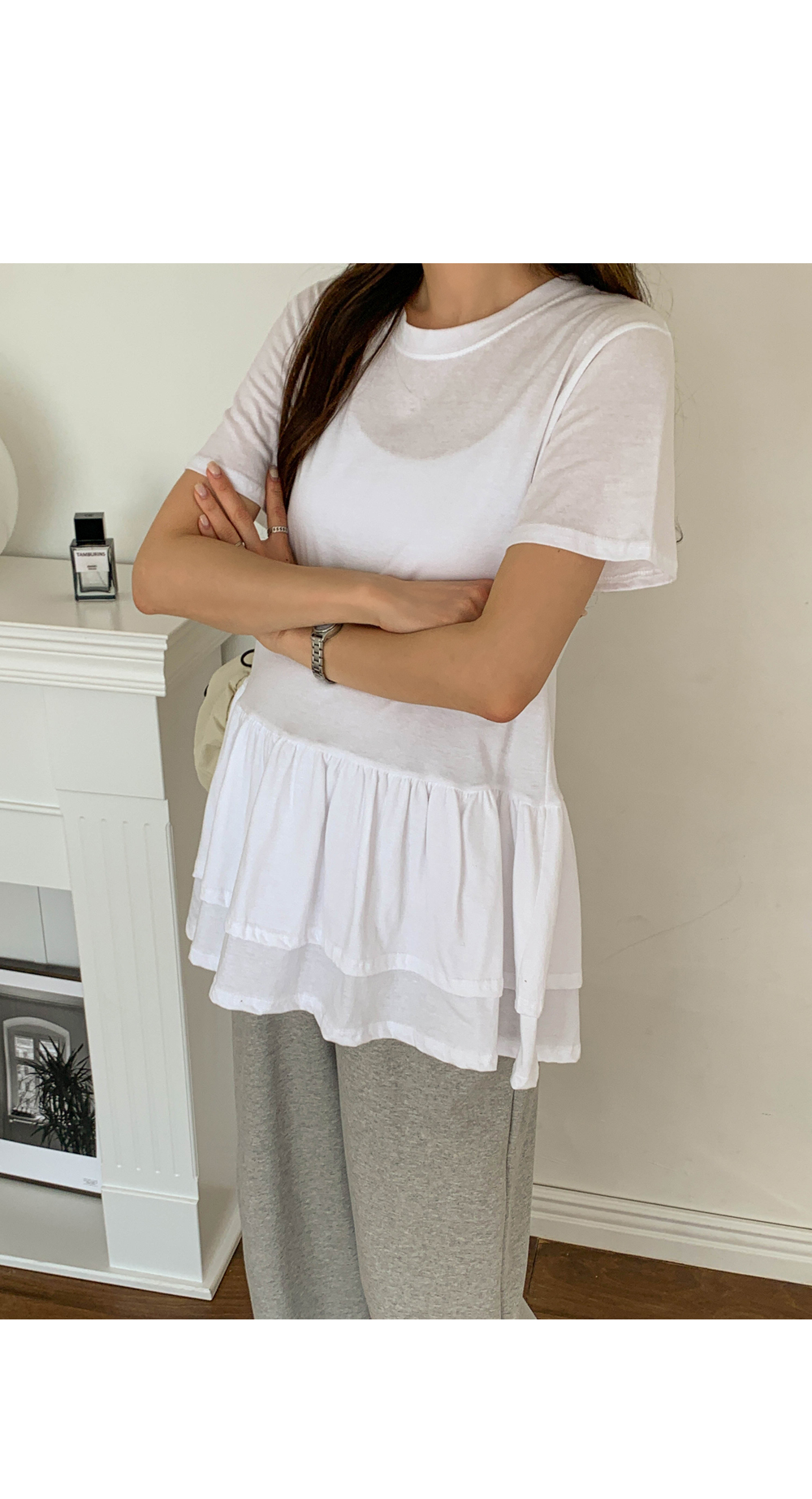 Maternity*Ruffle Hem Short T-shirts)