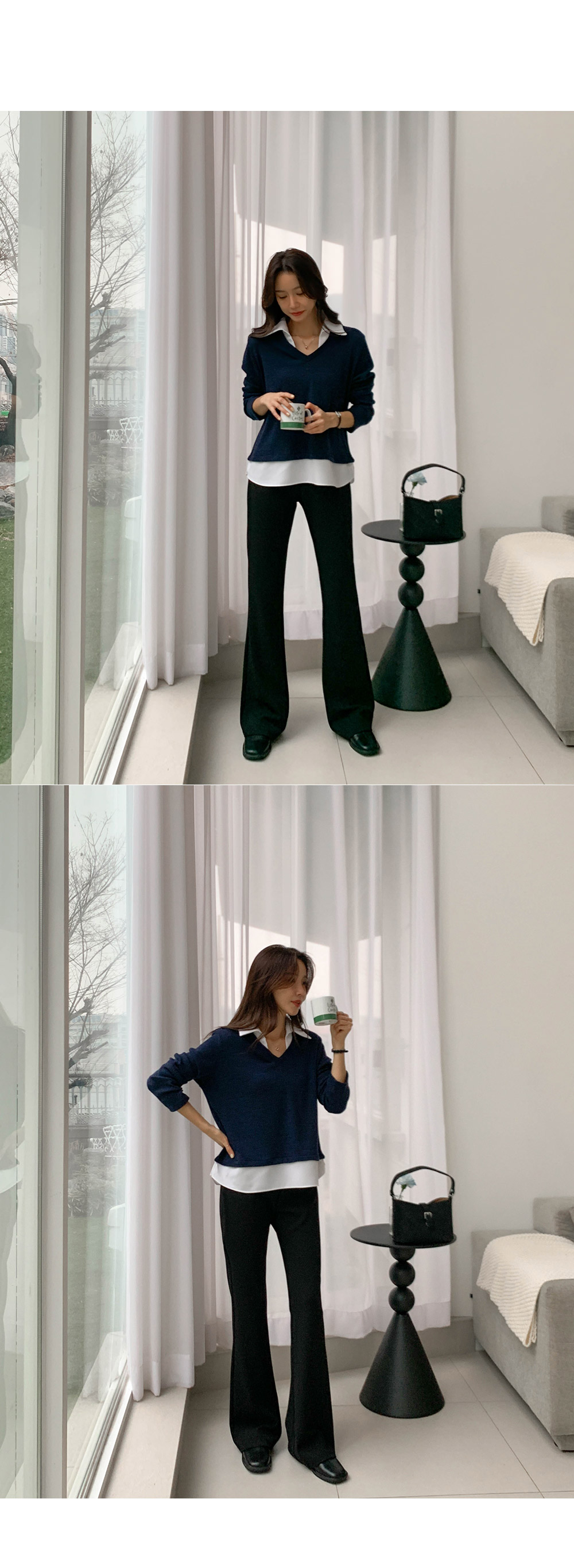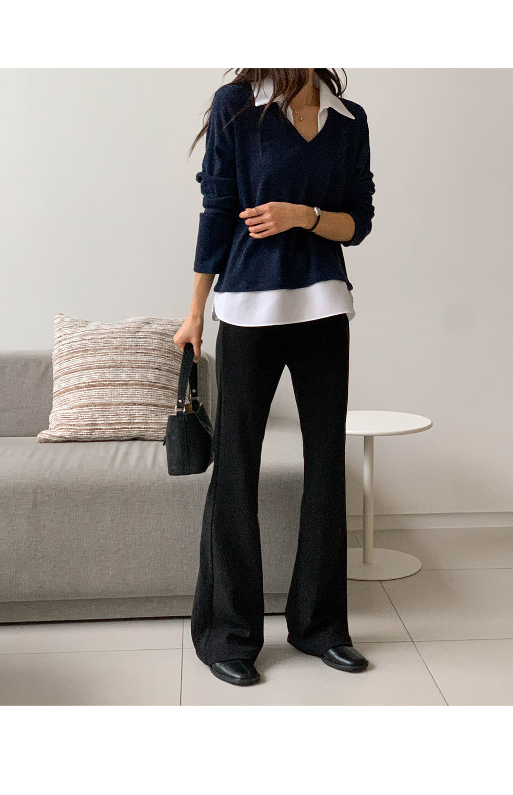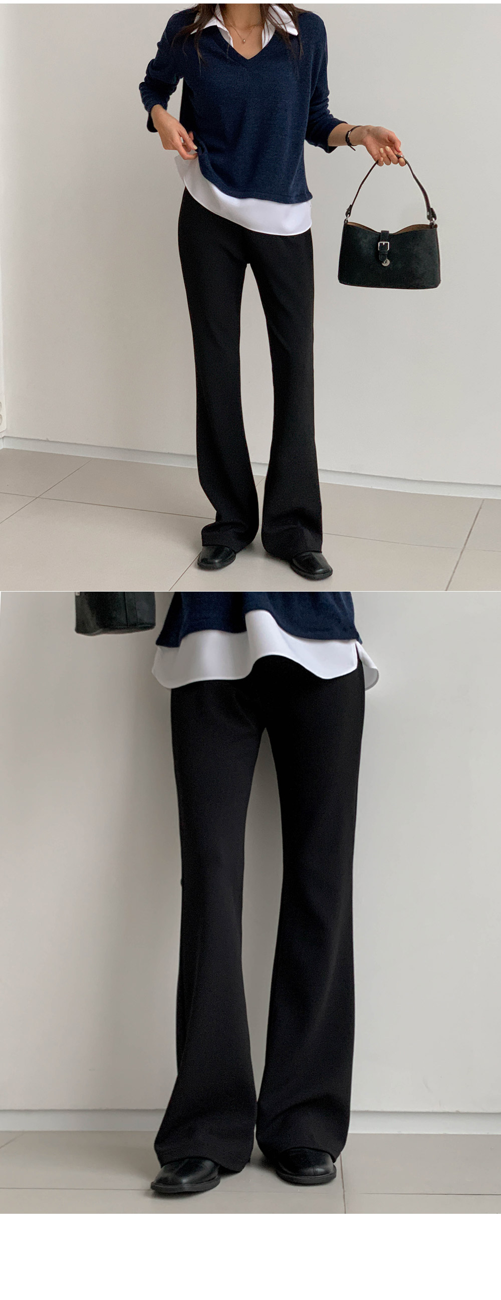 Exclamation point: Long bootcut pants)