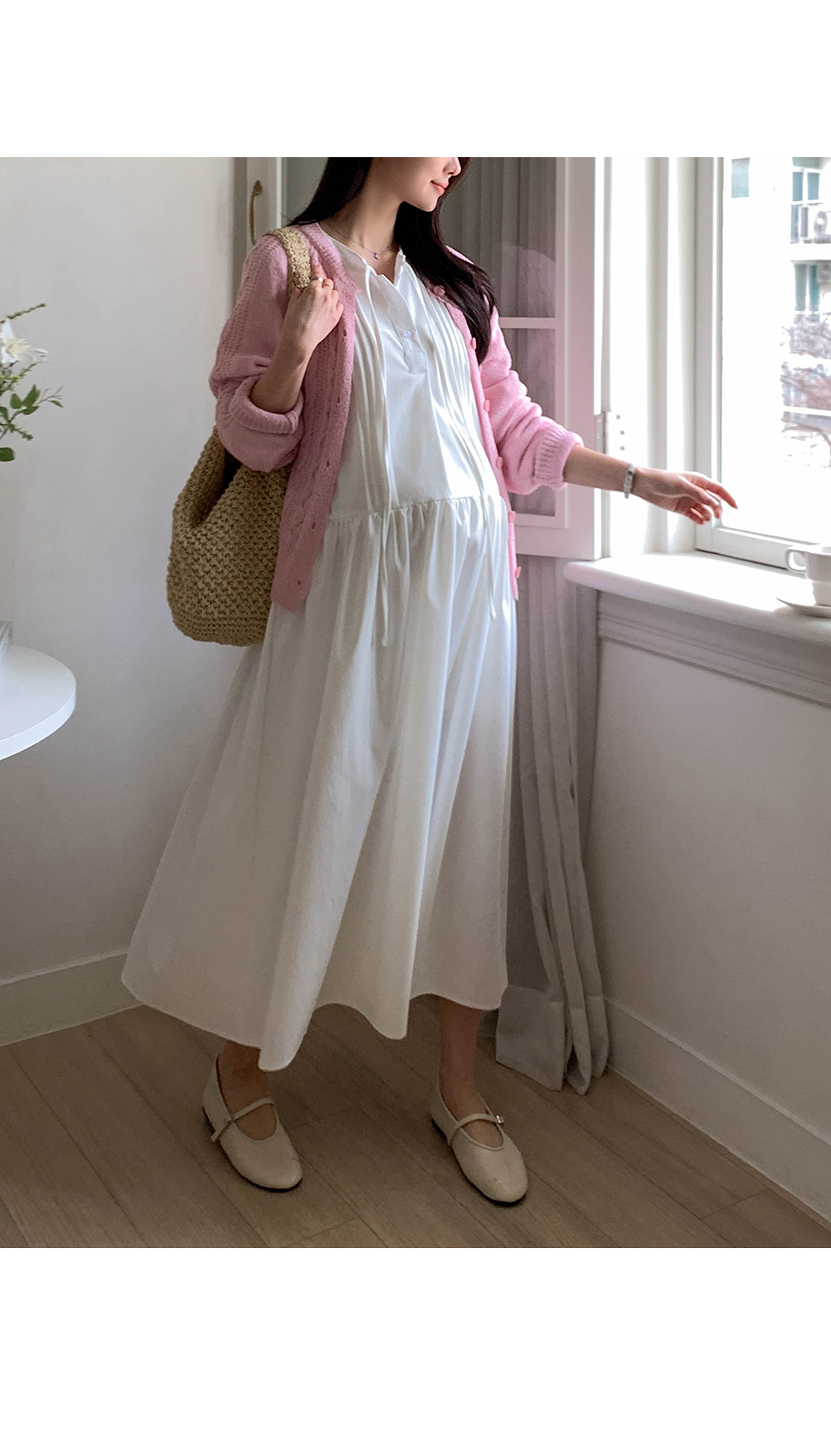 Maternity*Side String Cotton Shirt One Piece