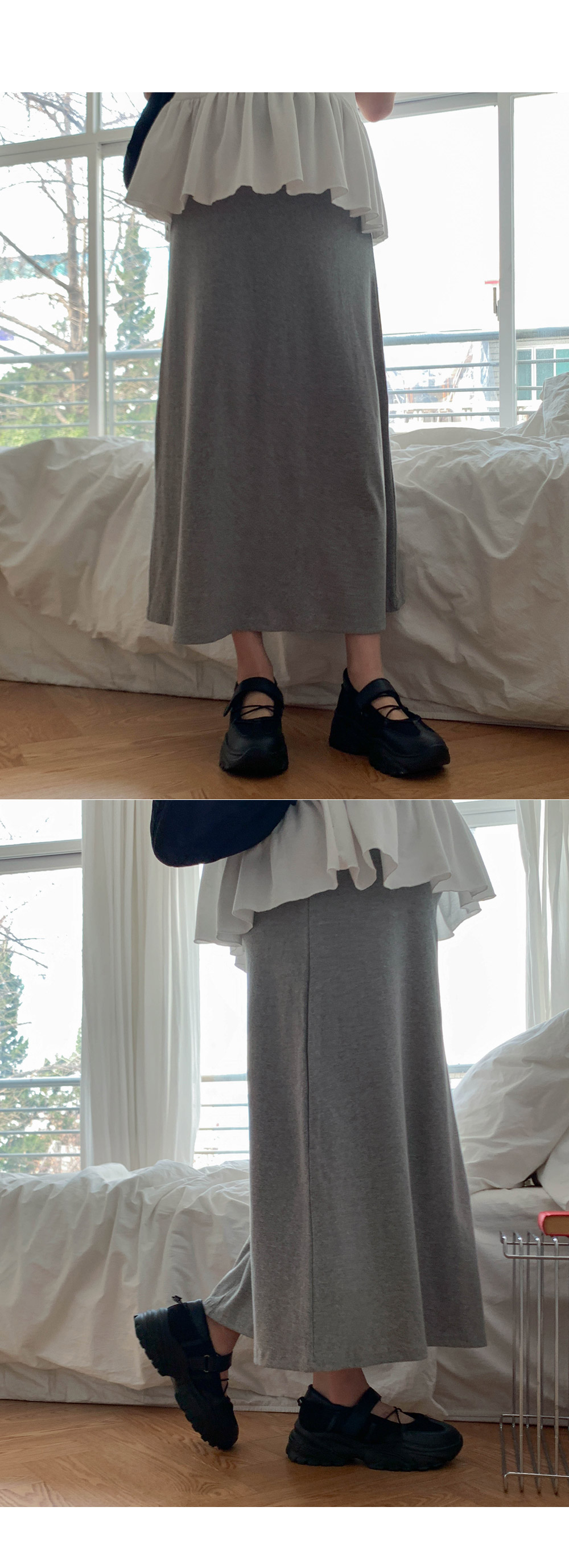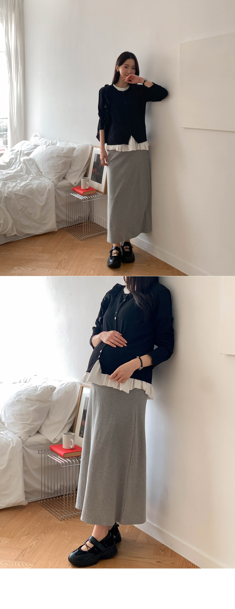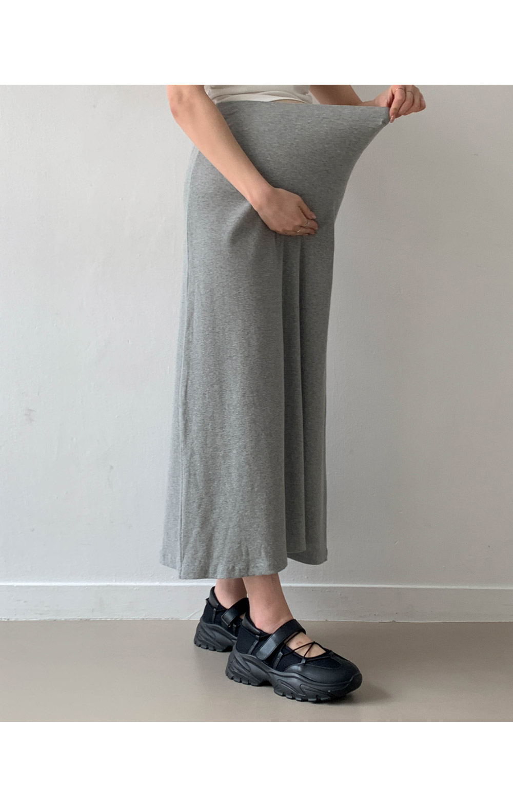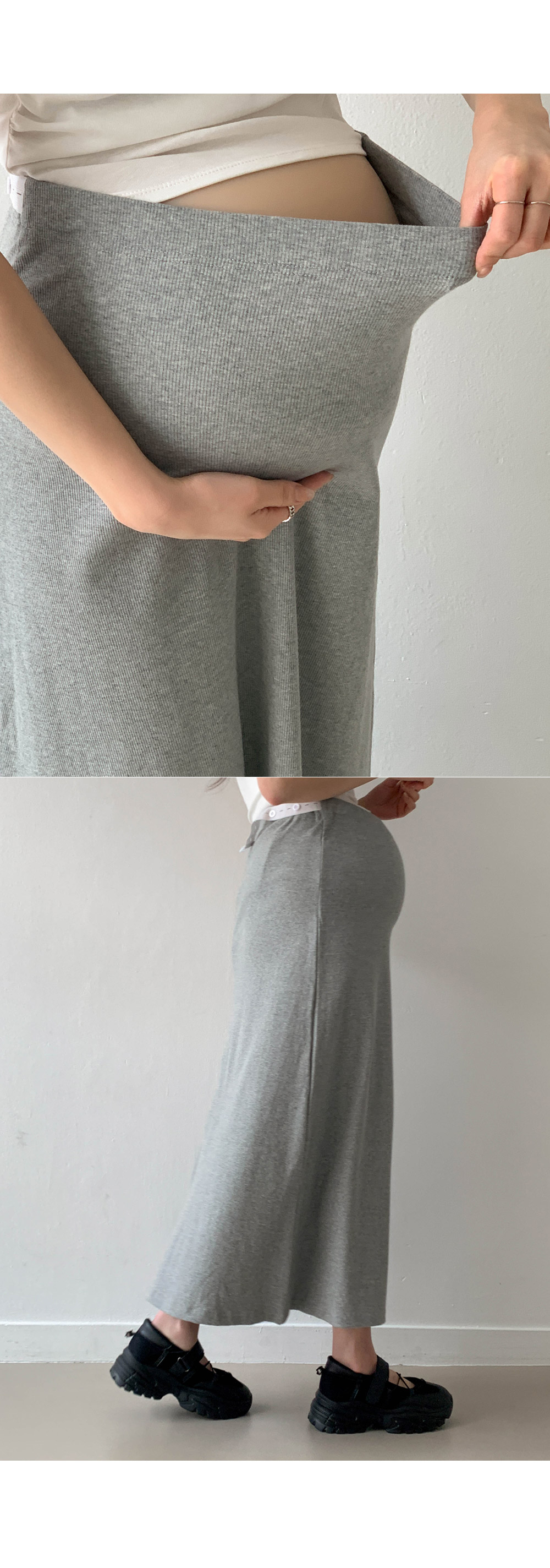 Maternity*Slim ribbed adjustable band rong skirt)