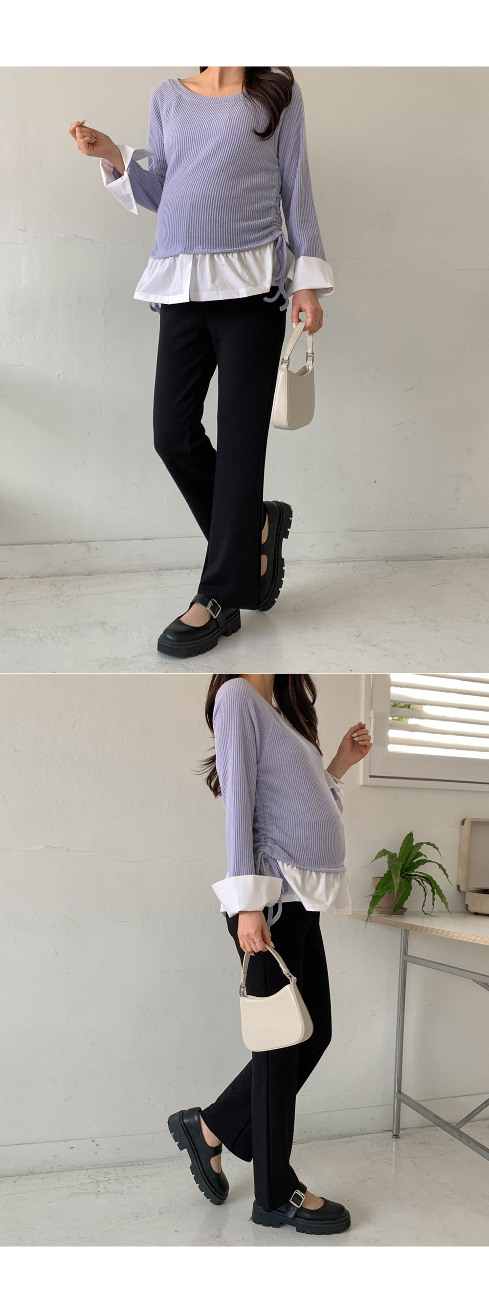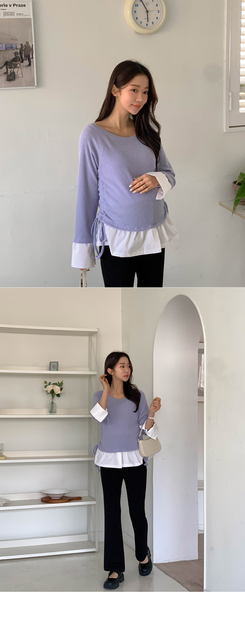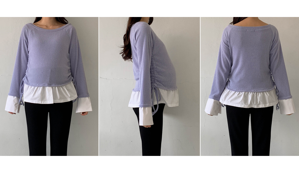 Maternity*Cuffed Side Shirring Blouse)