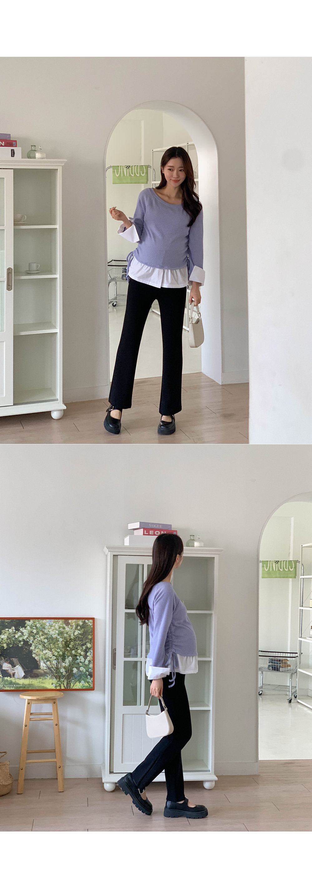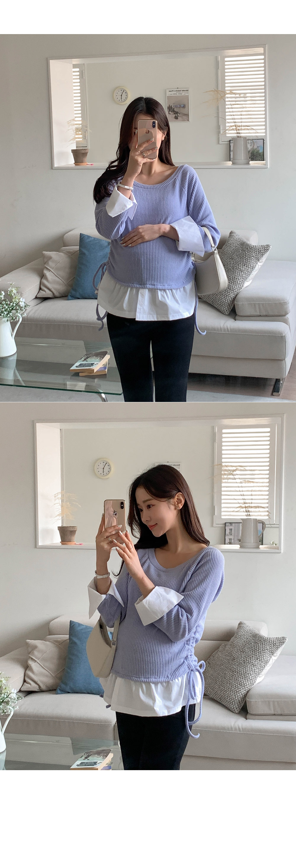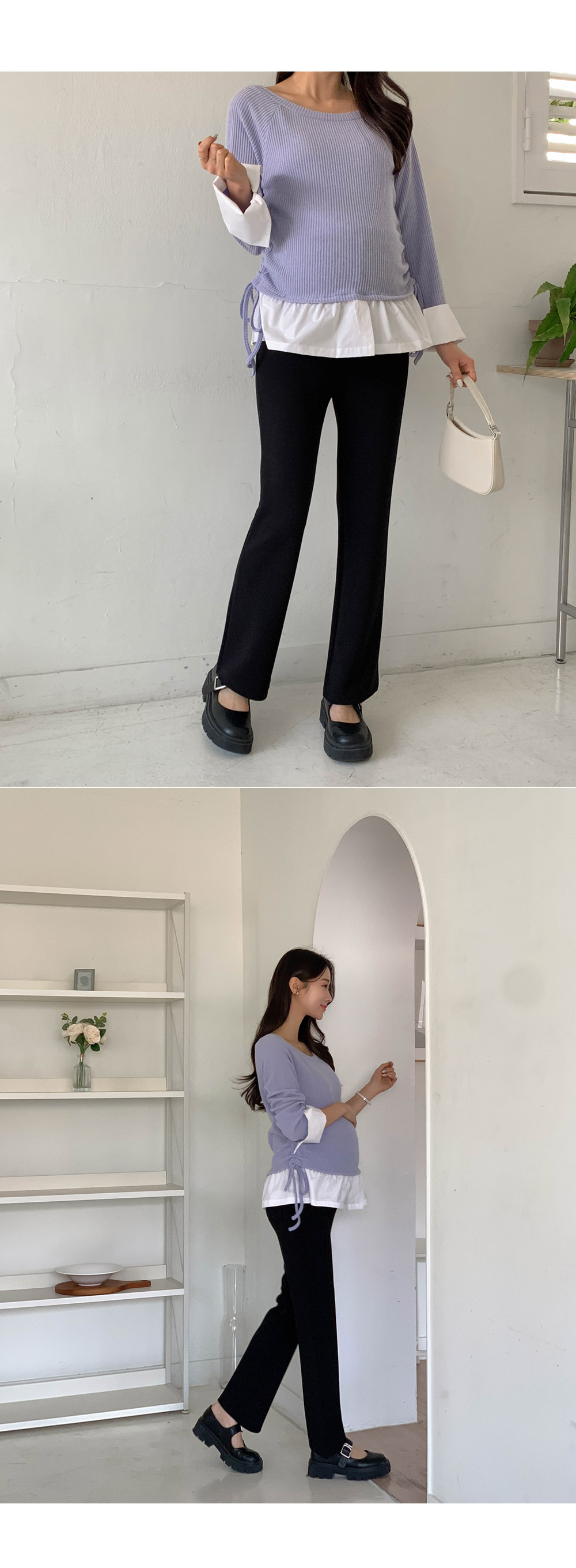 Maternity*Cuffed Side Shirring Blouse)