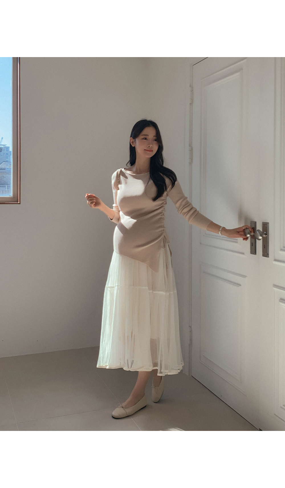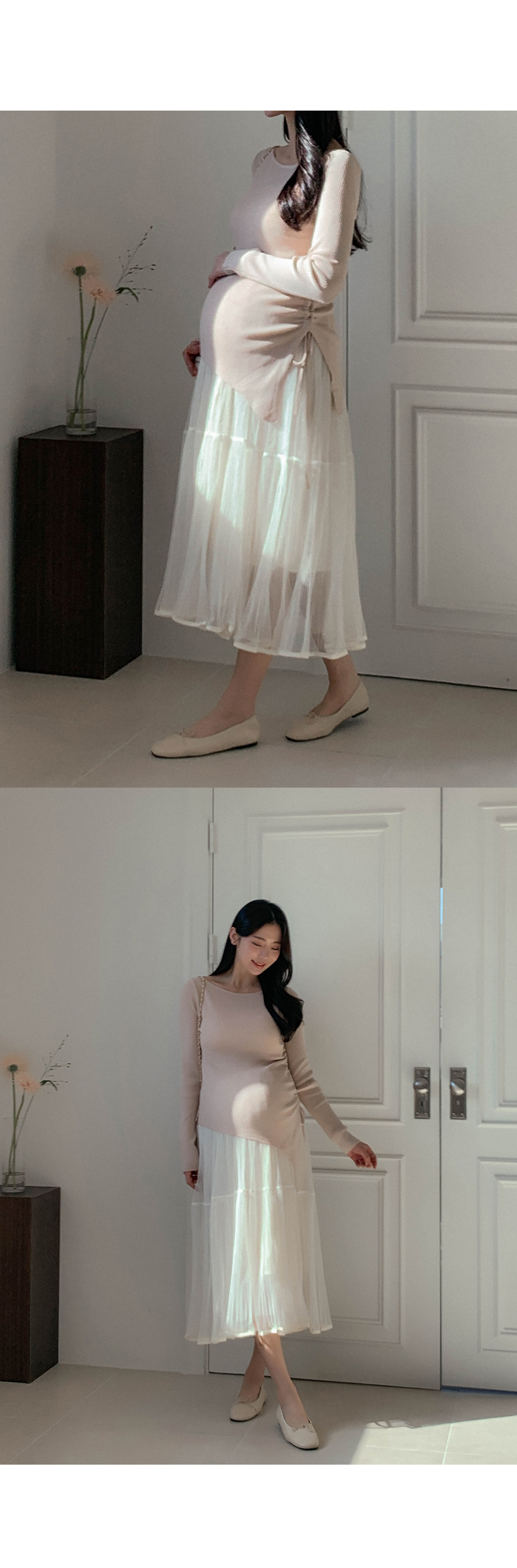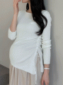 Maternity*Suare side shirring ribbed knit