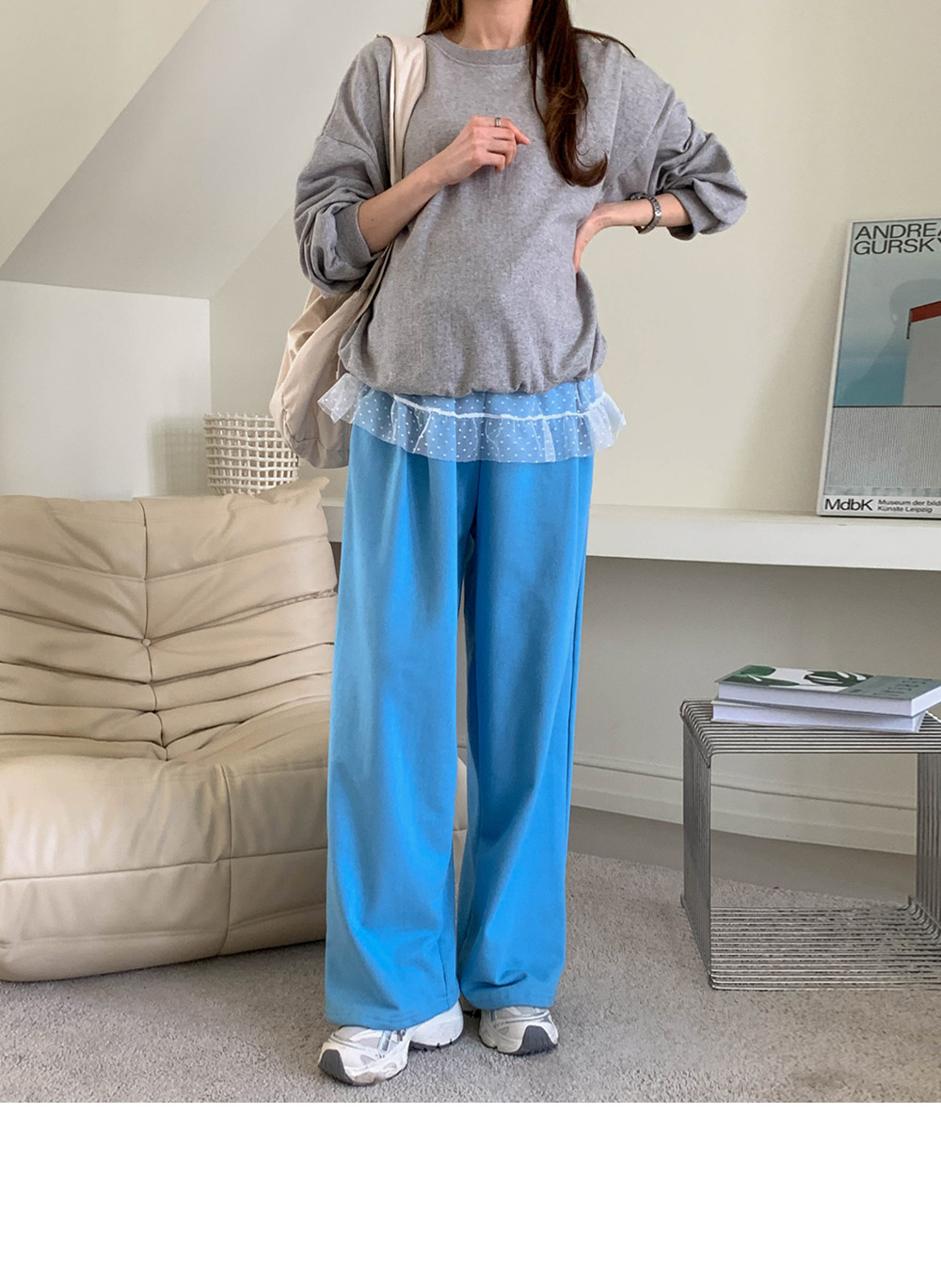 Maternity*Cozy Pintuck Wide Pants)