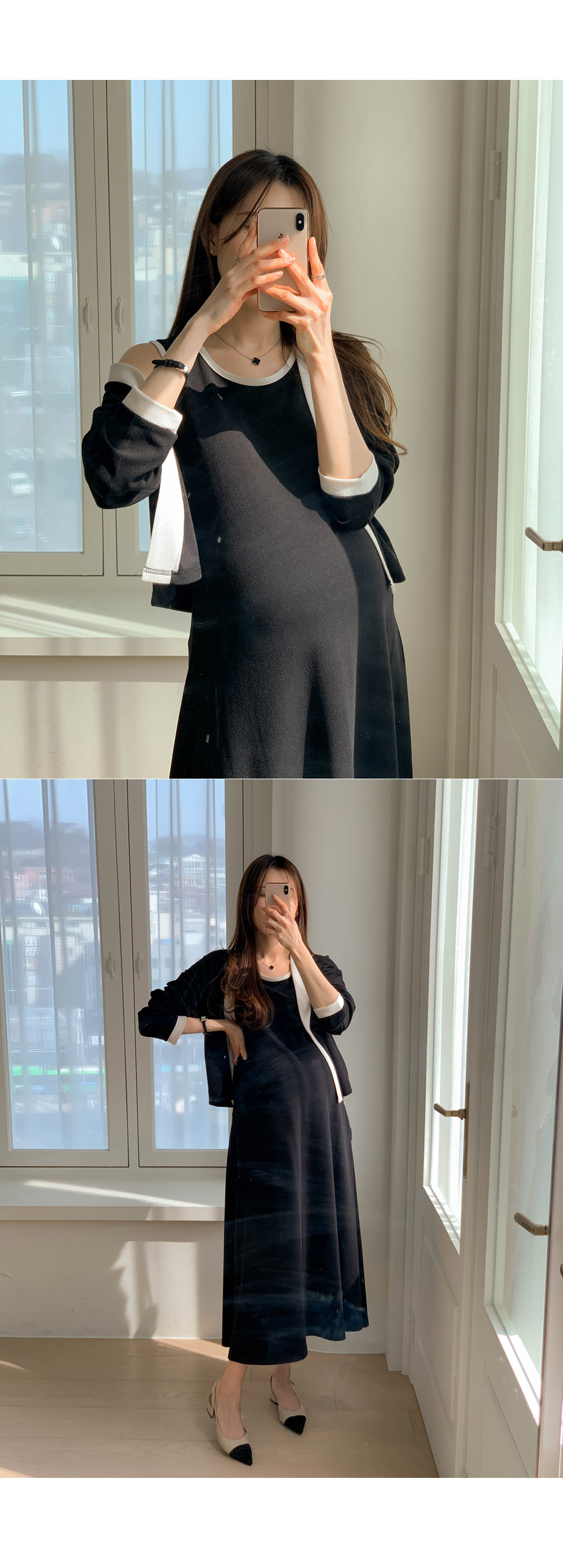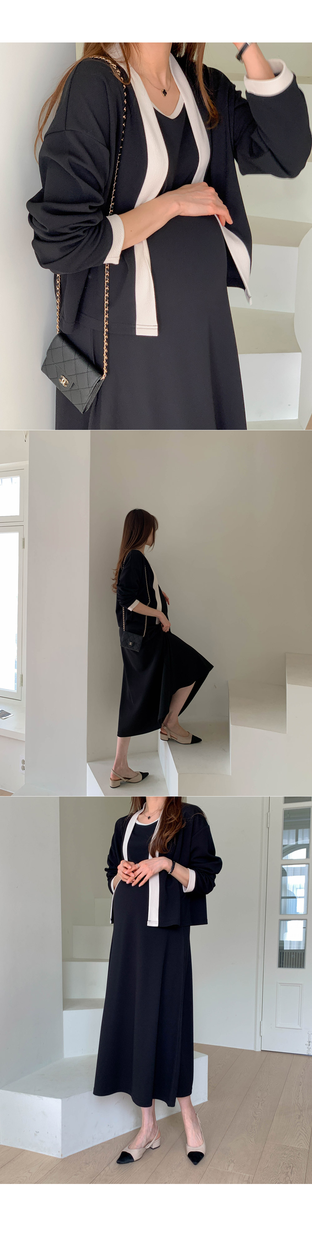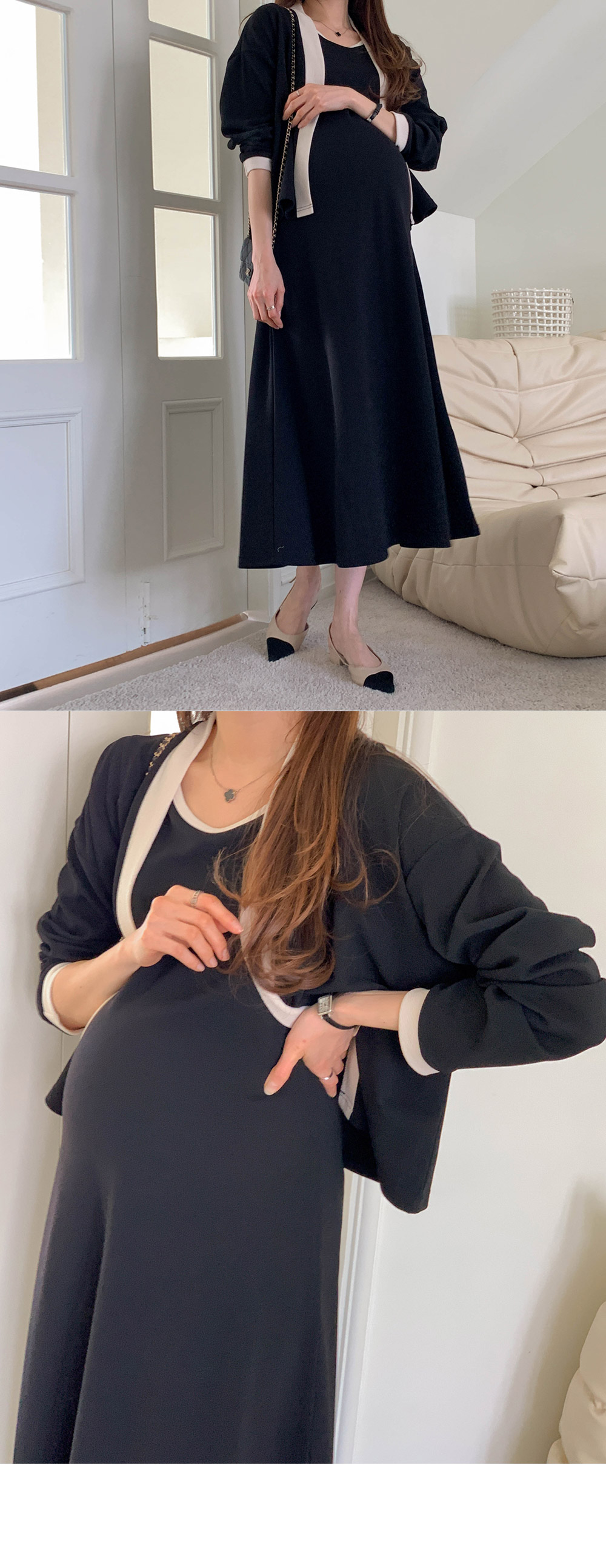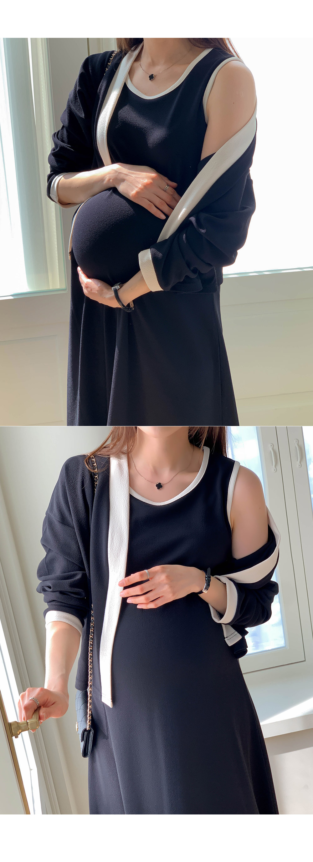 Maternity*Morris One Piece Color Block Cardigan Set)