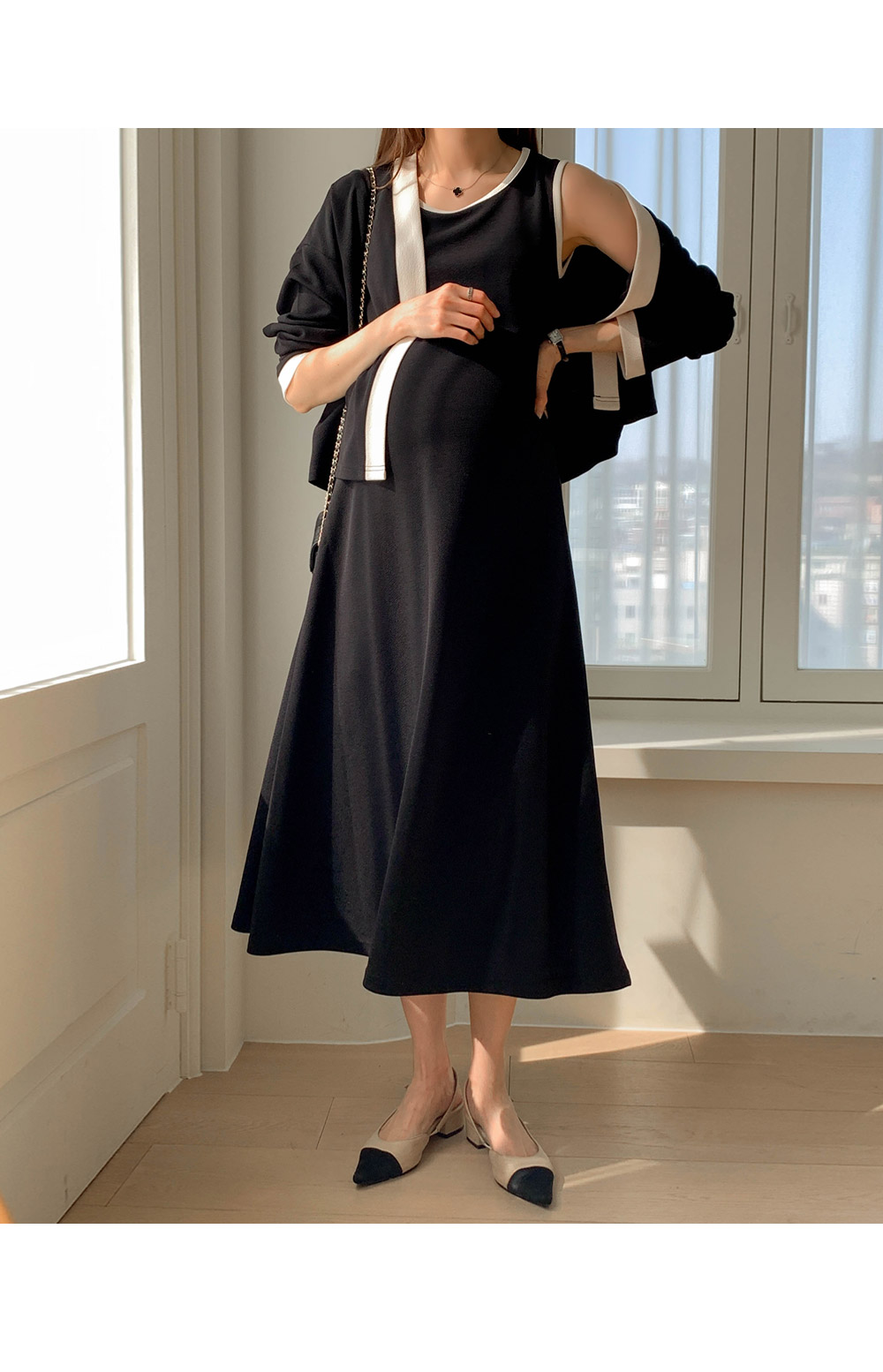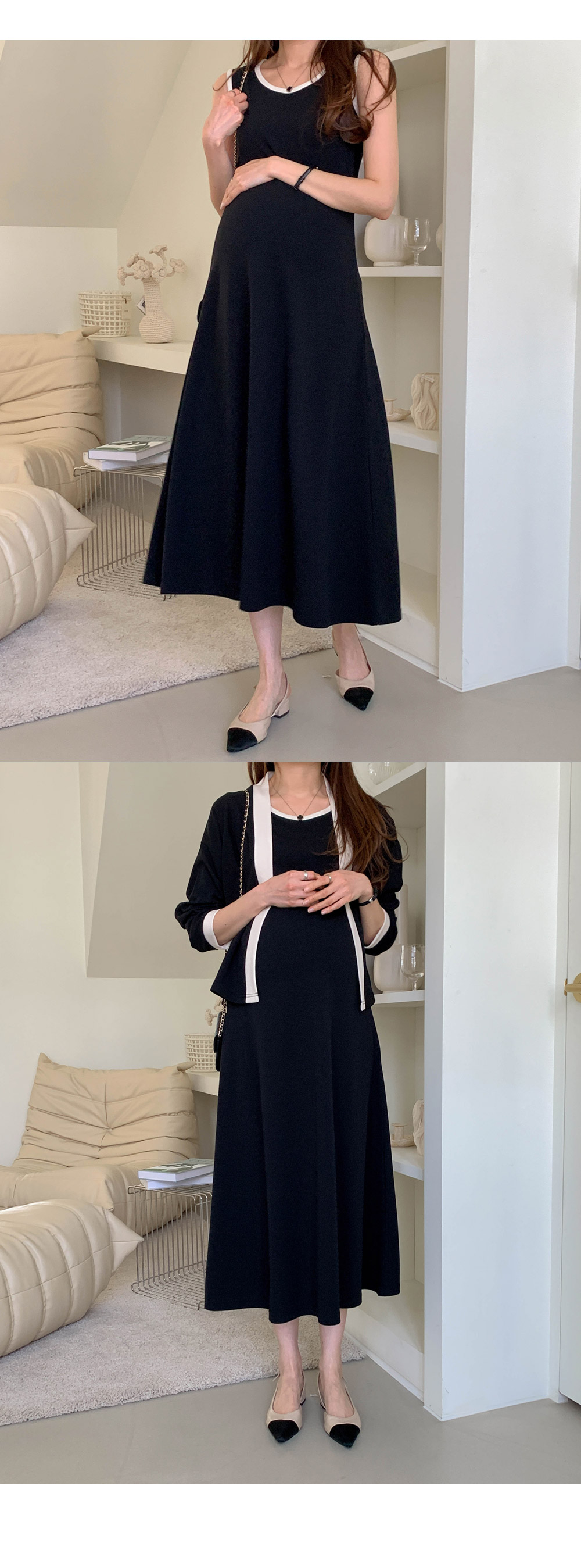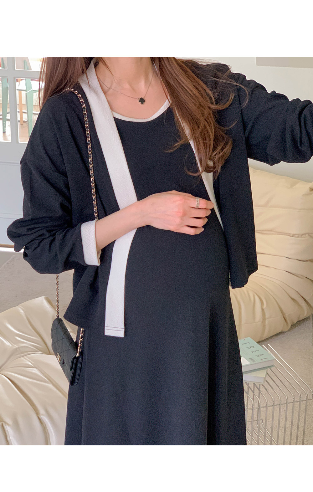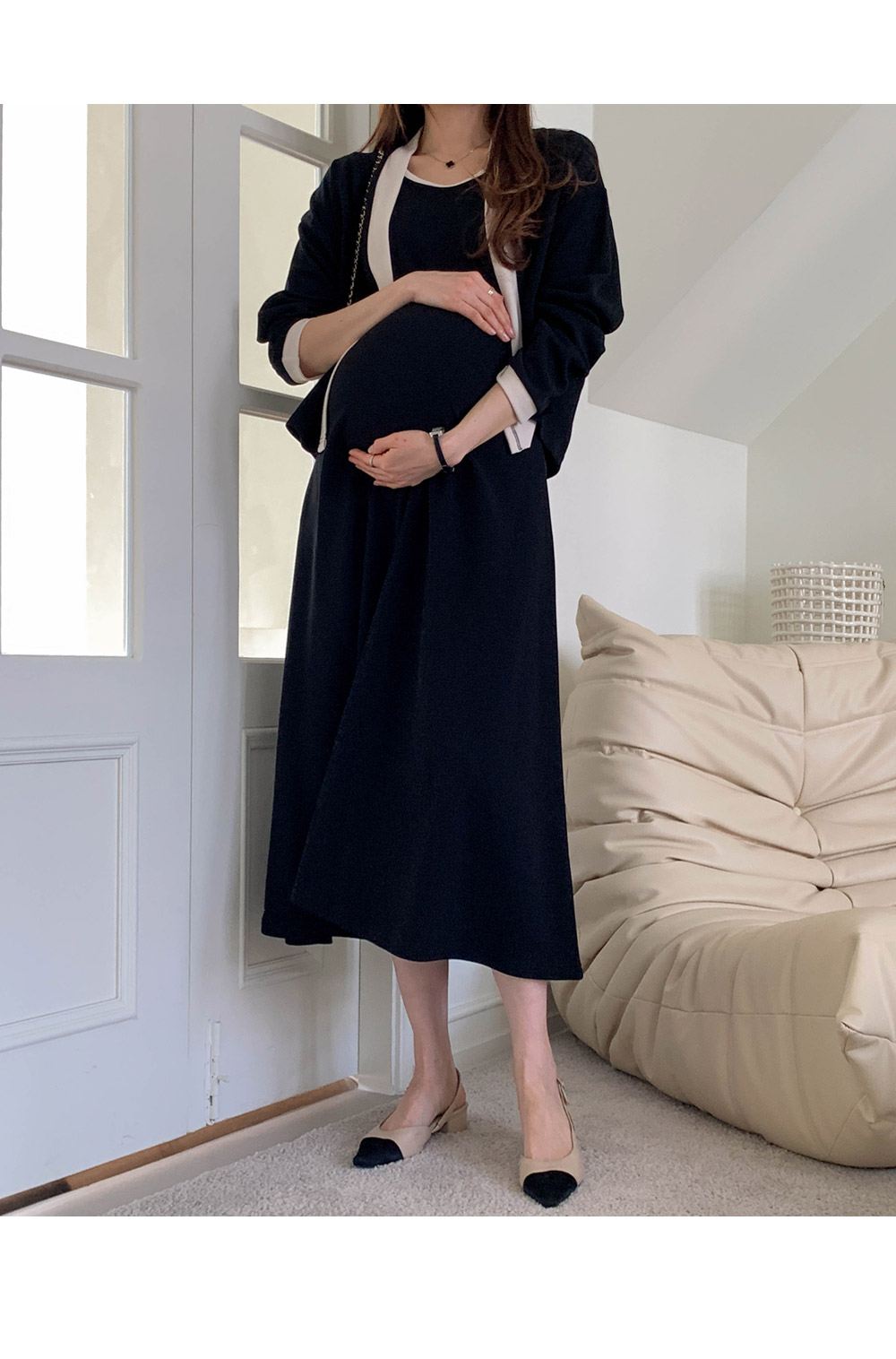 Maternity*Morris One Piece Color Block Cardigan Set)