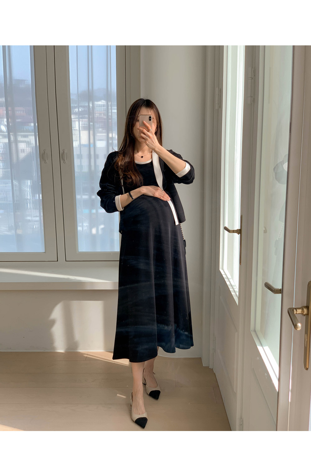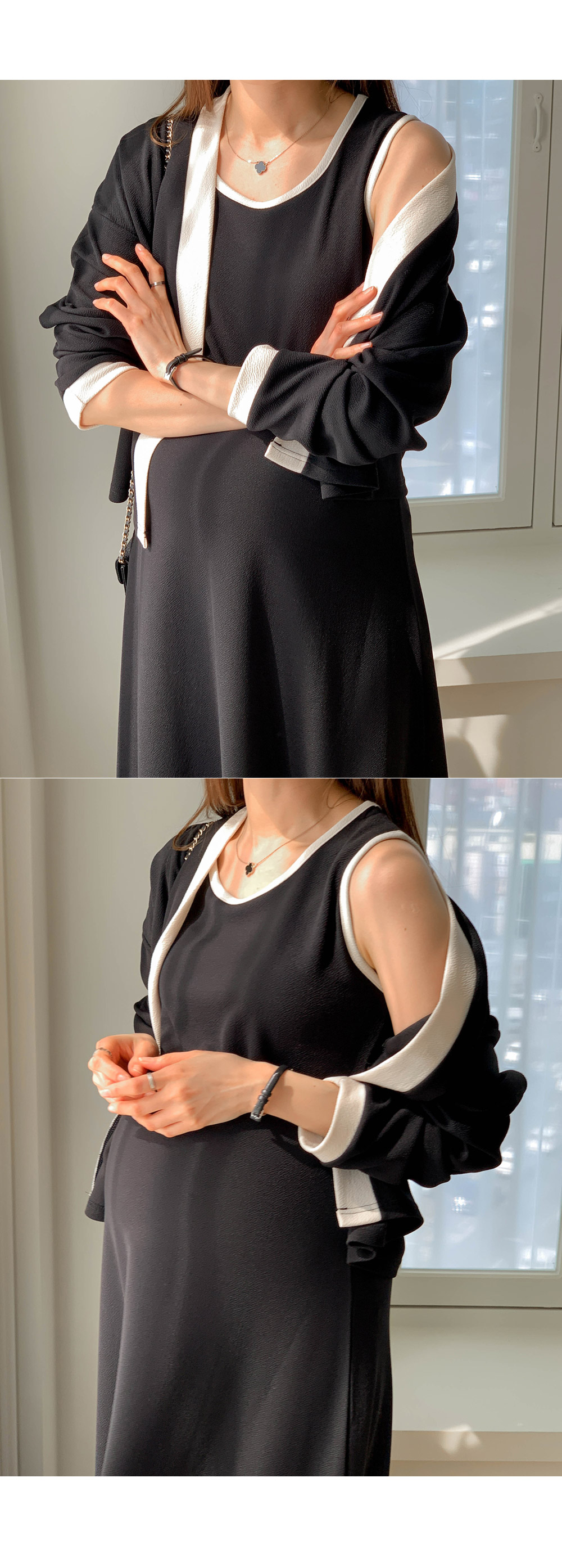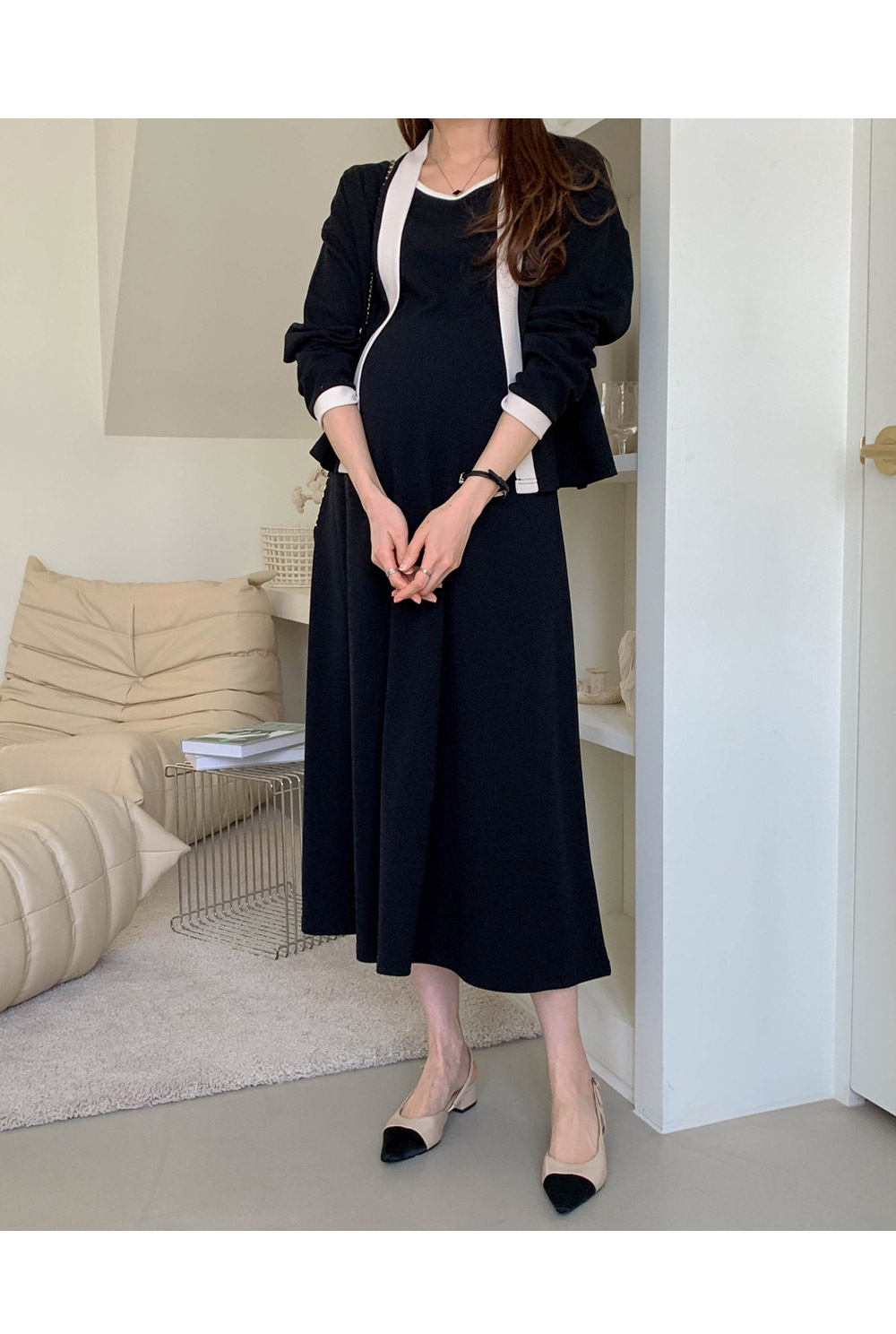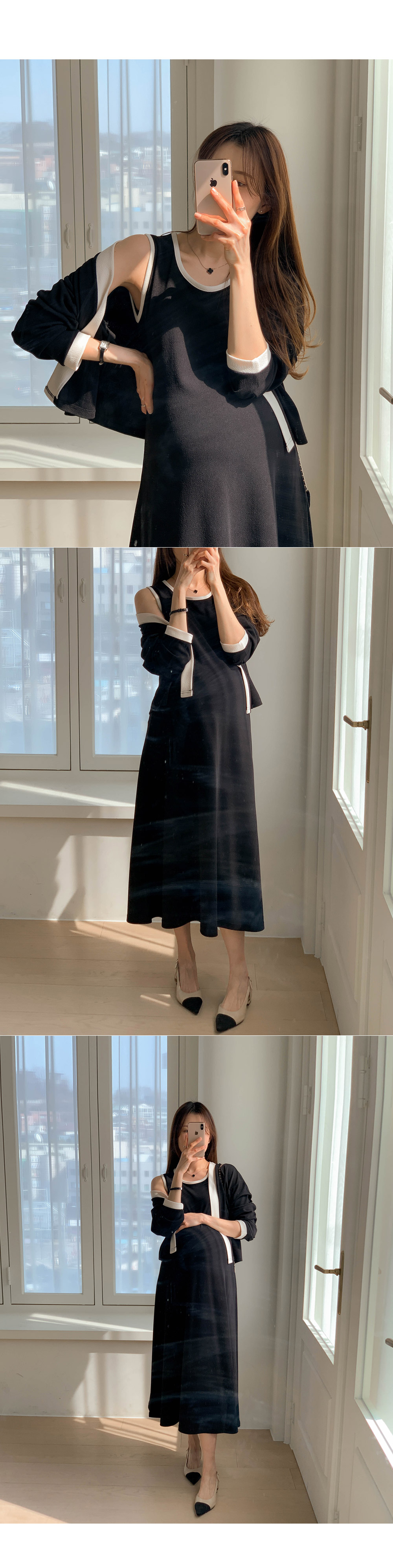 Maternity*Morris One Piece Color Block Cardigan Set)