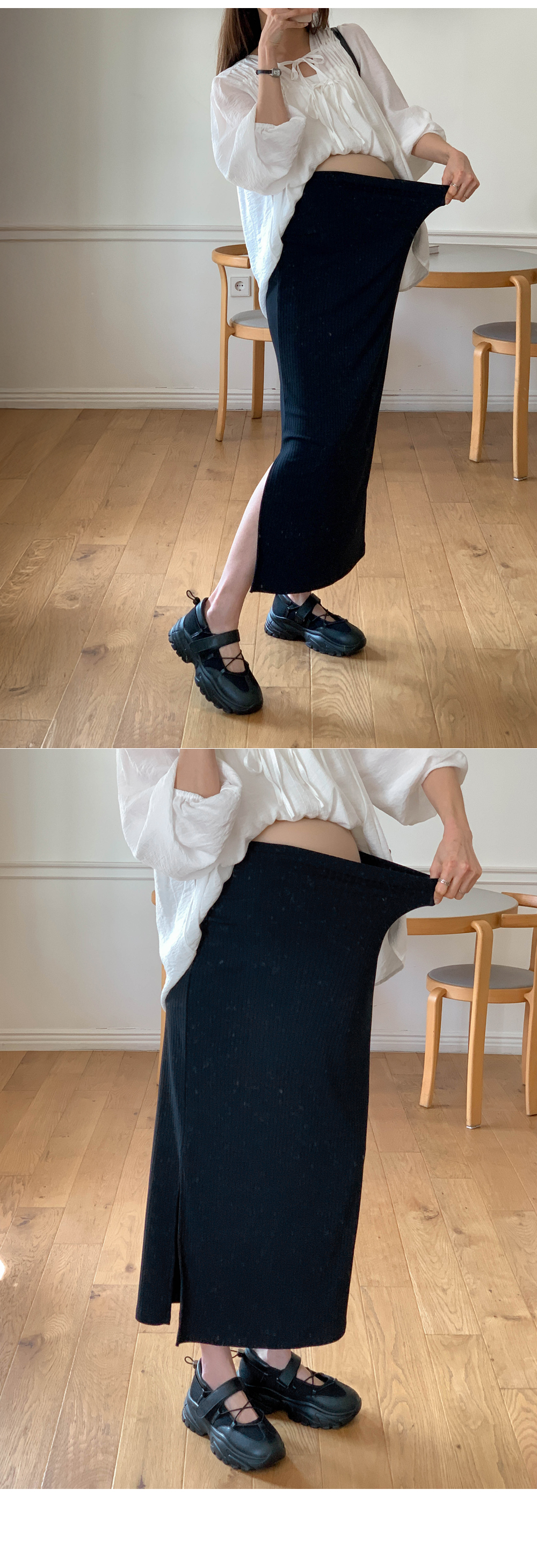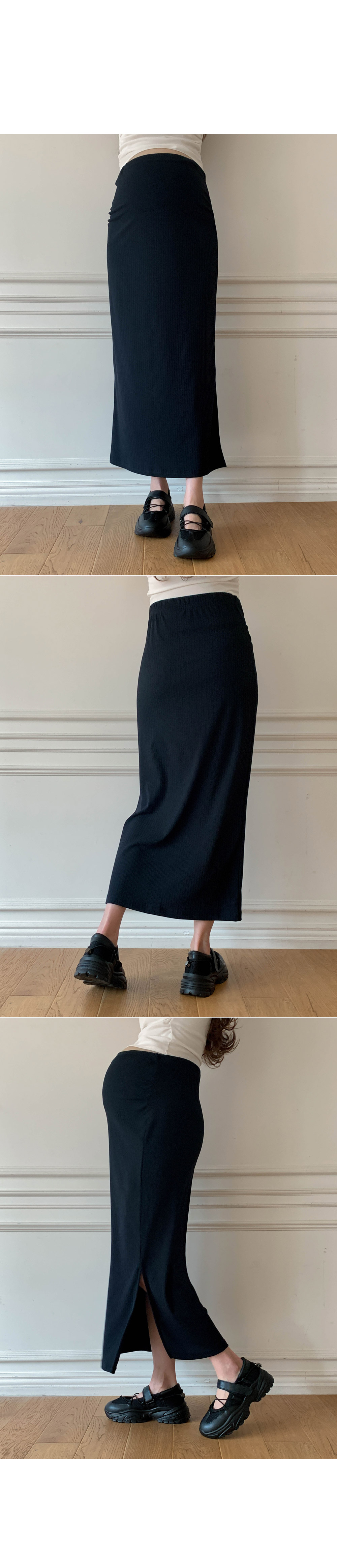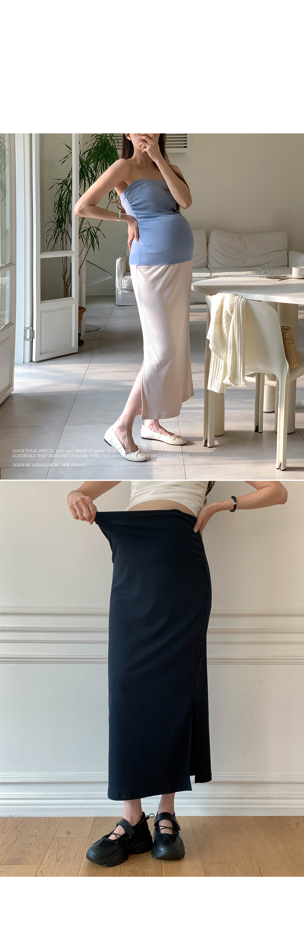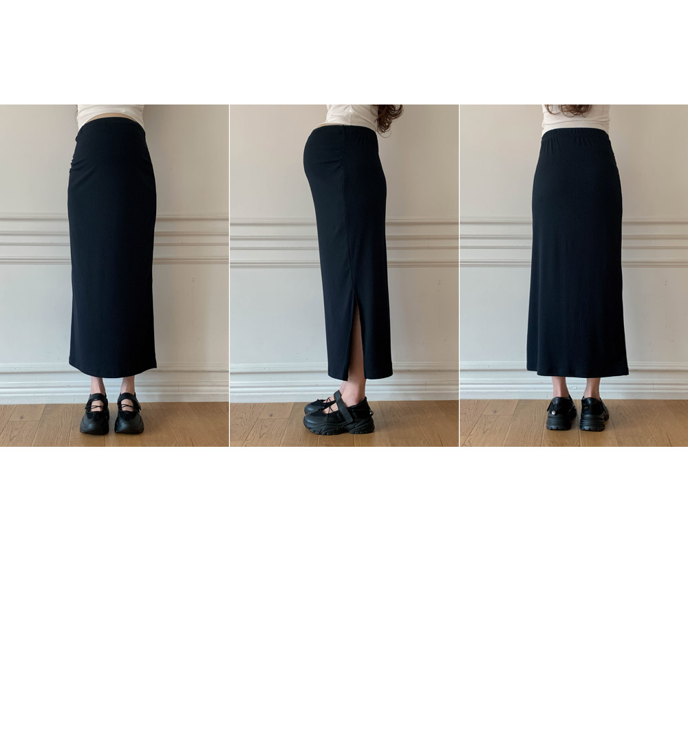 Maternity*Allen ribbed side slit rong skirt)
