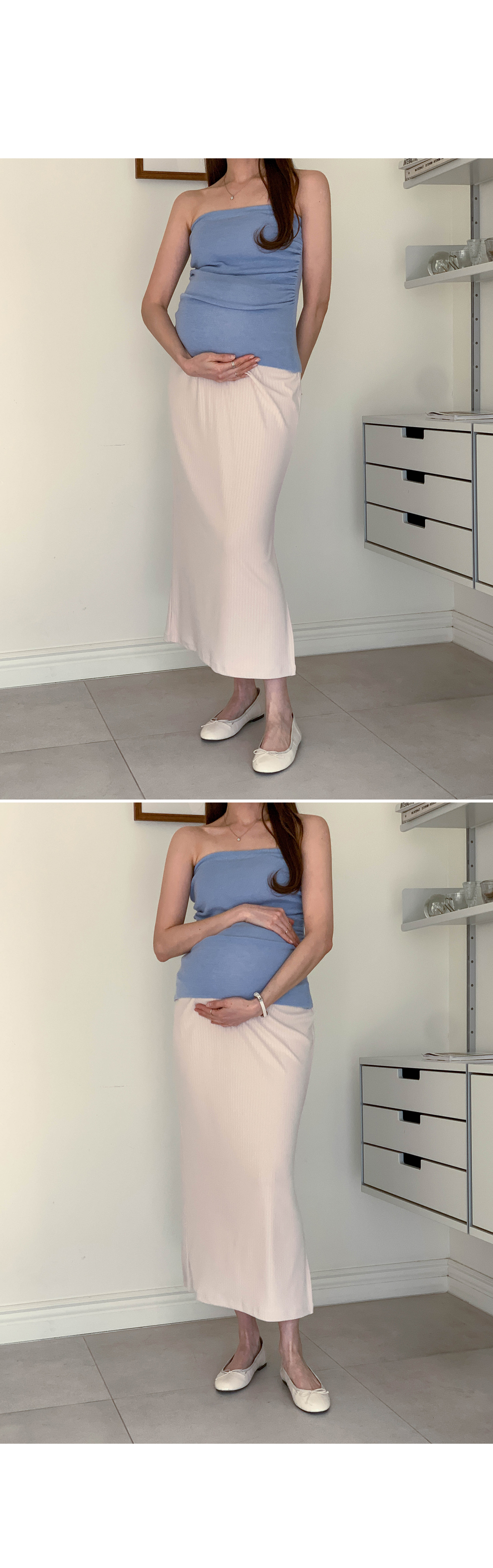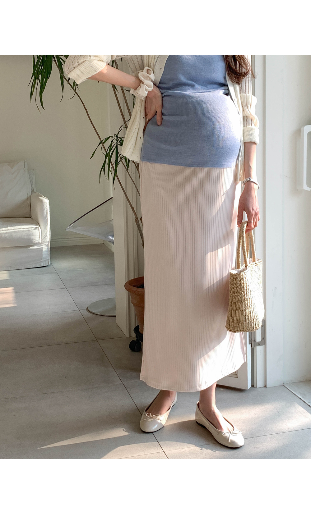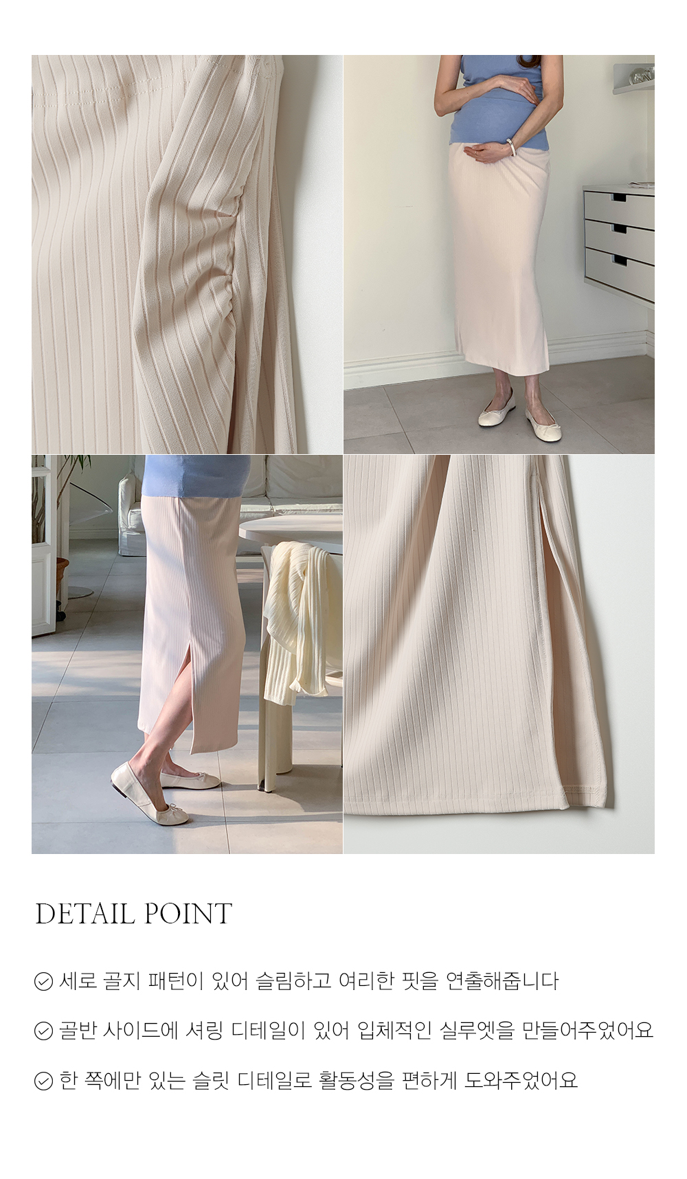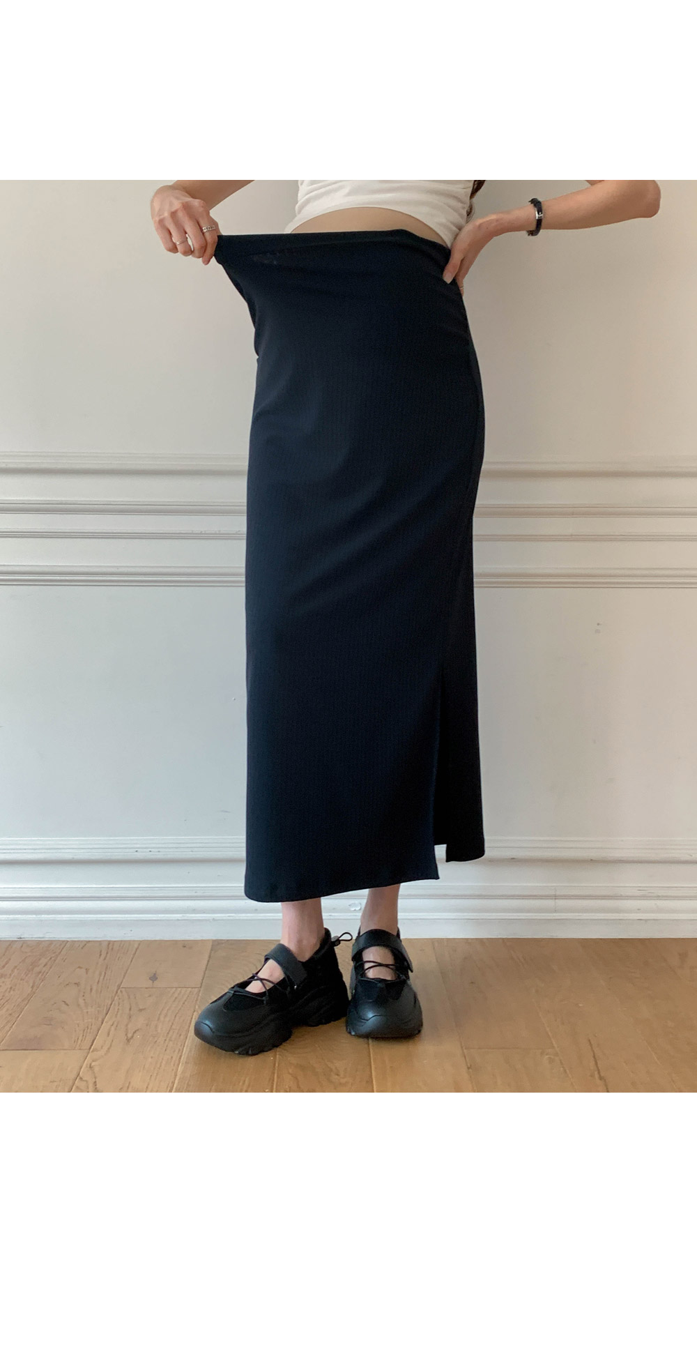 Maternity*Allen ribbed side slit rong skirt)