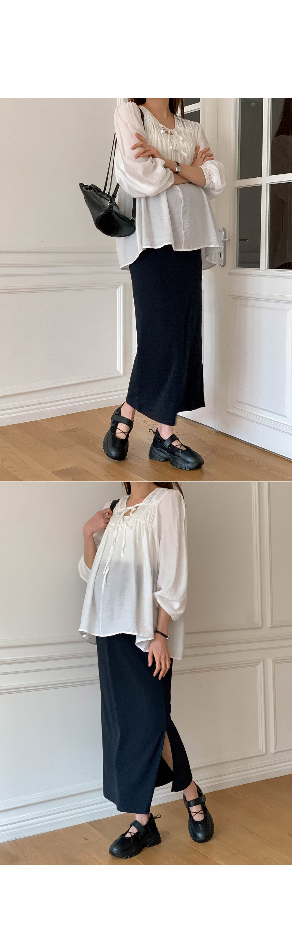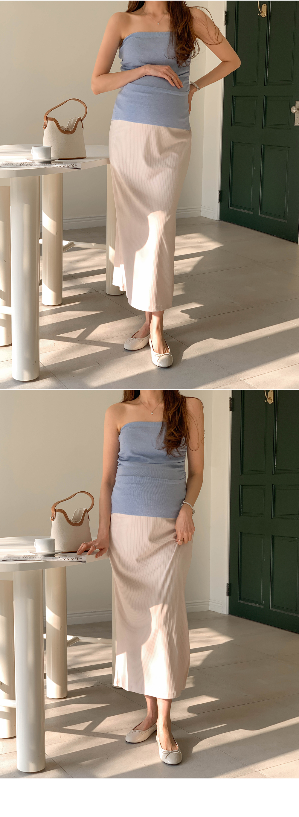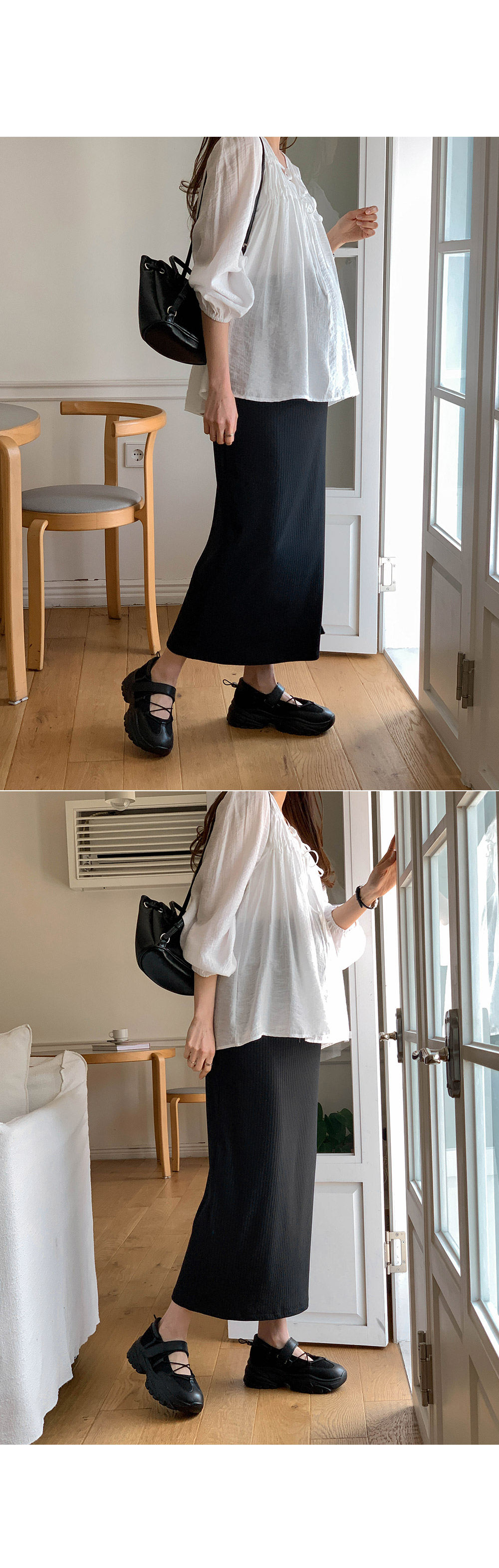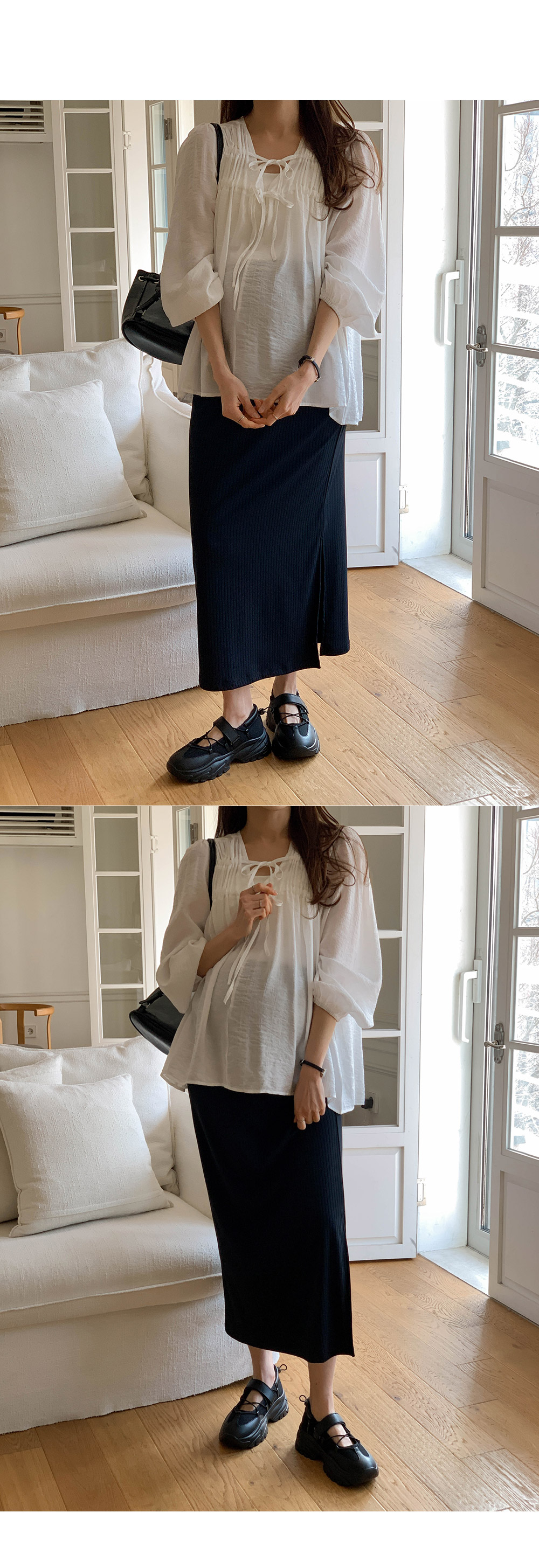 Maternity*Allen ribbed side slit rong skirt)