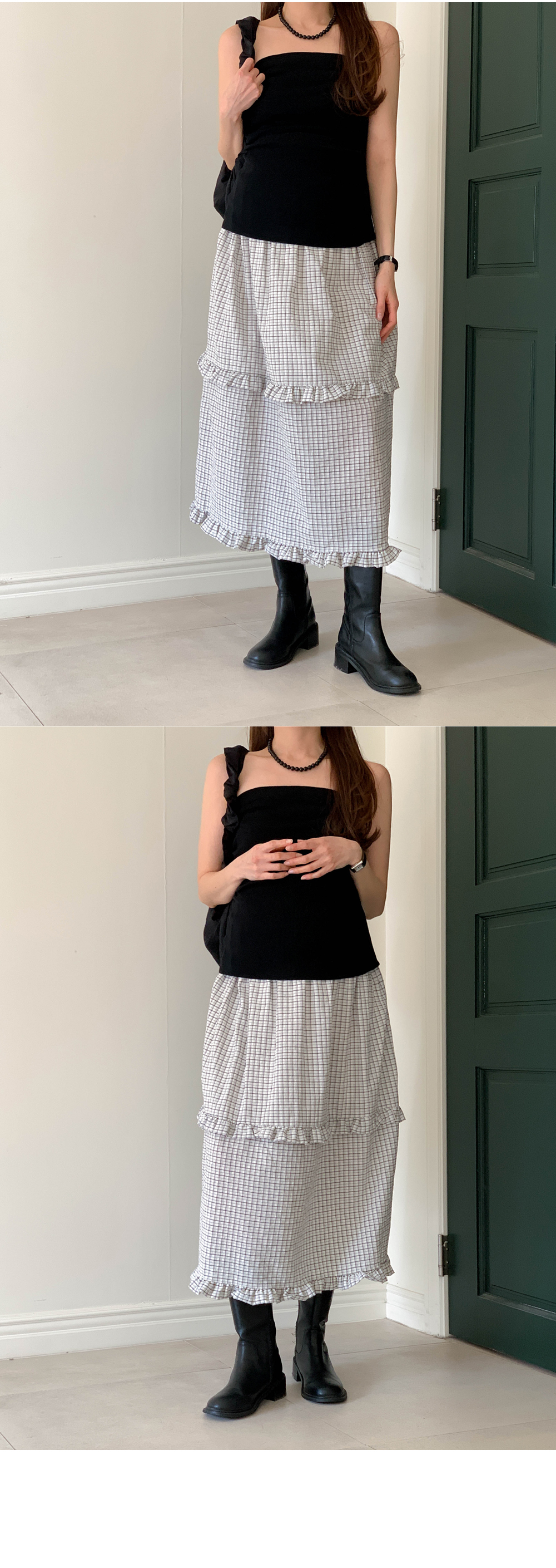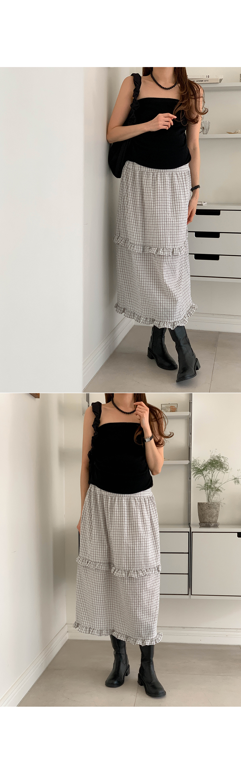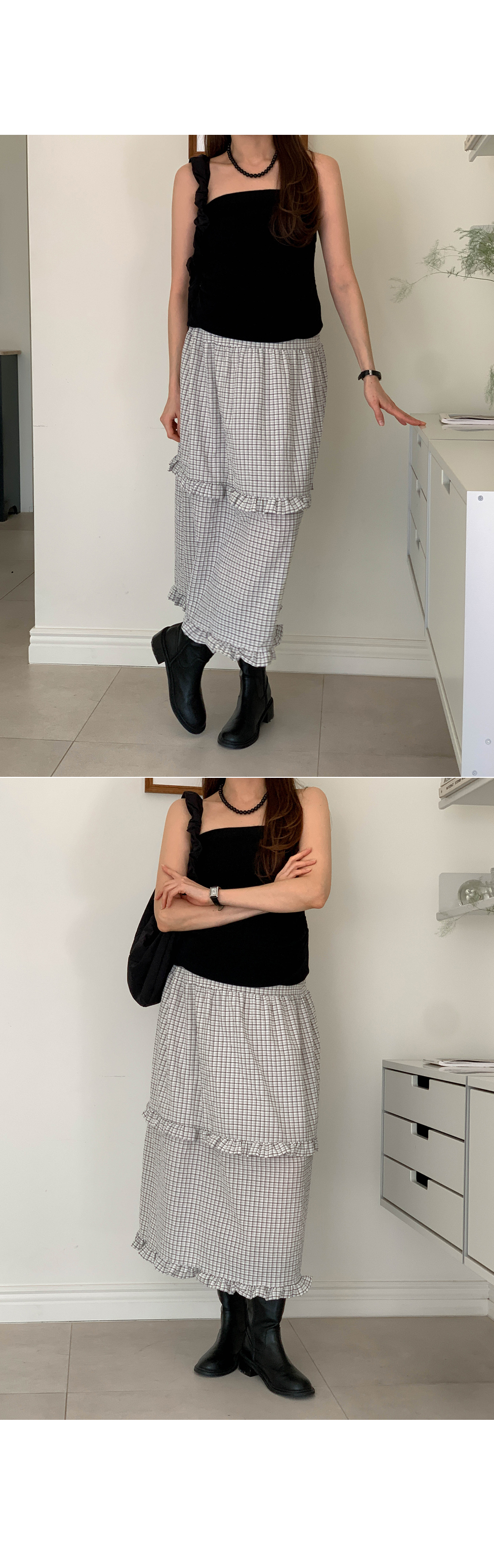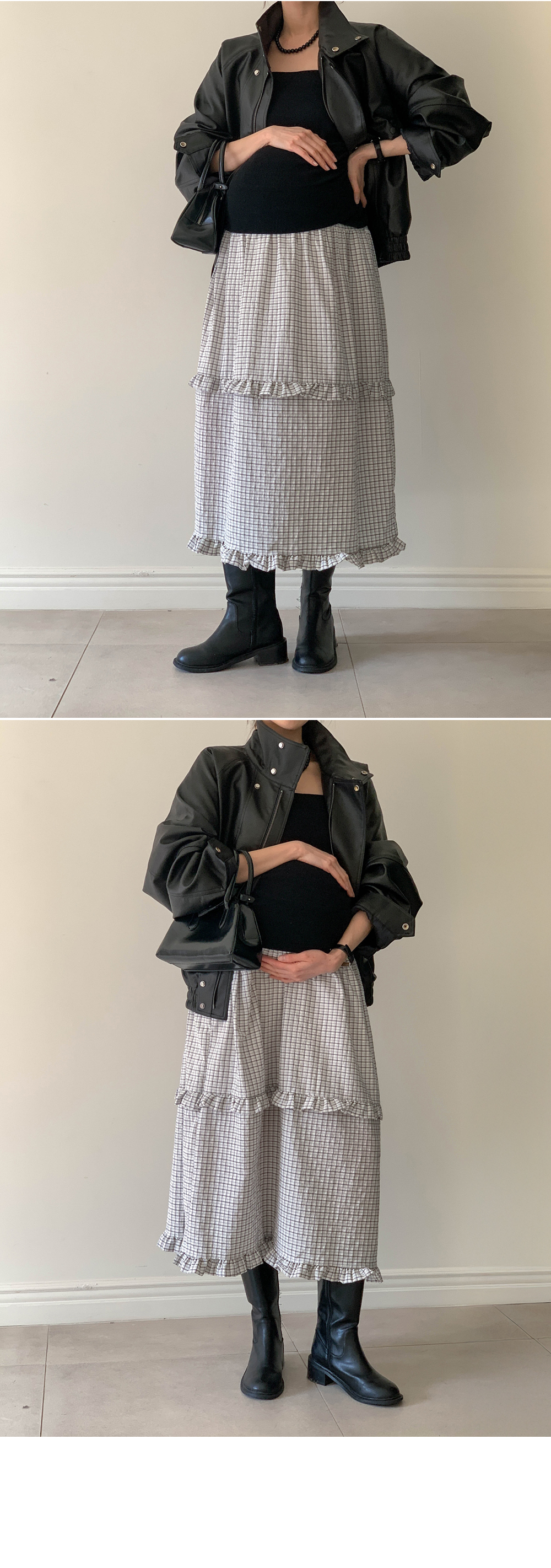 Maternity*Woody check two-tier frill rong skirt