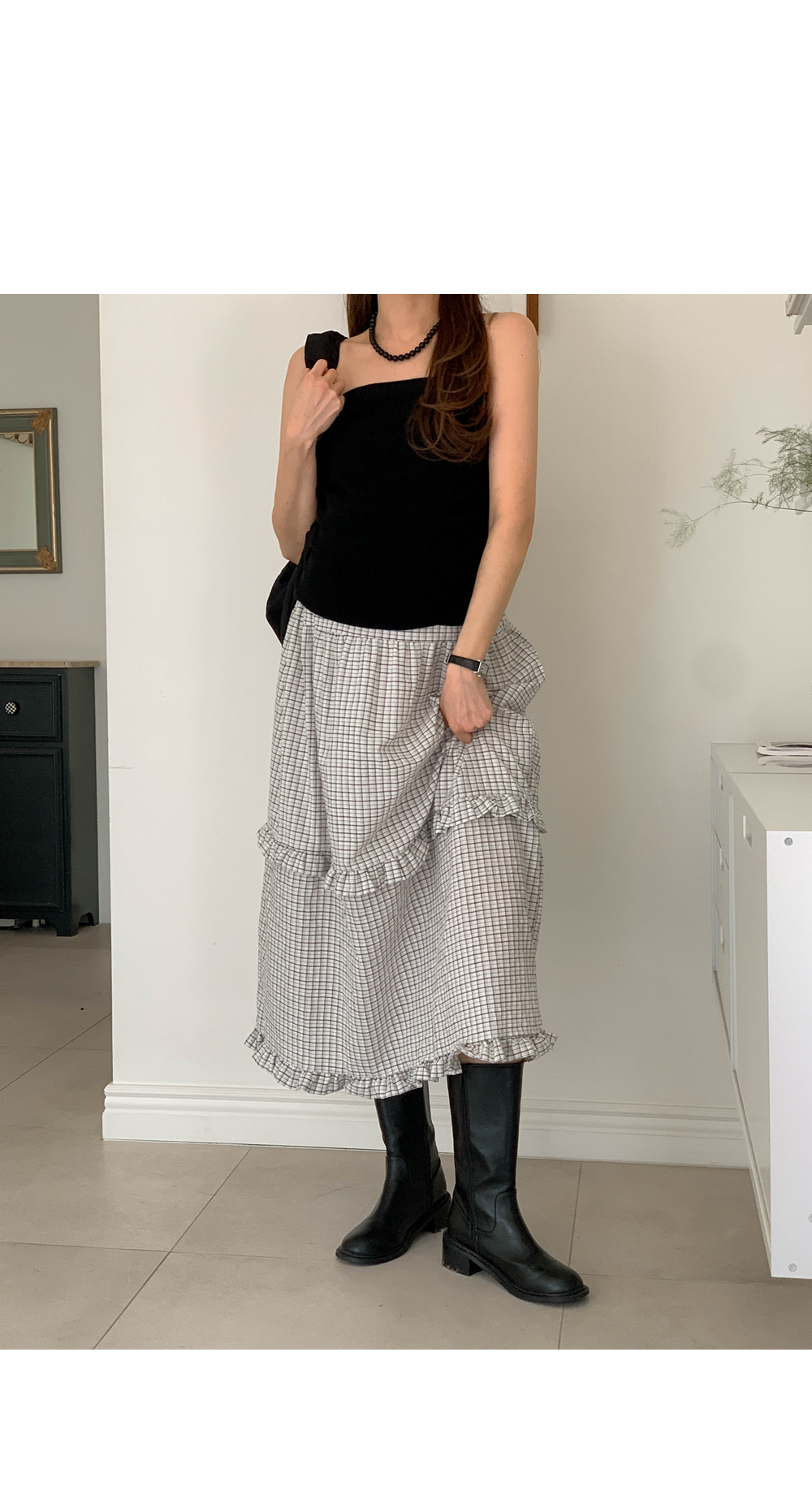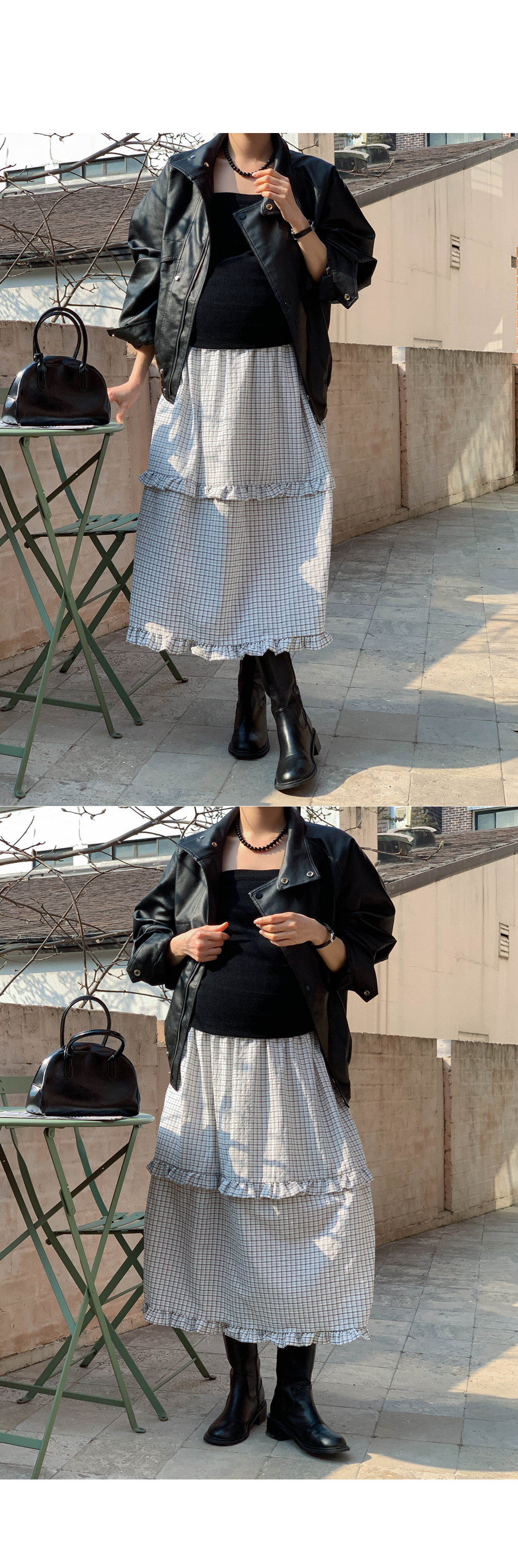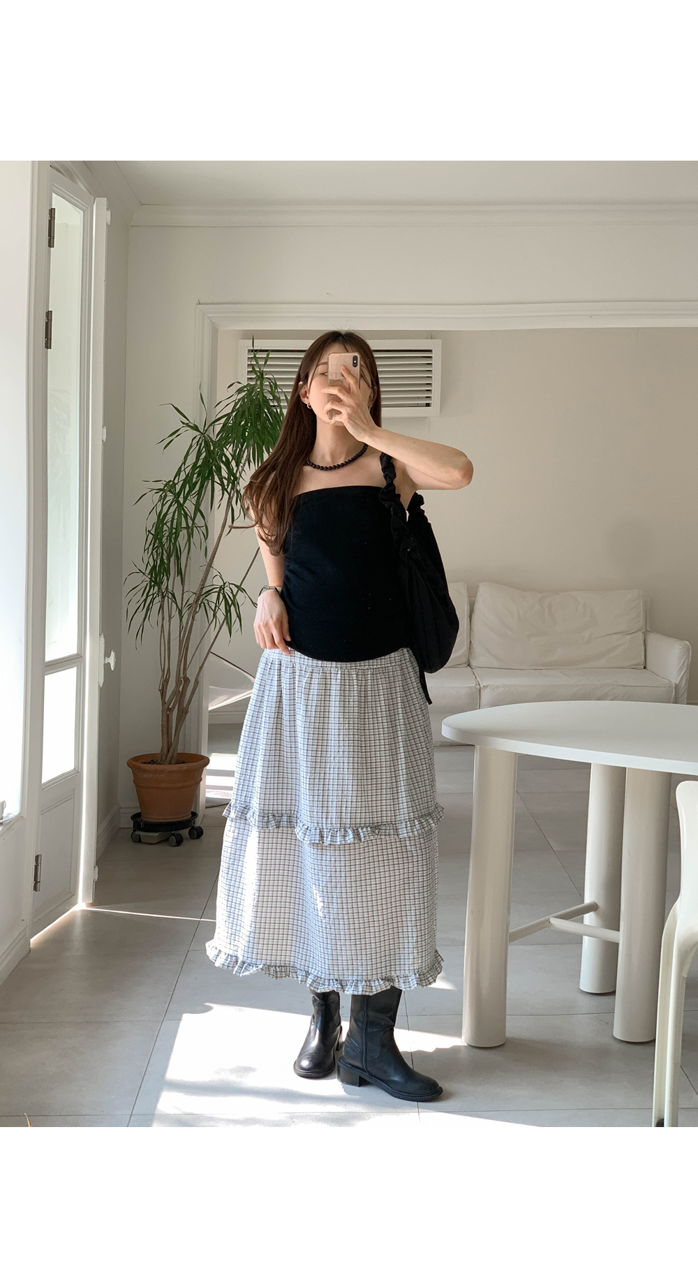 Maternity*Woody check two-tier frill rong skirt