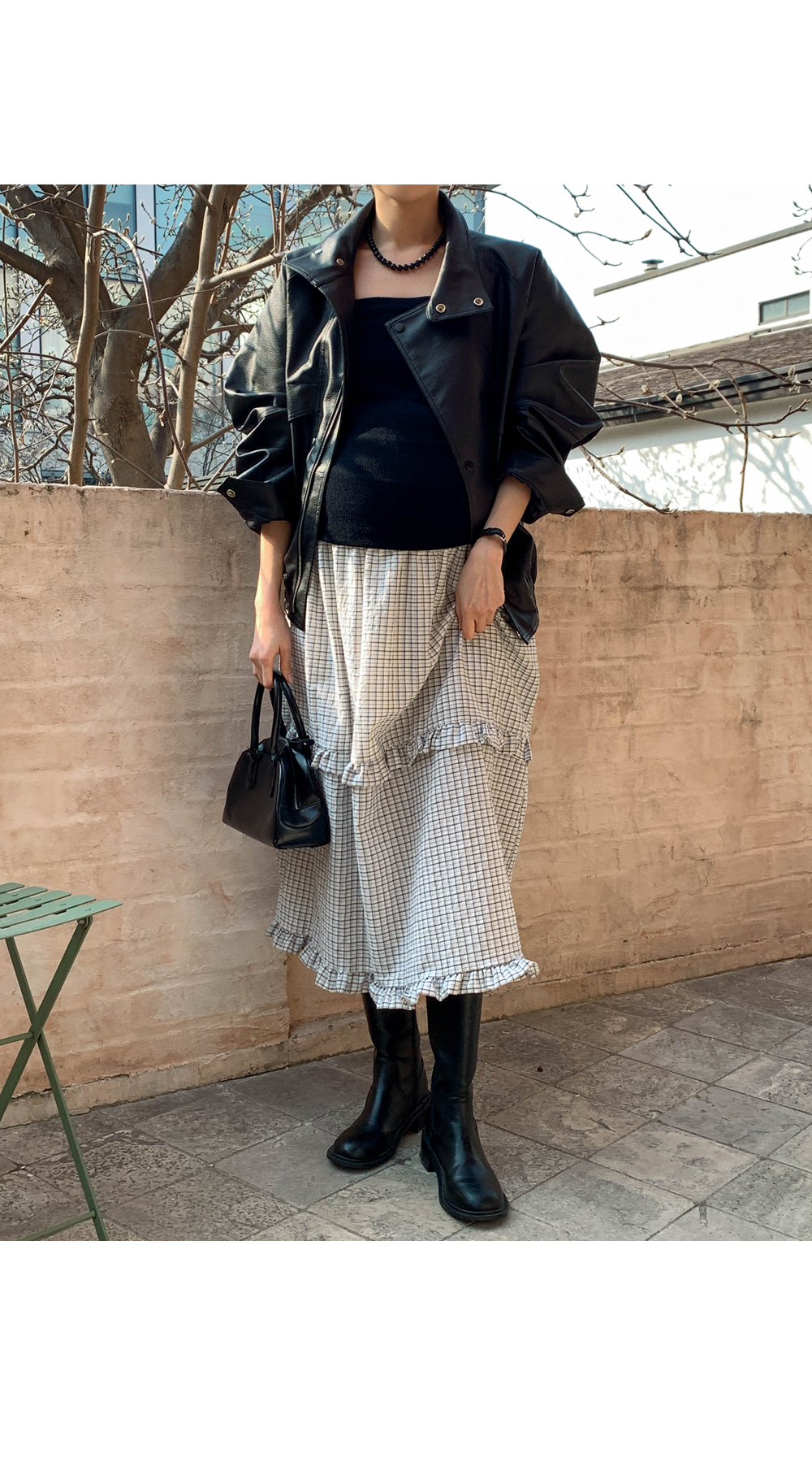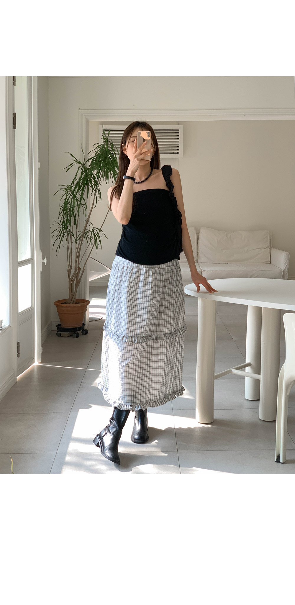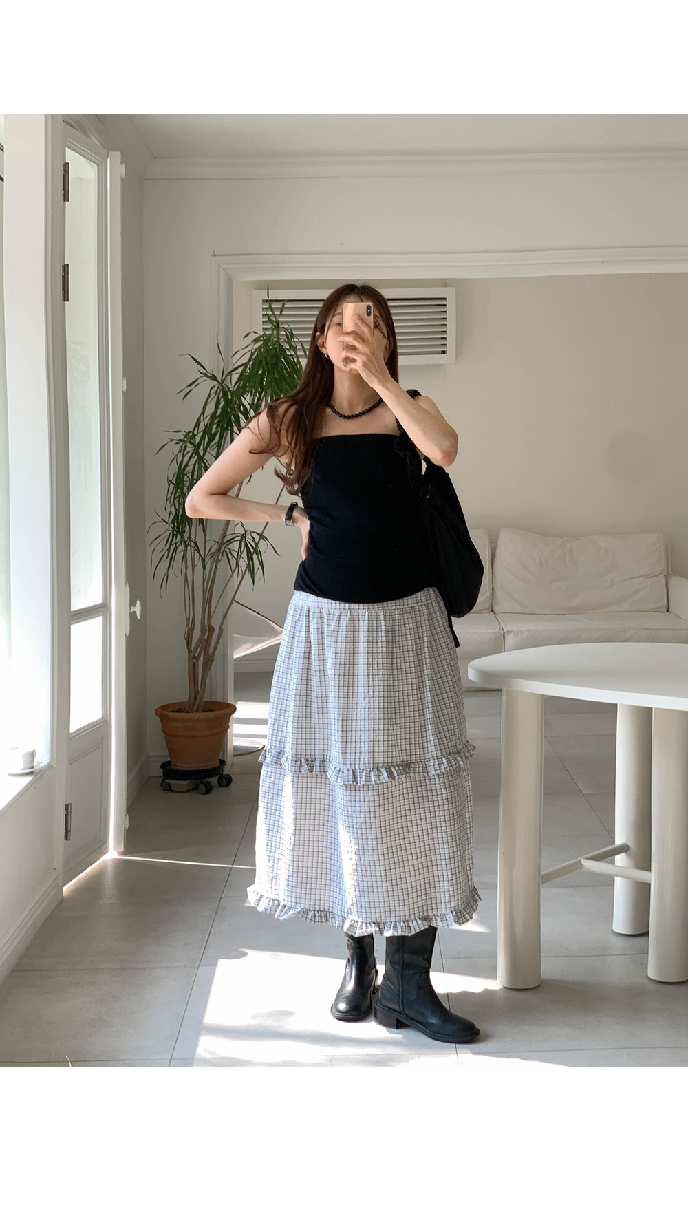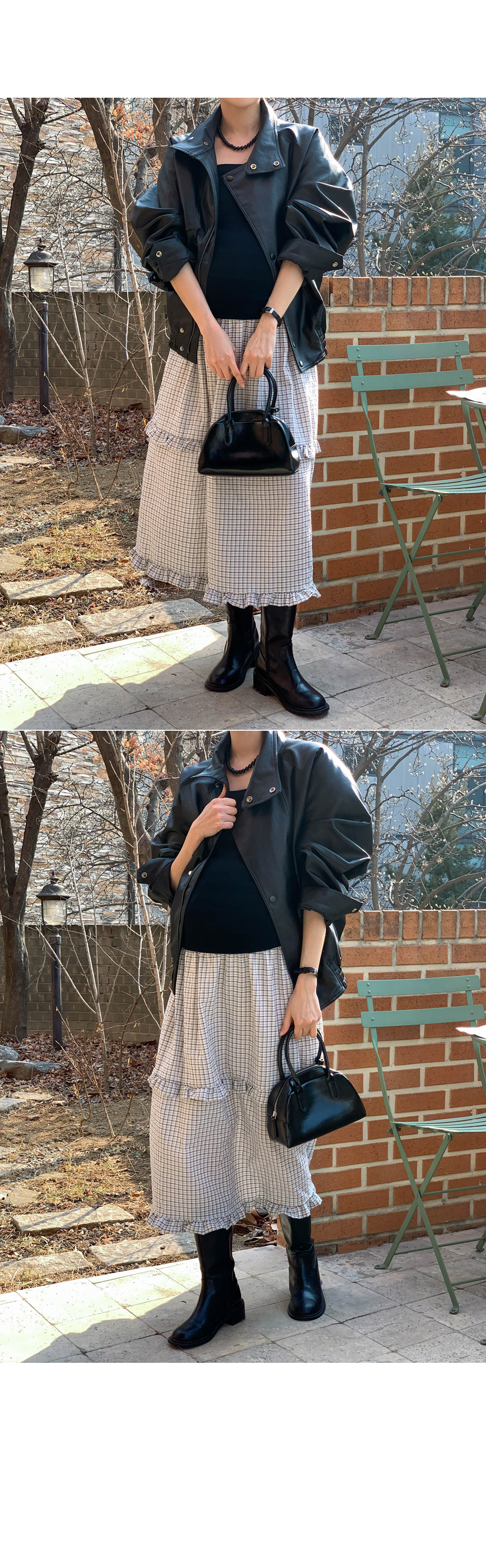 Maternity*Woody check two-tier frill rong skirt