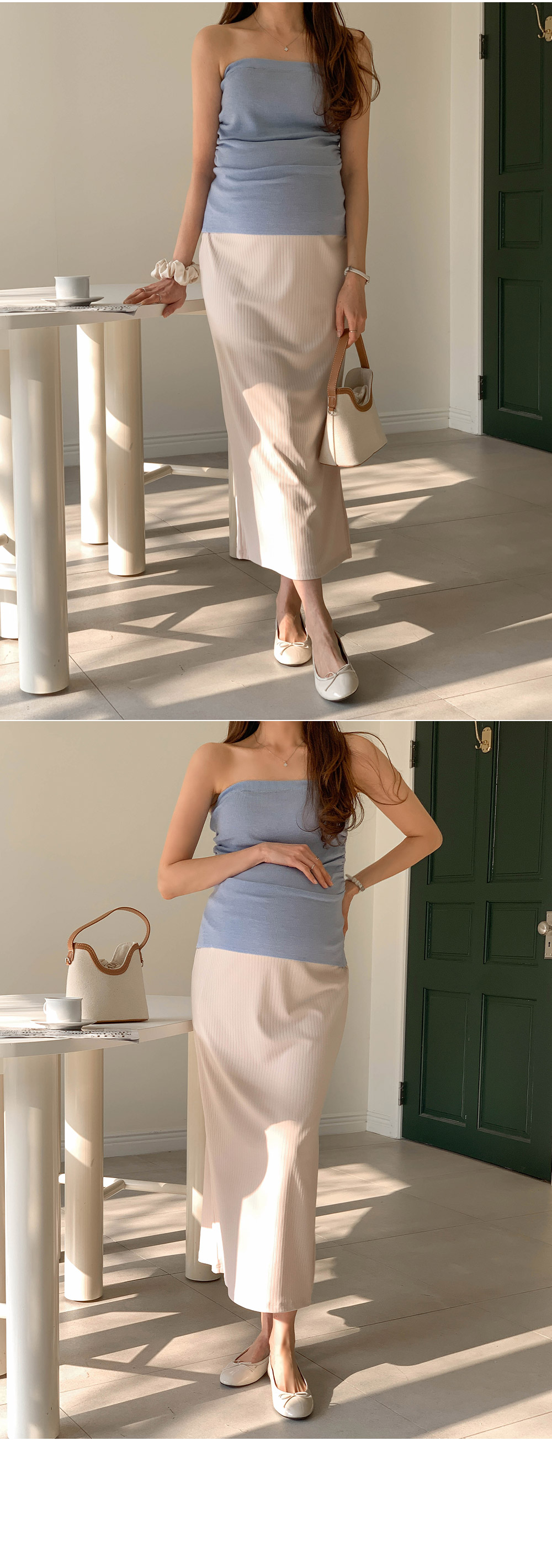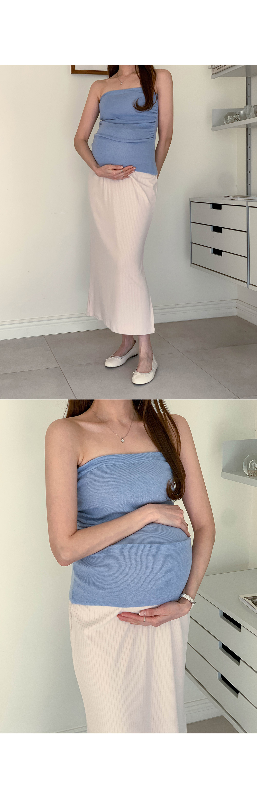 Maternity*Allen ribbed side slit rong skirt