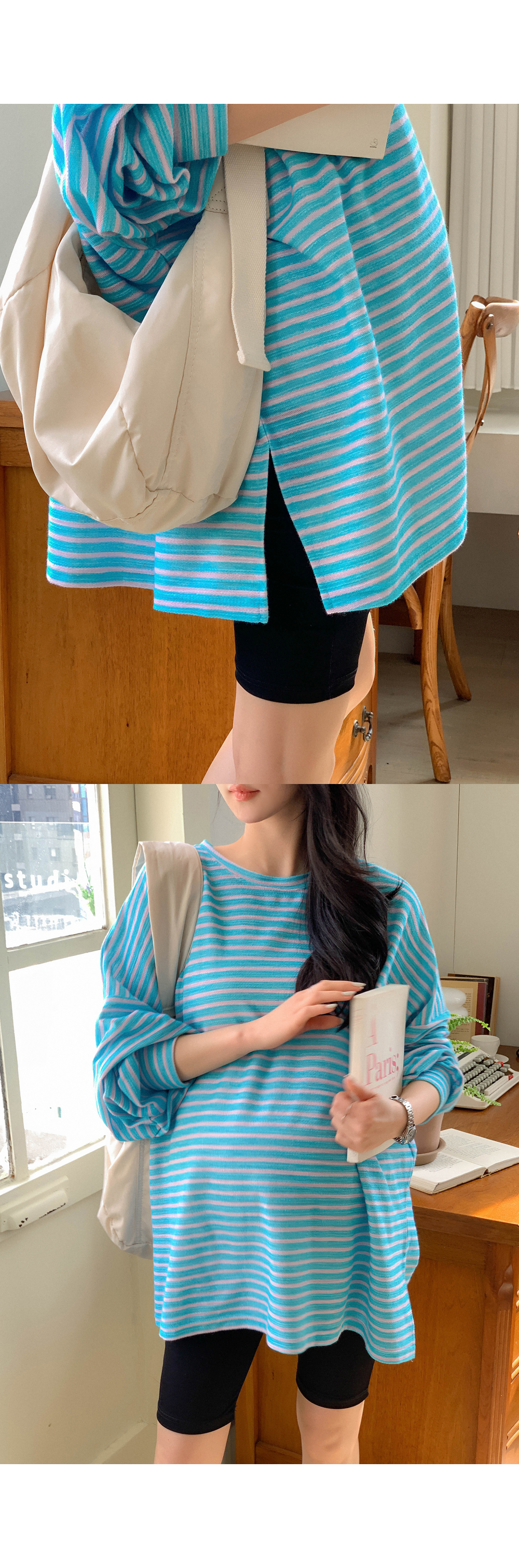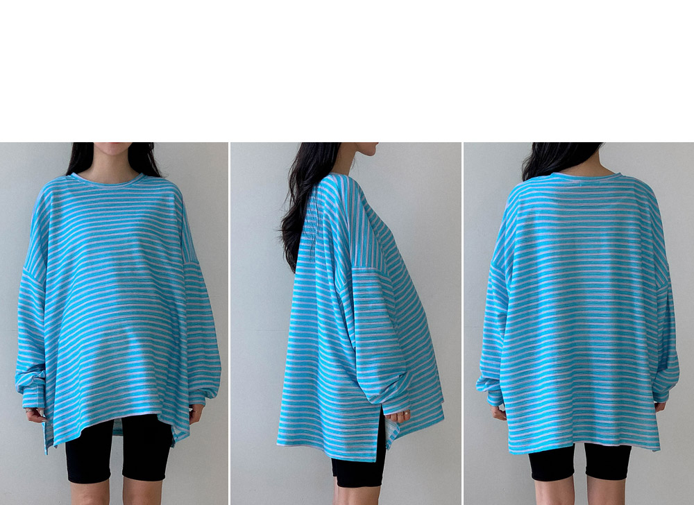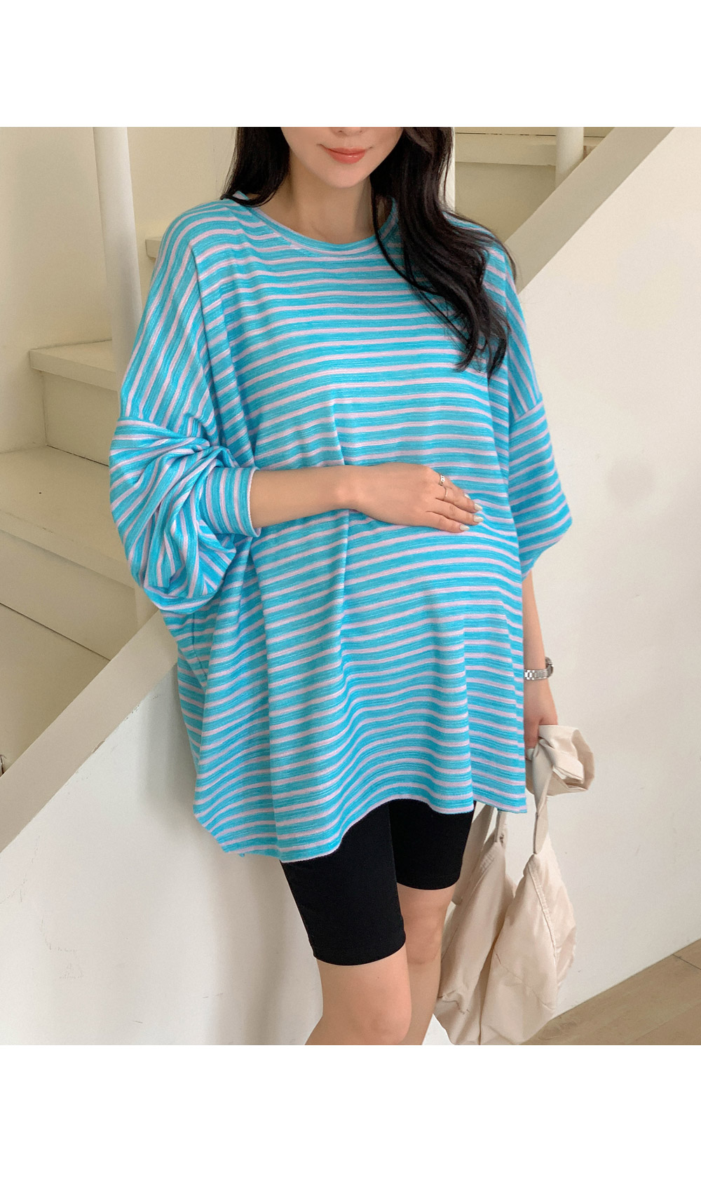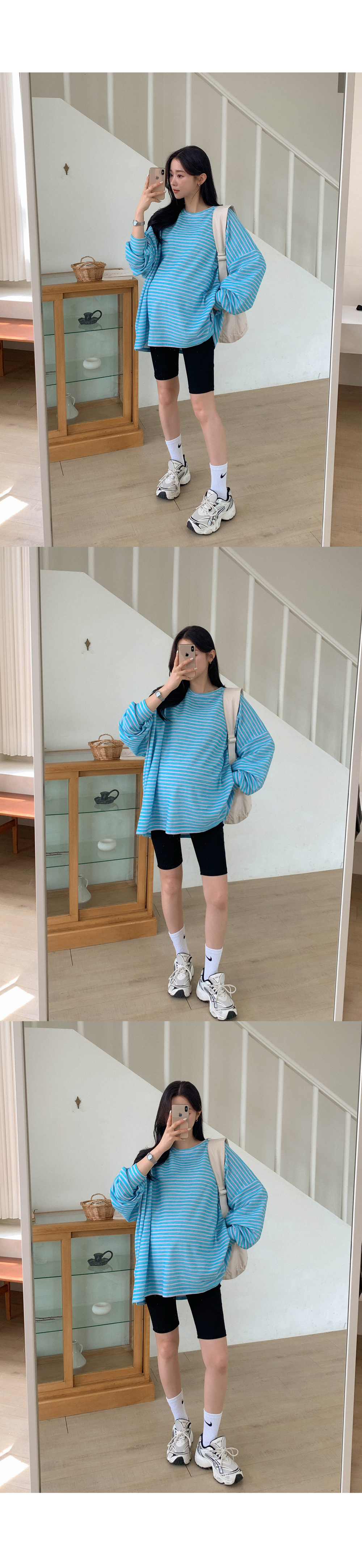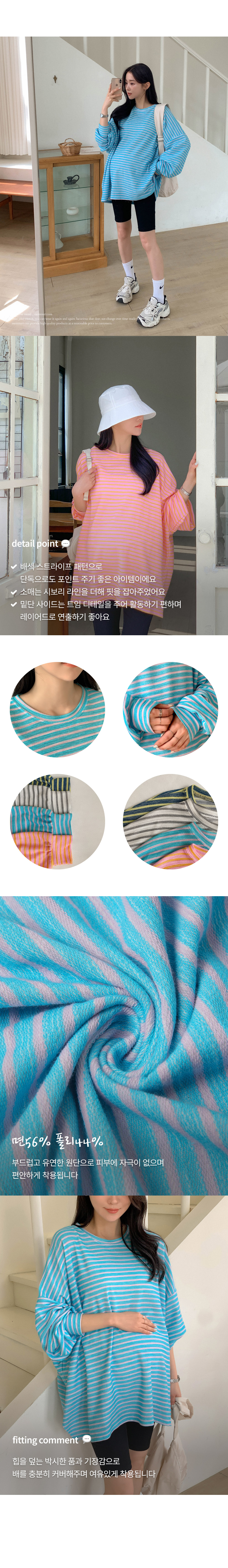 Maternity*Jelly Mix Striped Long Tee)