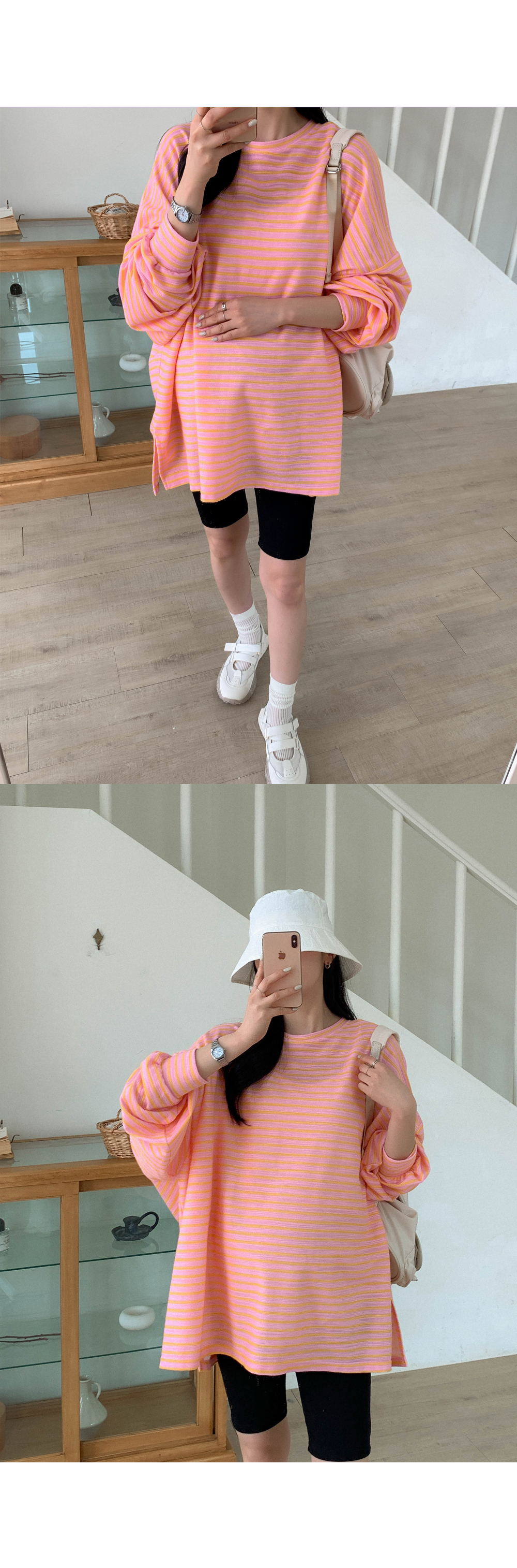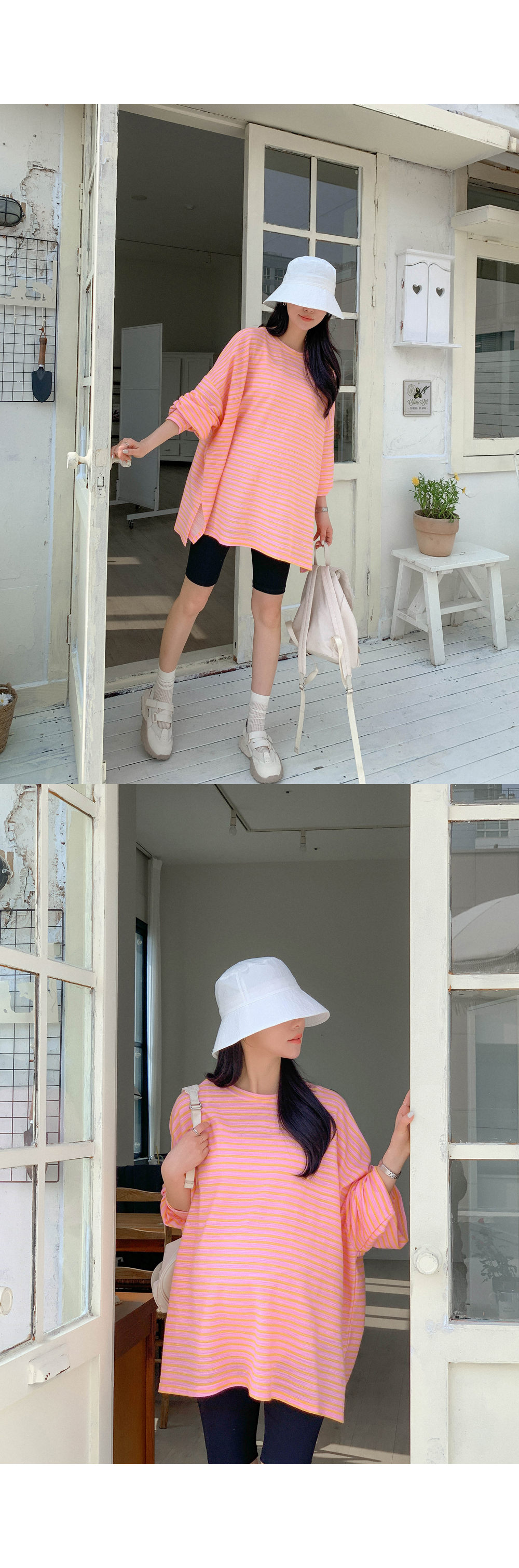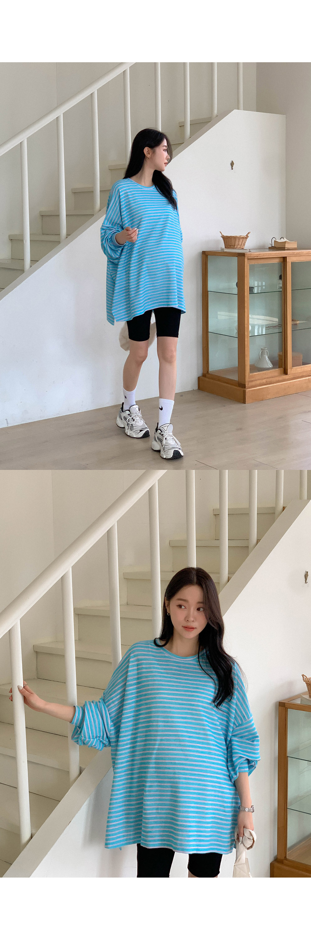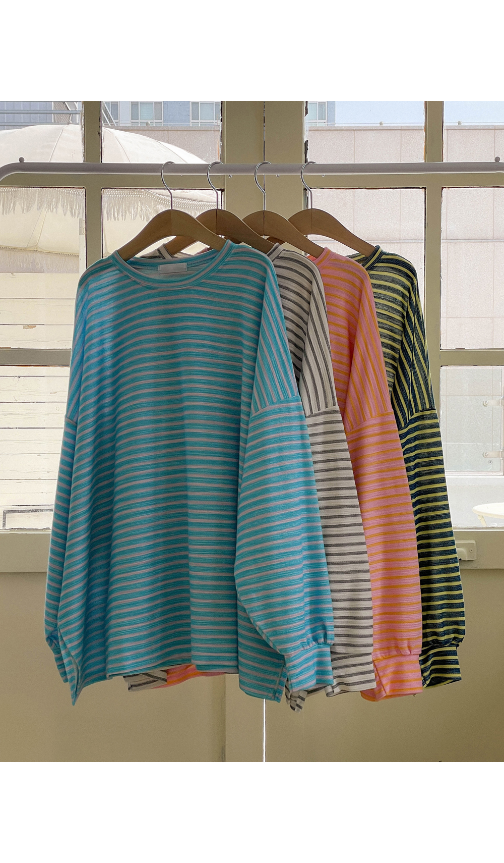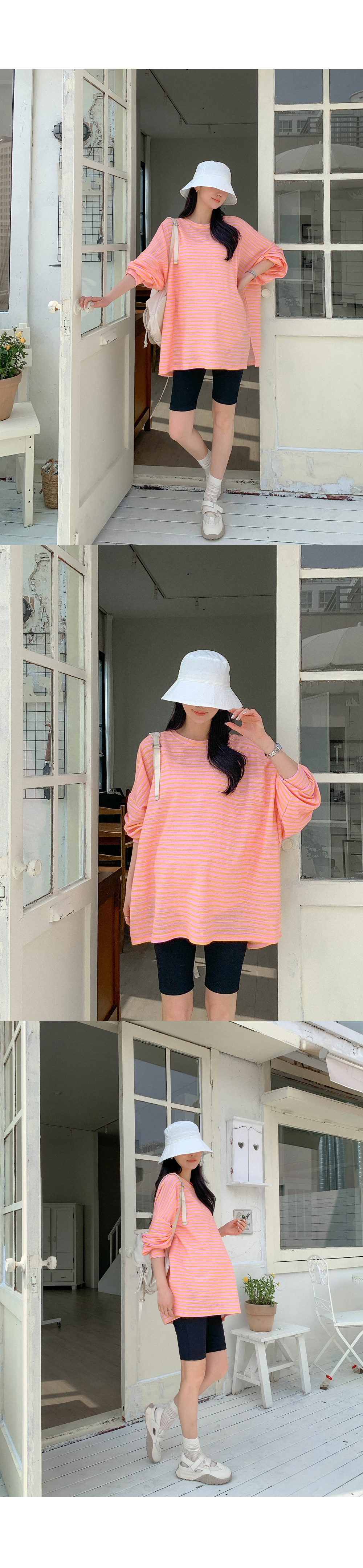 Maternity*Jelly Mix Striped Long Tee)