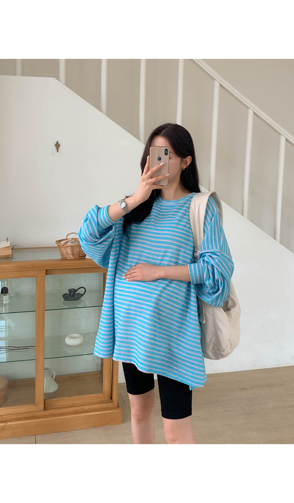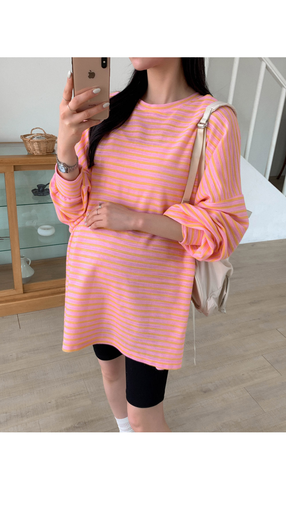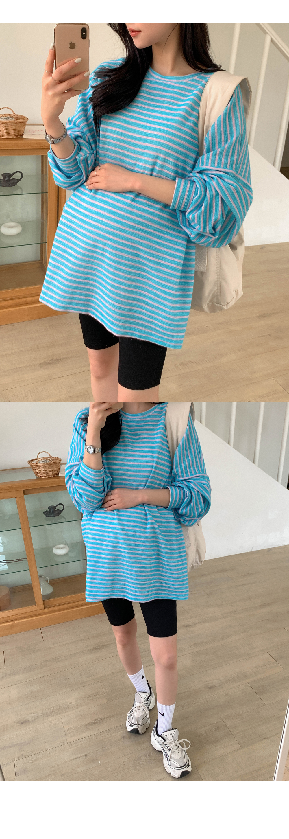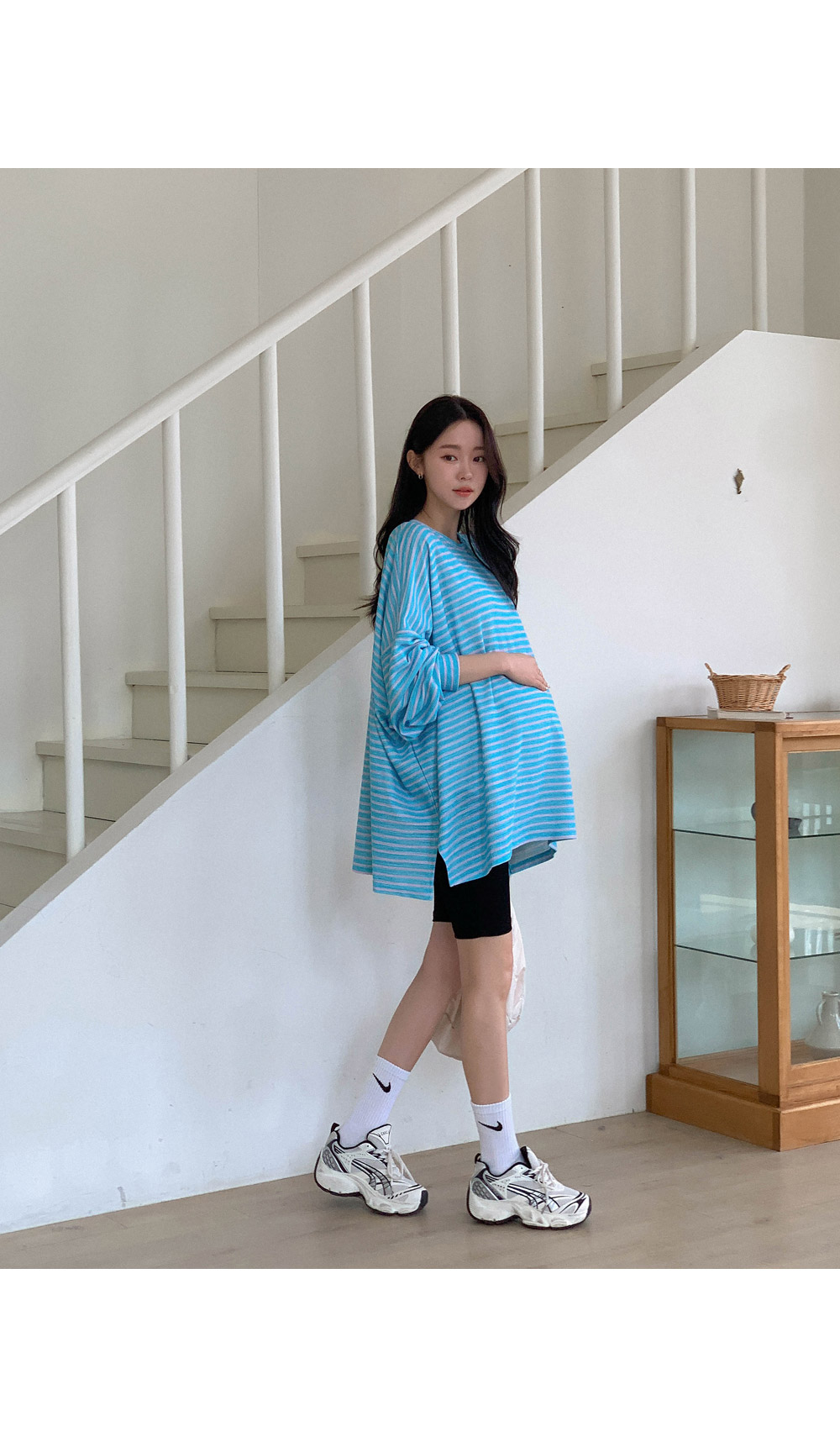 Maternity*Jelly Mix Striped Long Tee)