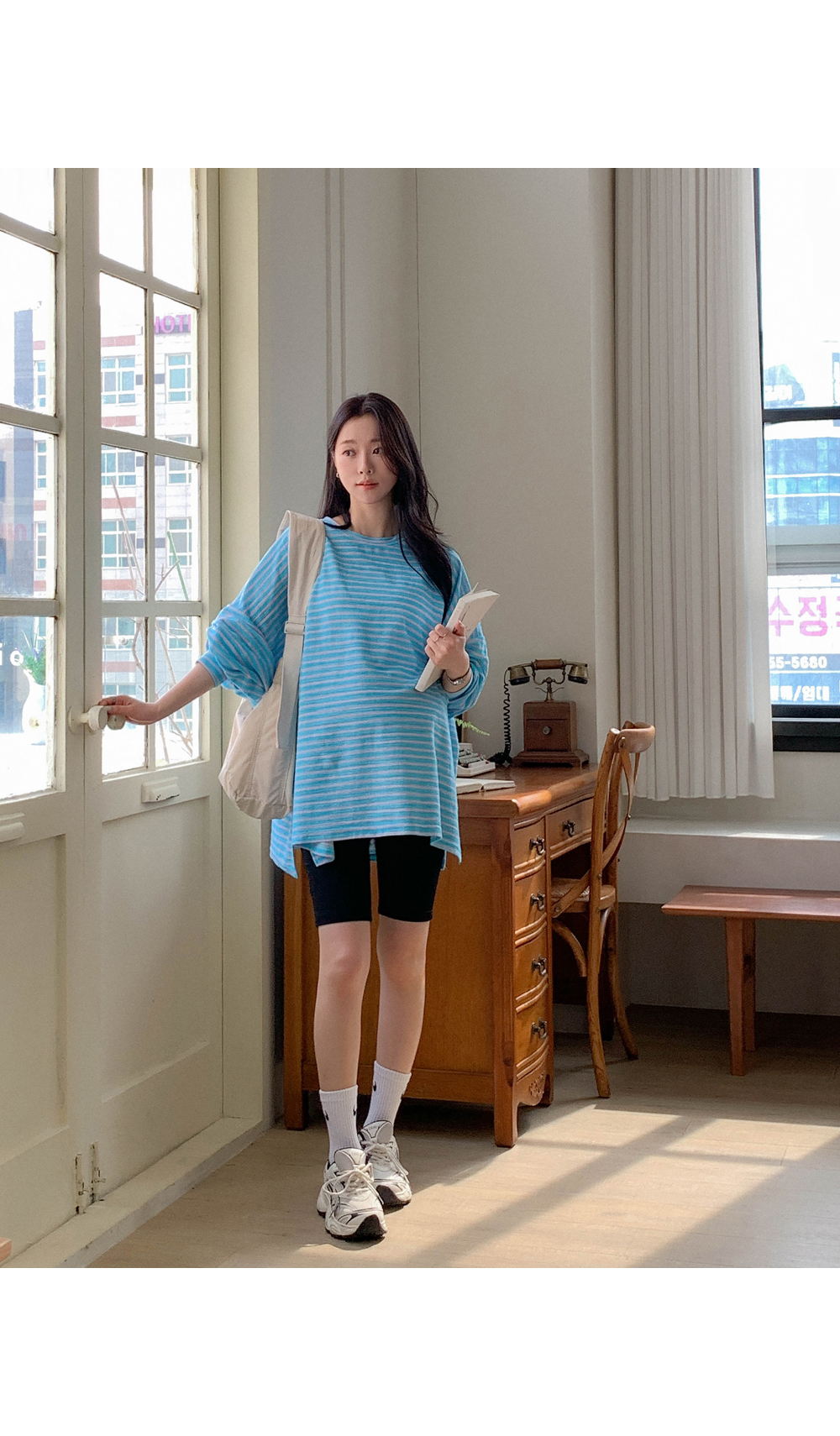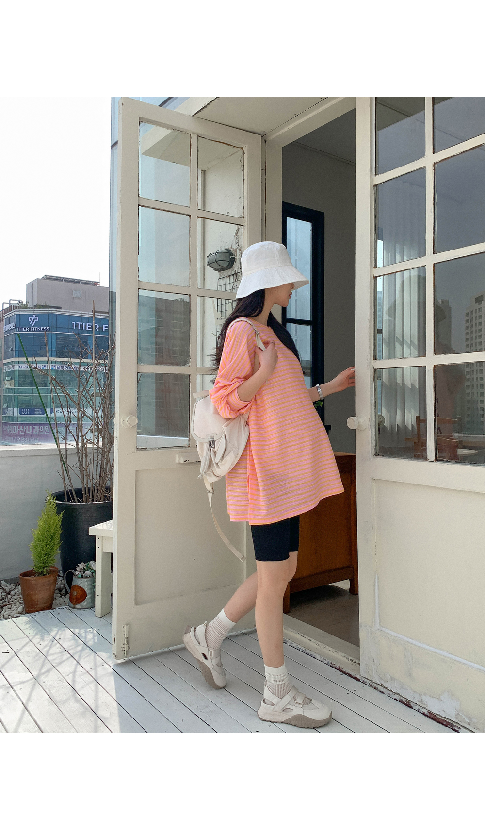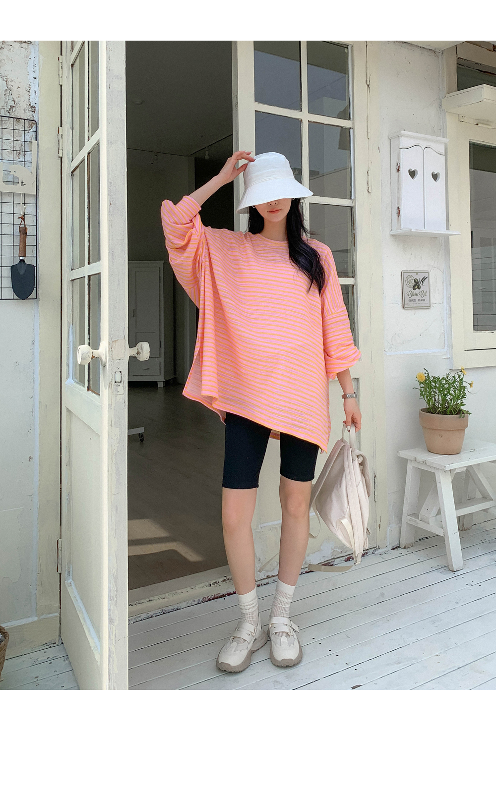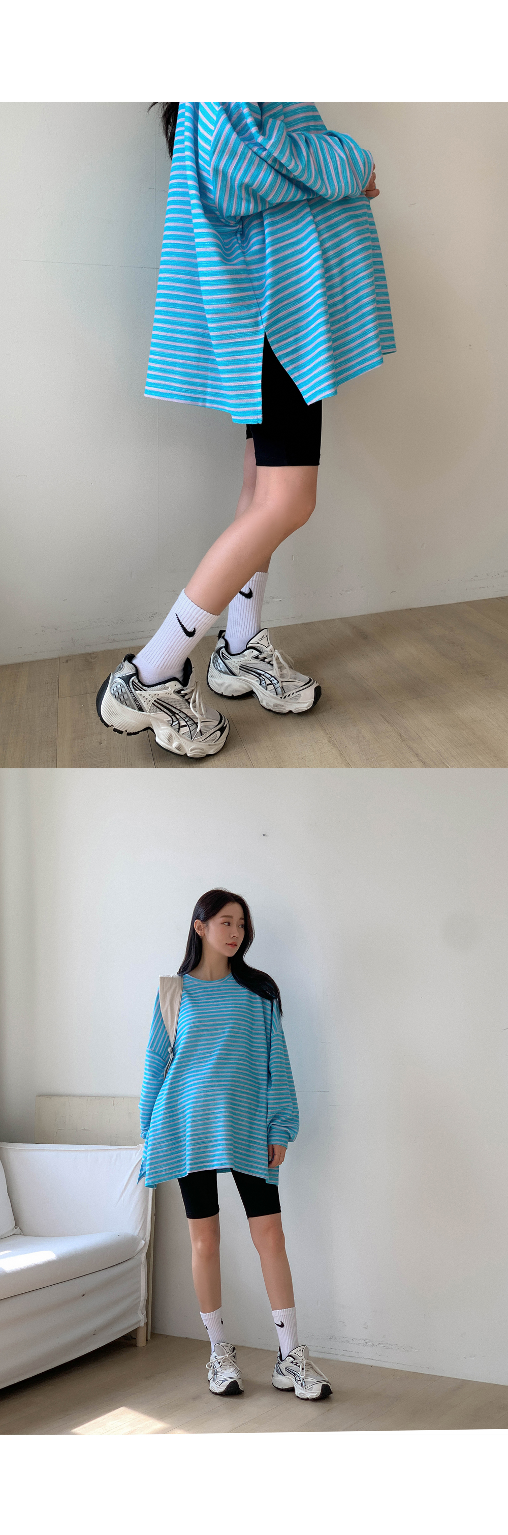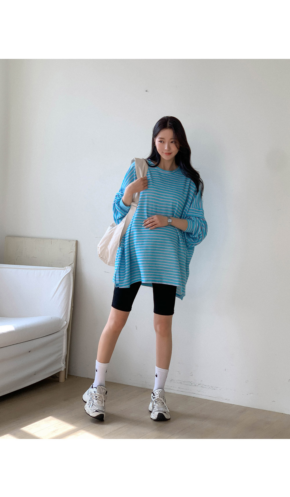 Maternity*Jelly Mix Striped Long Tee)