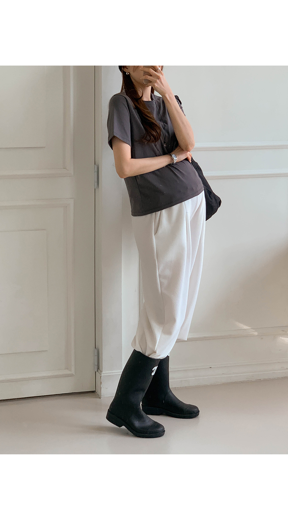 Maternity*Waffle Pintuck Wide Elastic Pants