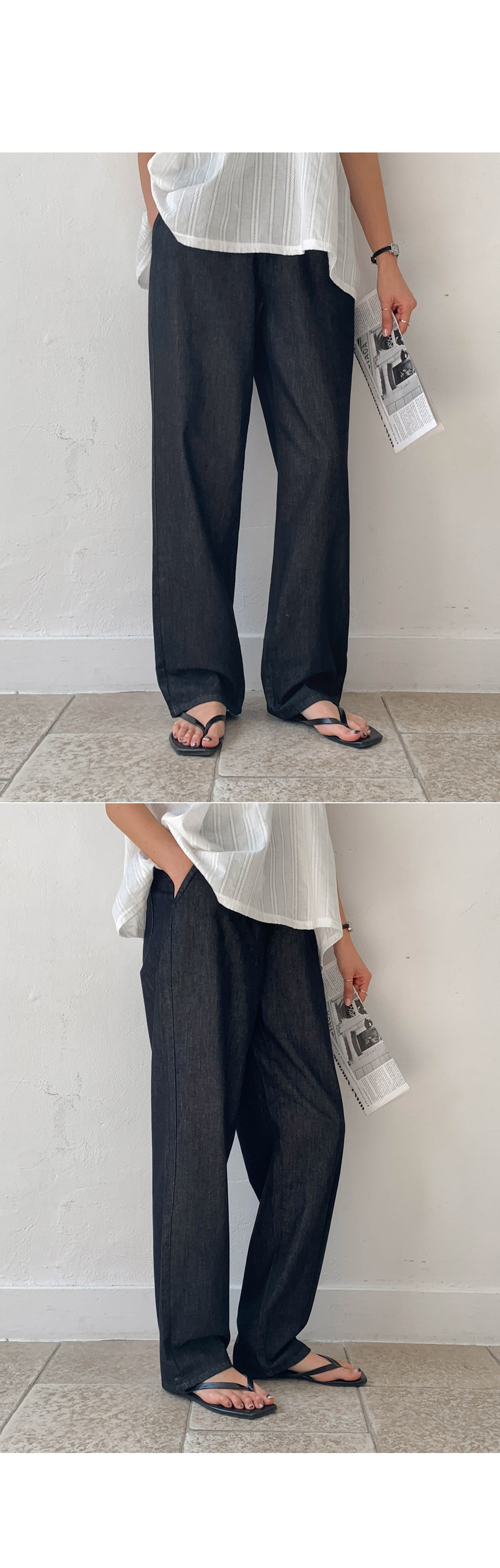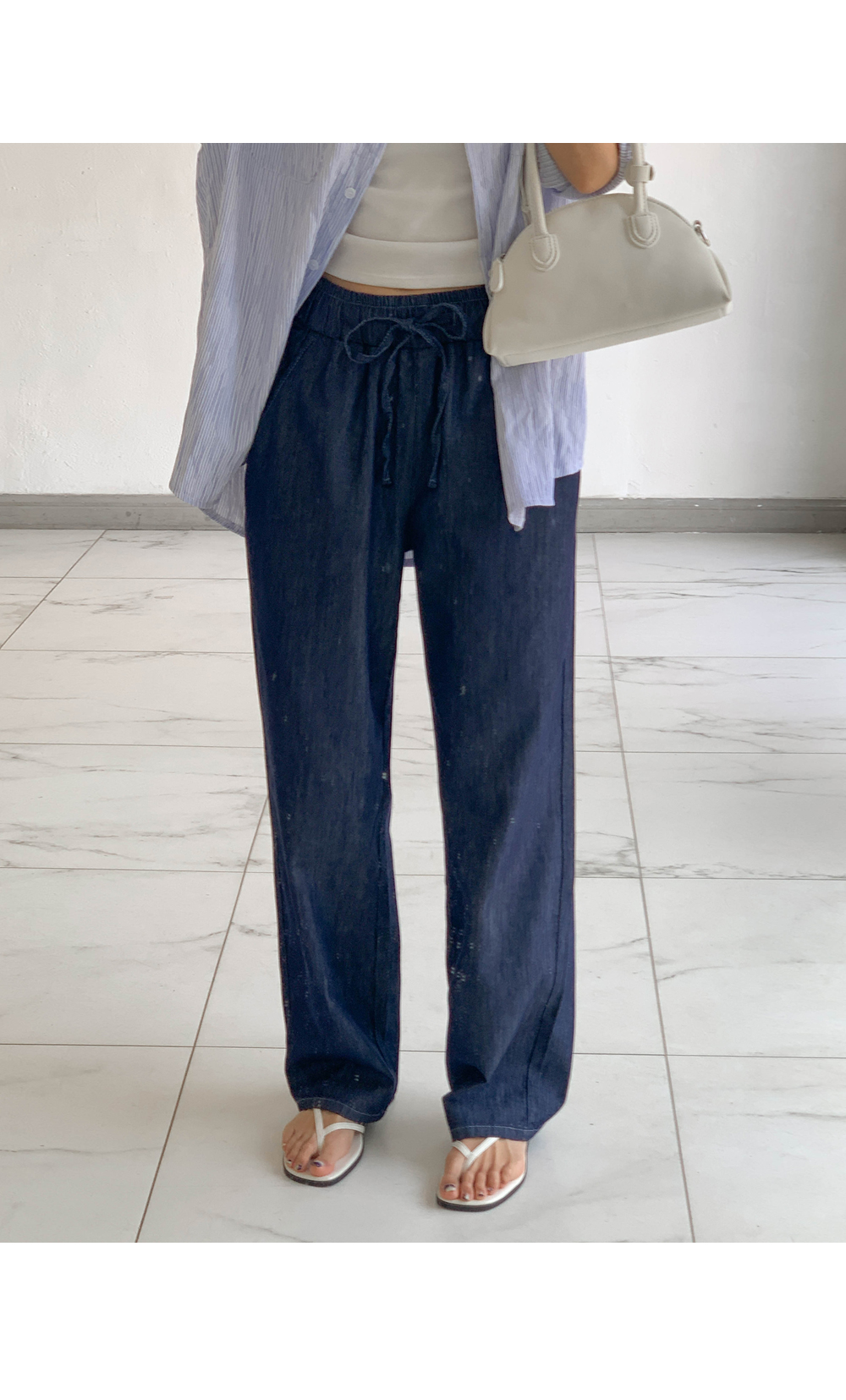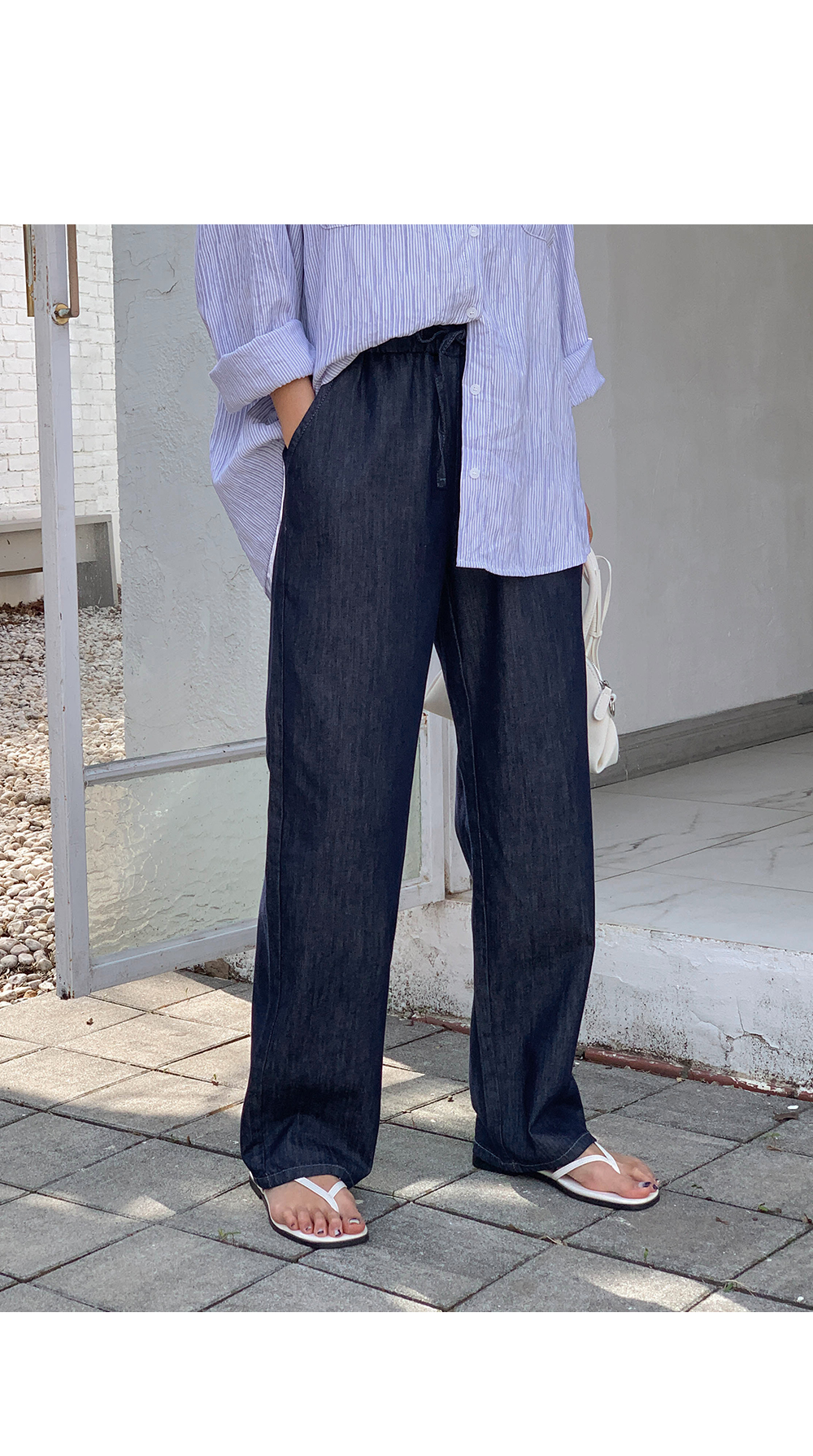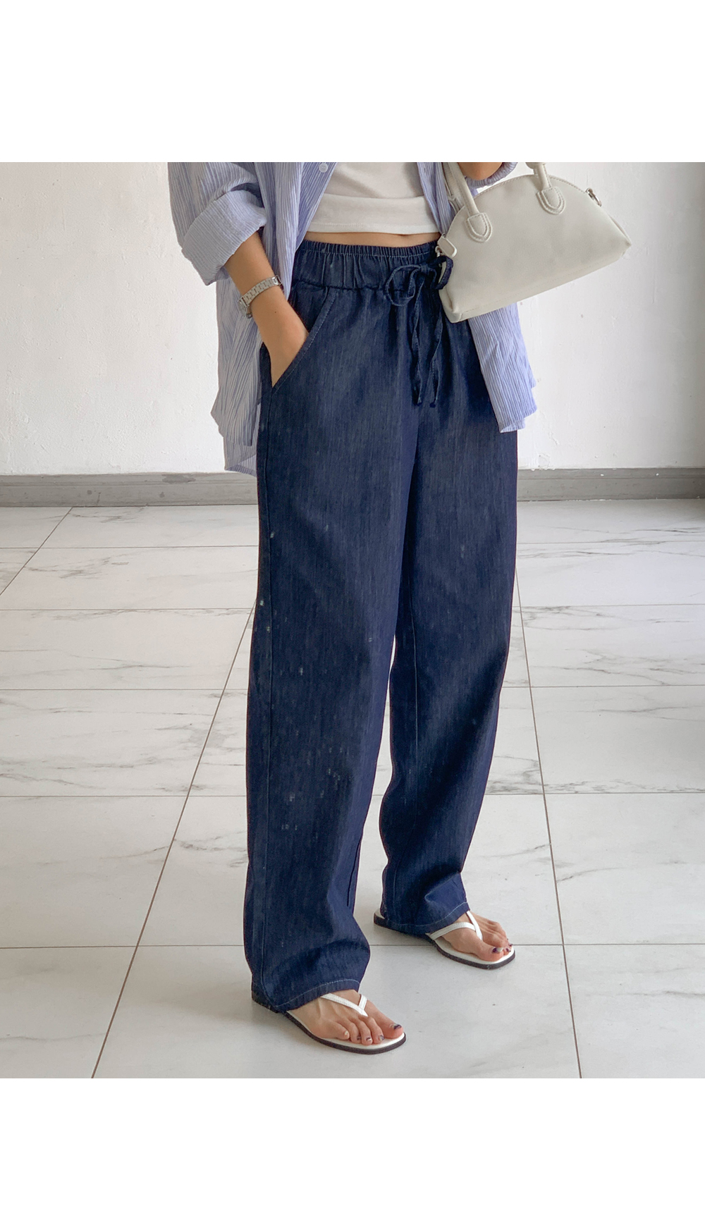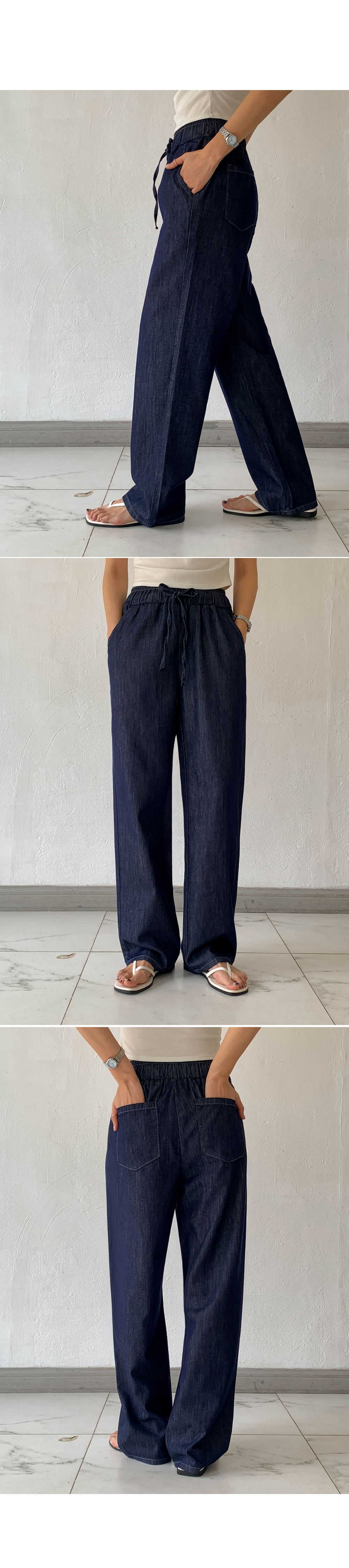 Non-fake strap banding wide denim)