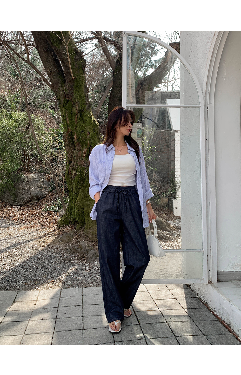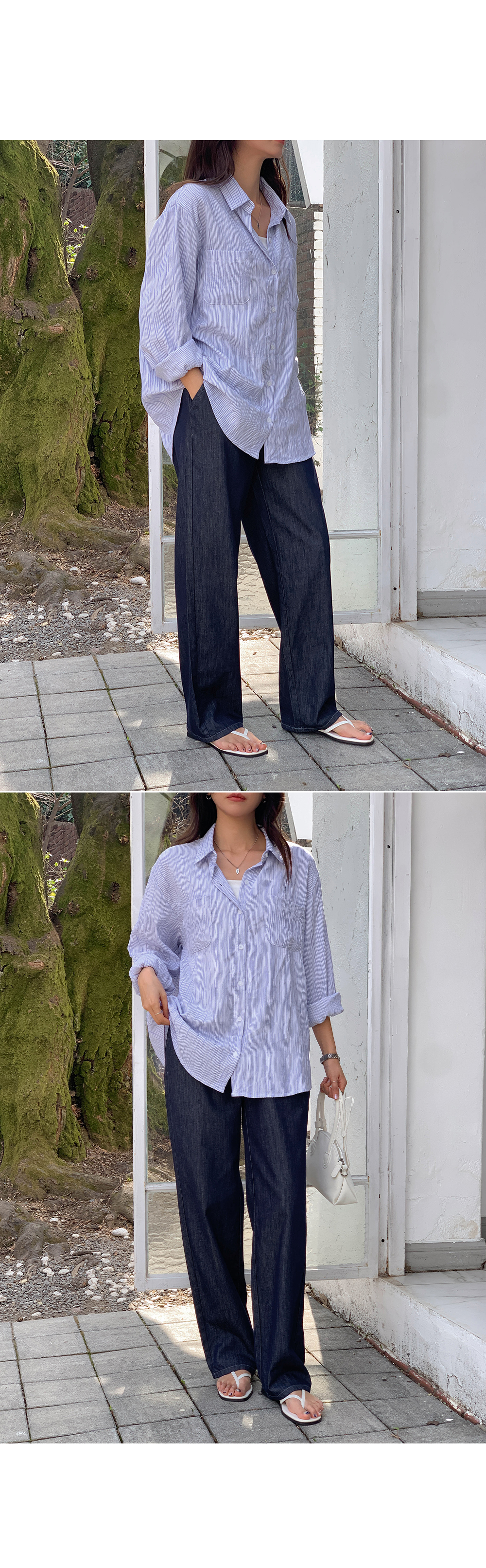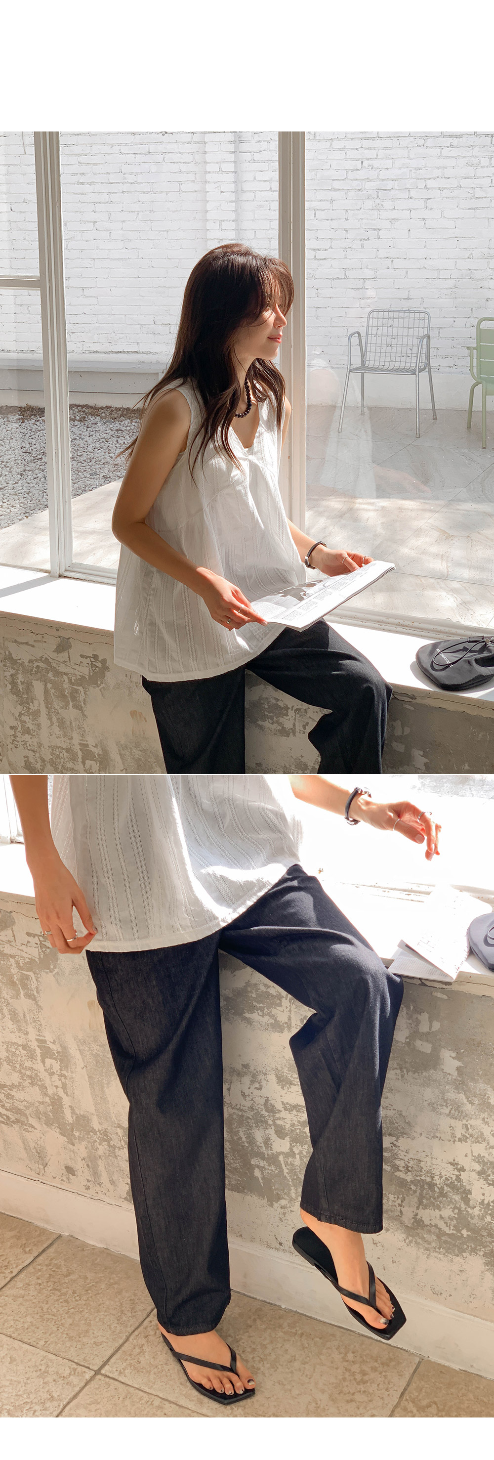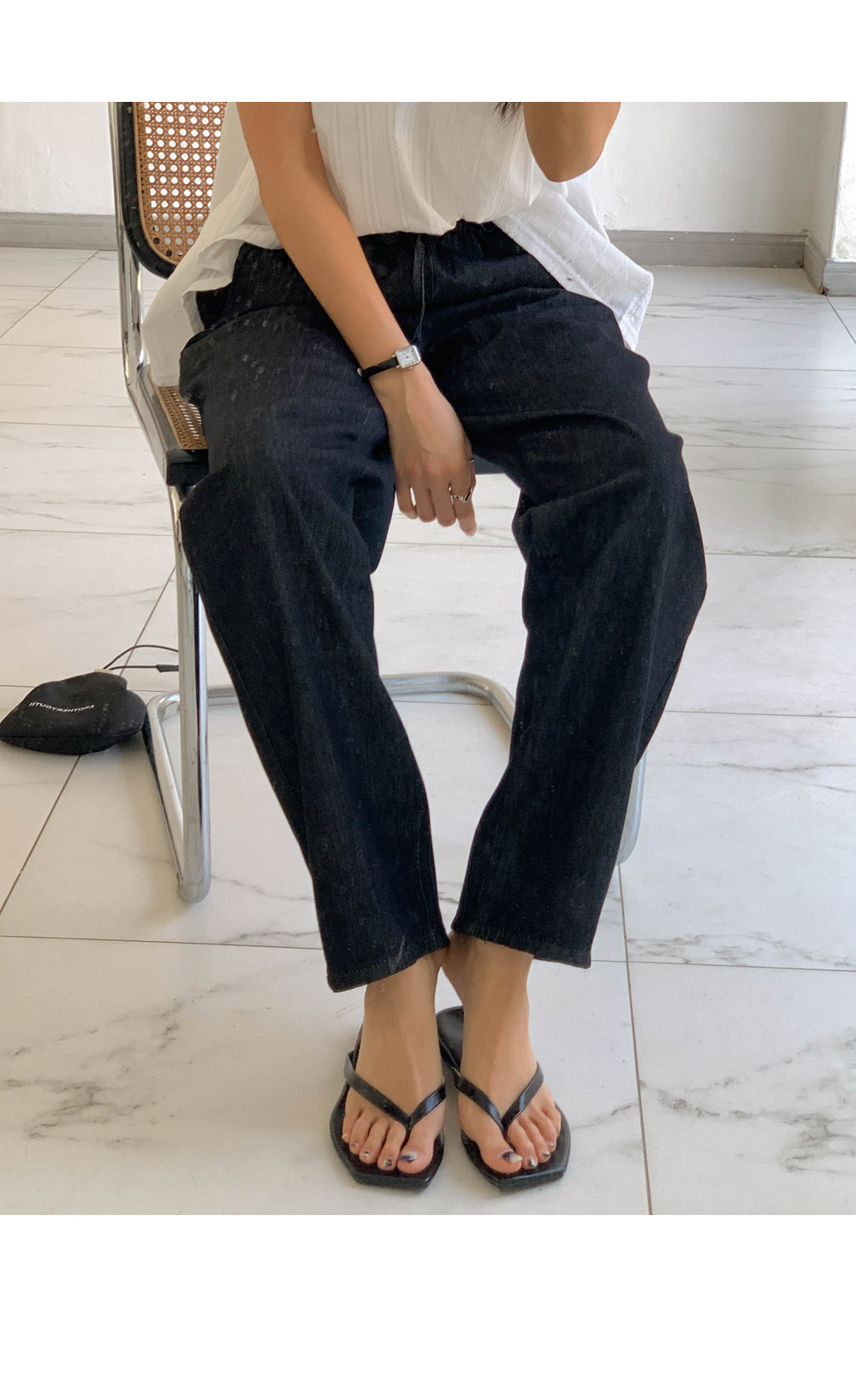 Non-fake strap banding wide denim)