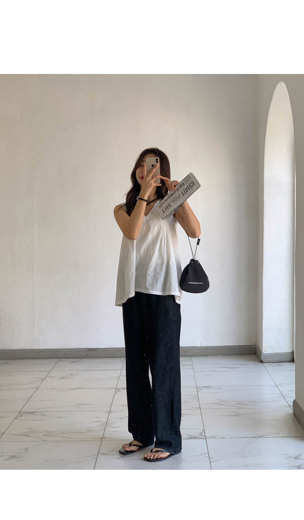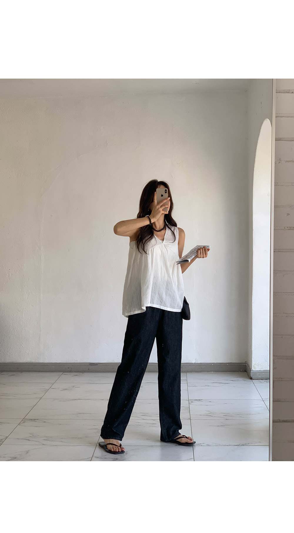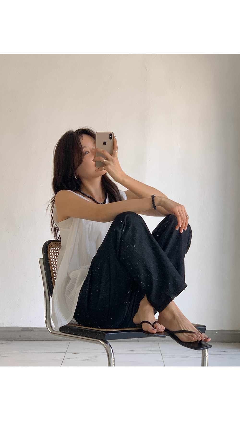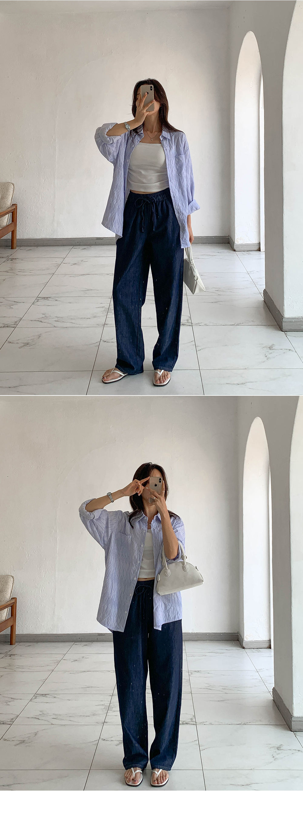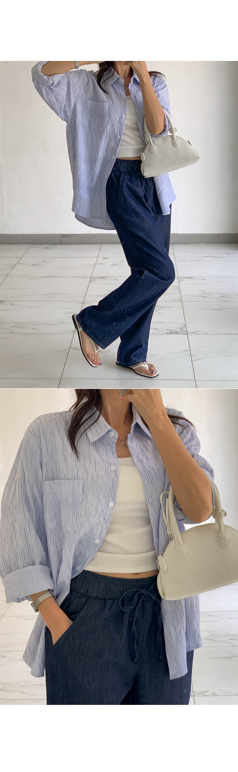Non-fake strap banding wide denim)