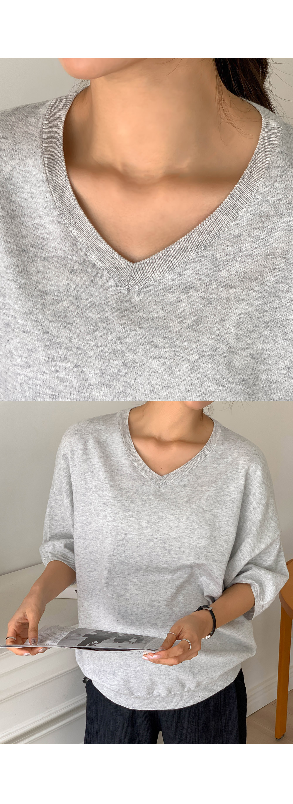 | Maternity*Natural Cotton Loose Fit Knit (Two Types: V-neck and U-neck)) |