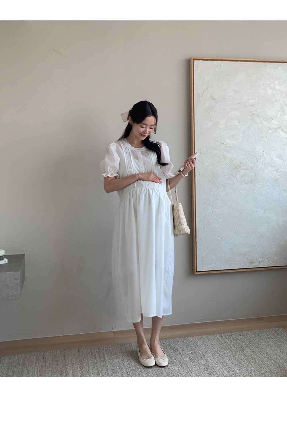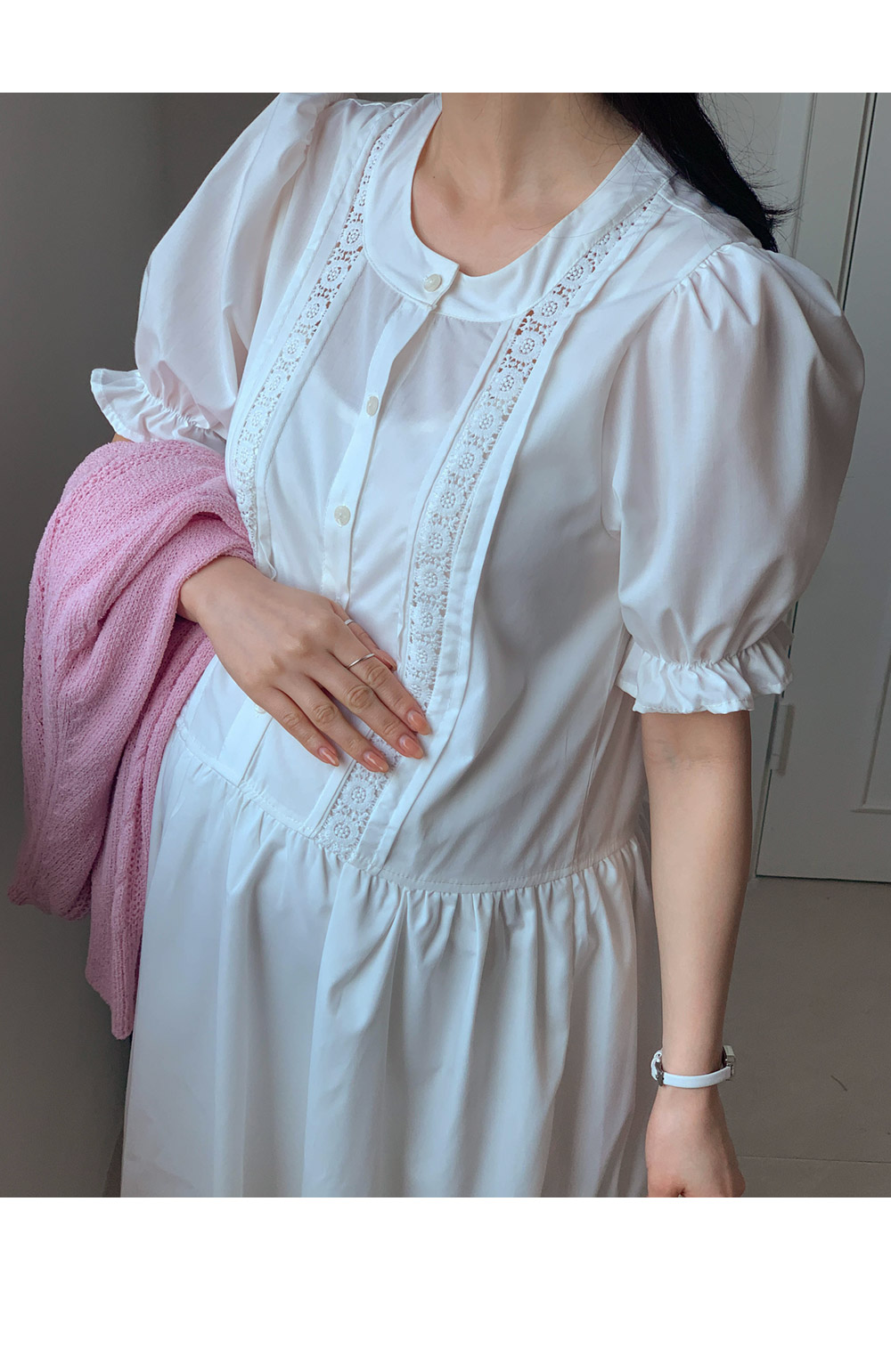 Maternity*Jumi Lace Open Button One Piece)