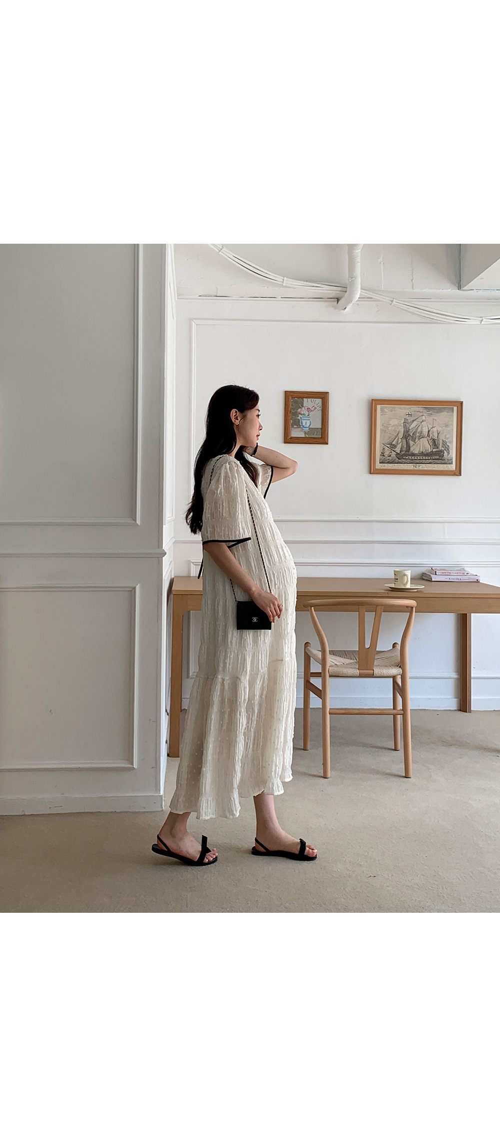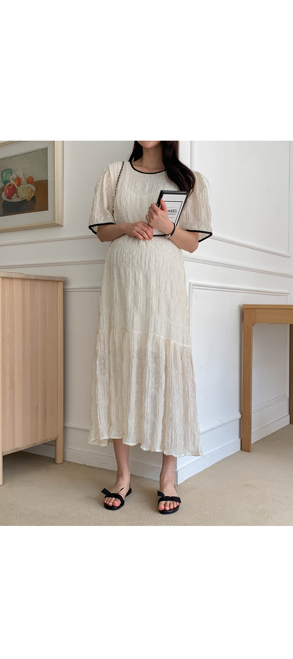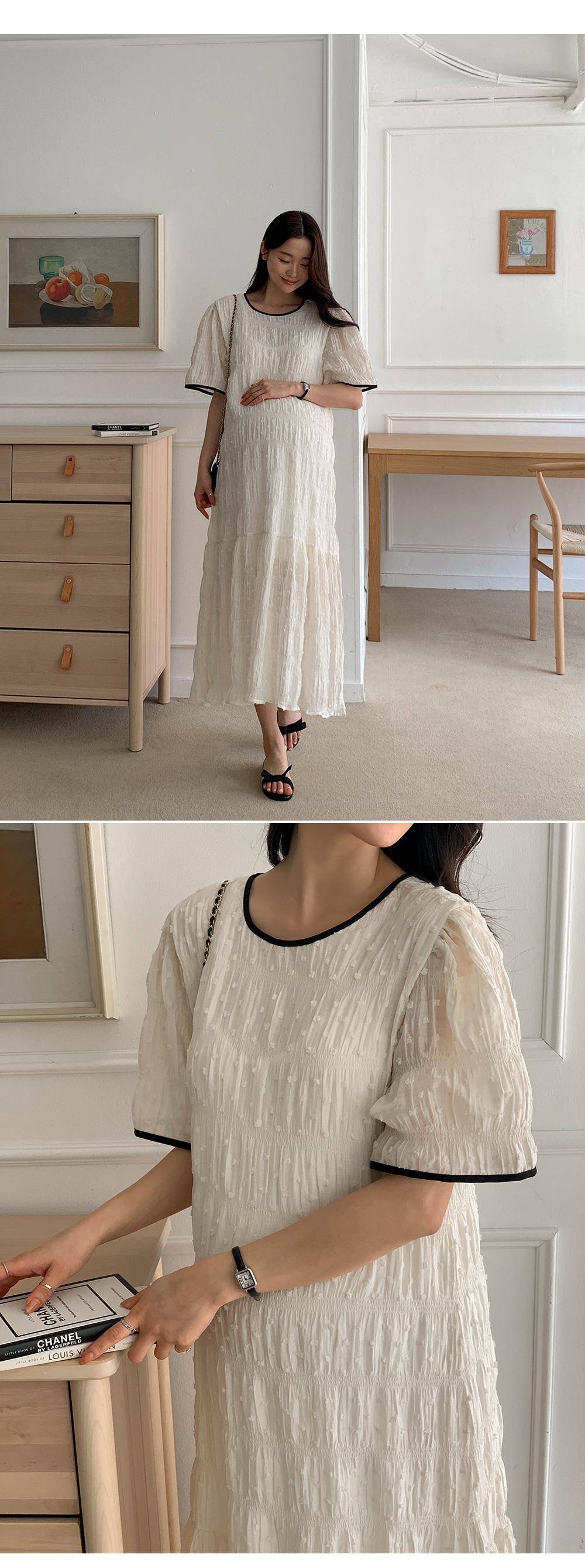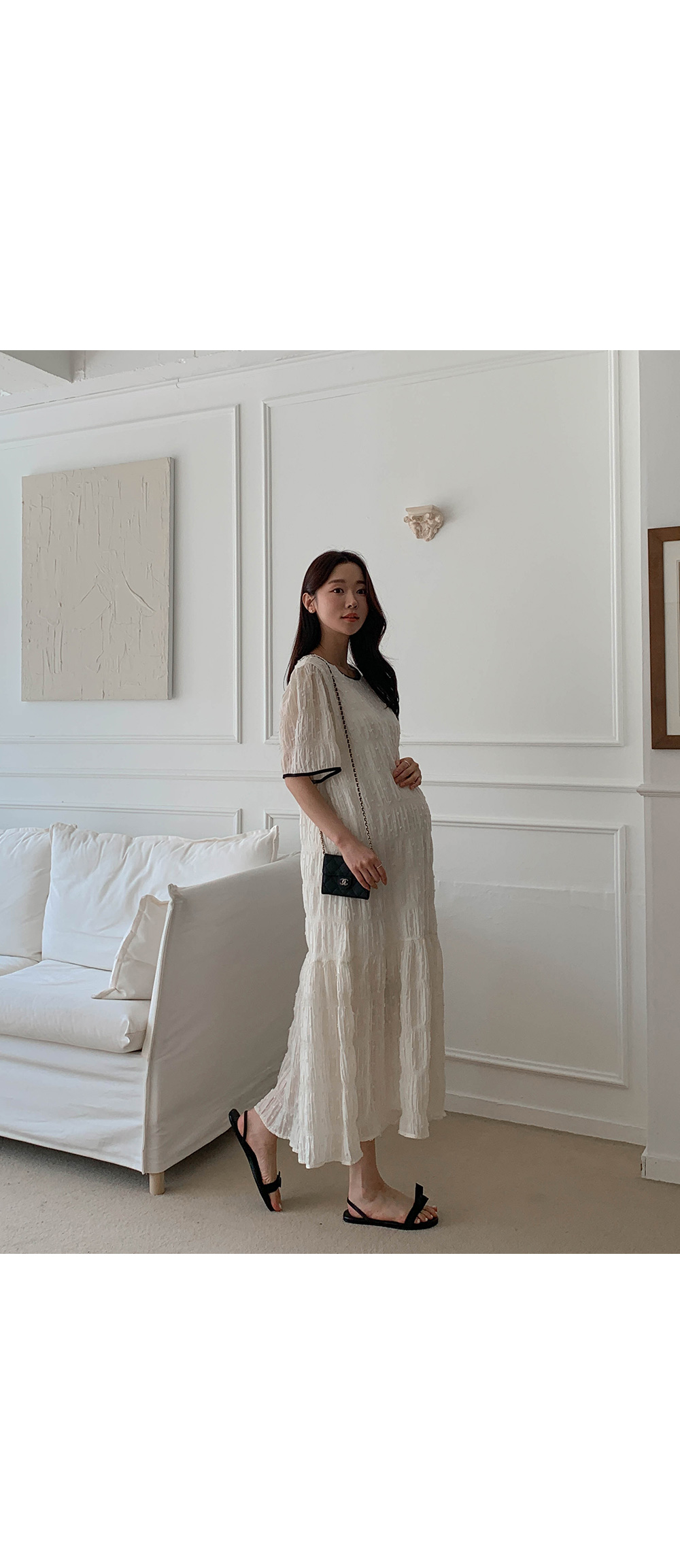 Maternity*Sweet Back Ribbon Wrinkle One Piece)