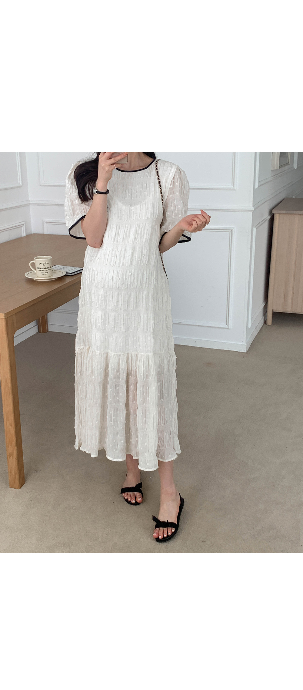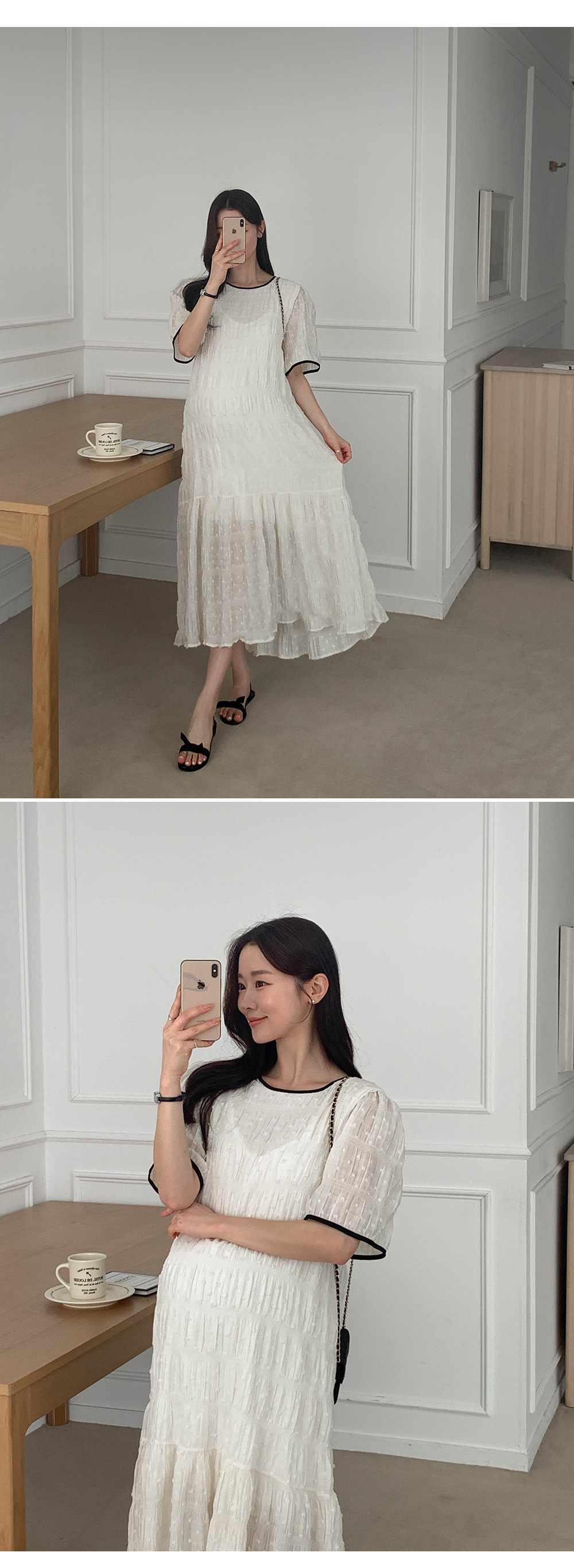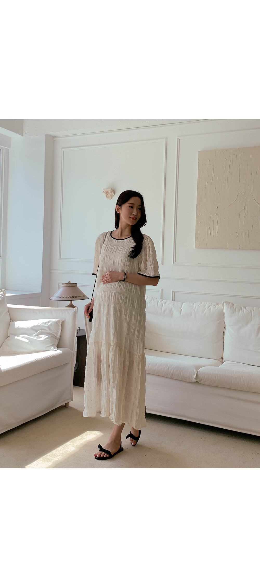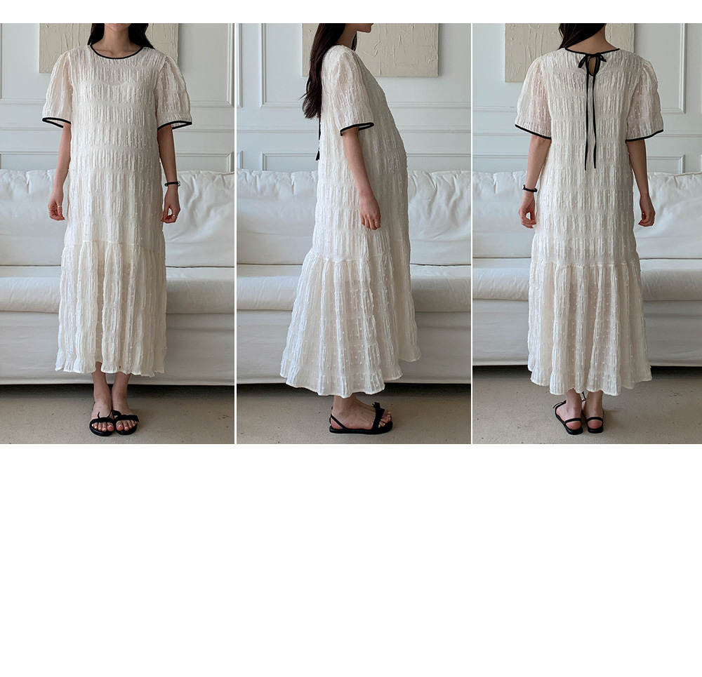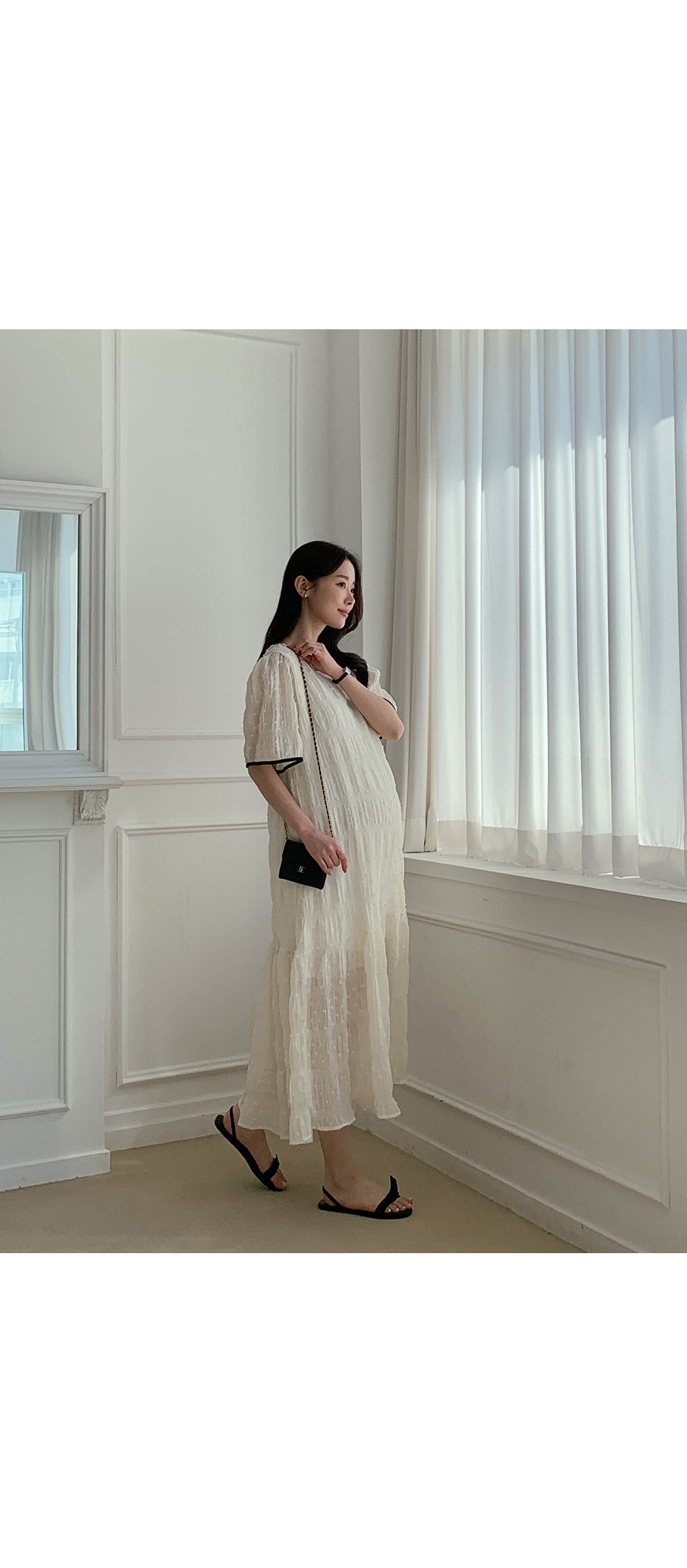 Maternity*Sweet Back Ribbon Wrinkle One Piece)